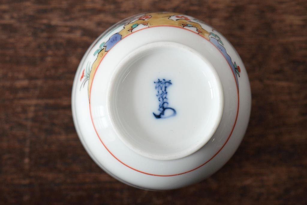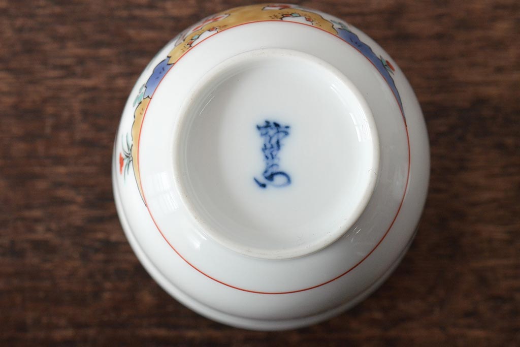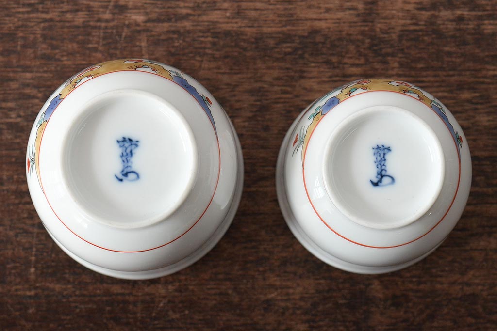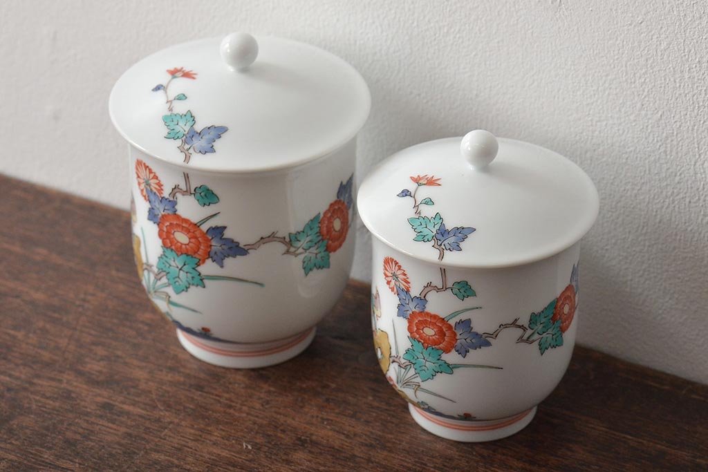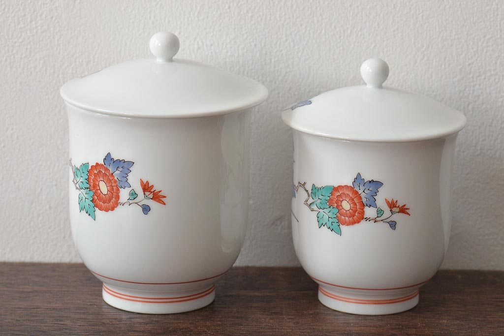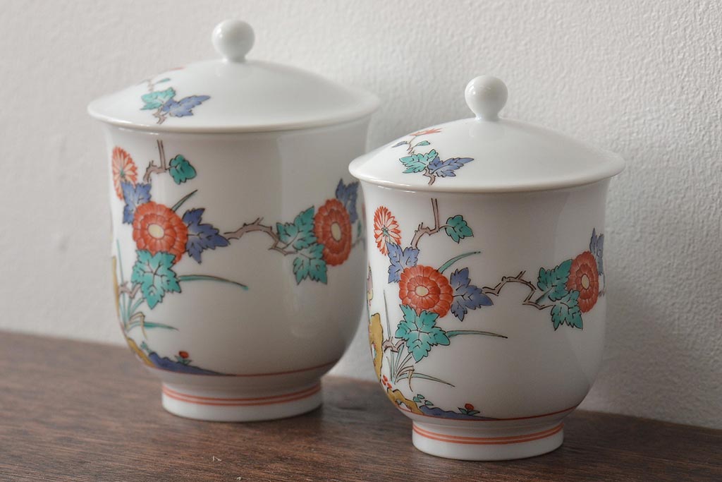 十三代 酒井田柿右衛門 花鳥文湯呑一対(茶碗、和食器、蓋付き)(R-046478)