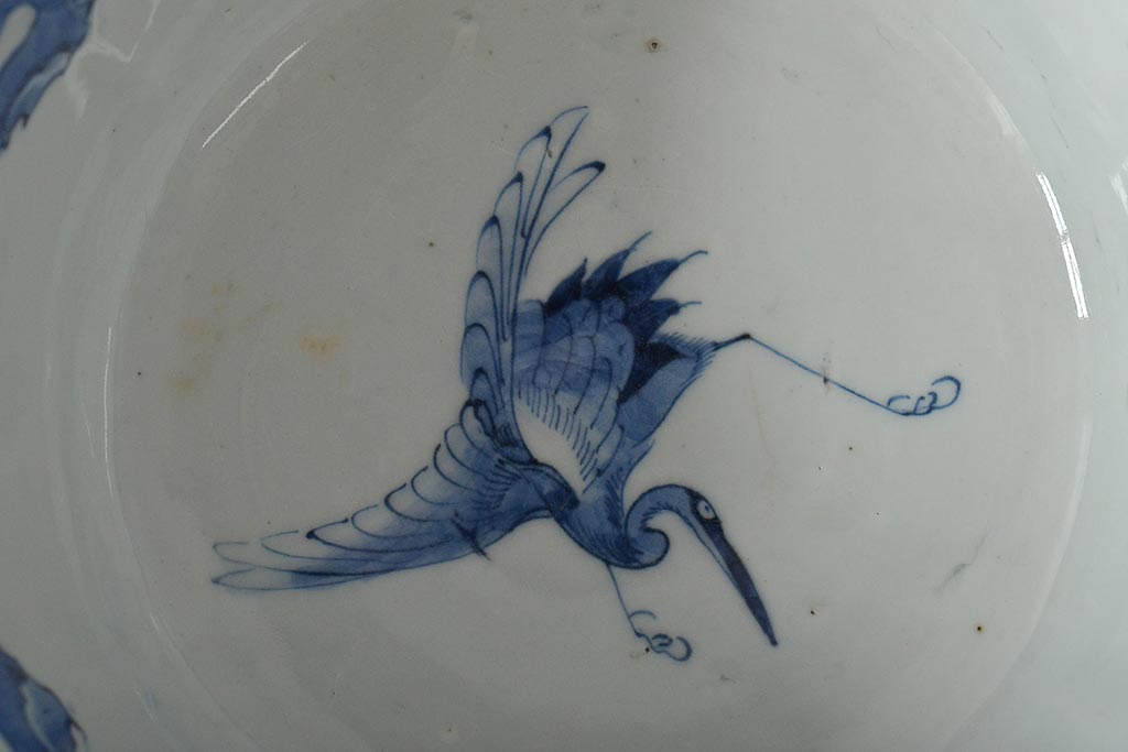 江戸期 古伊万里 鶴に梅 窓絵染付深鉢(深皿、和食器)(R-046482)
