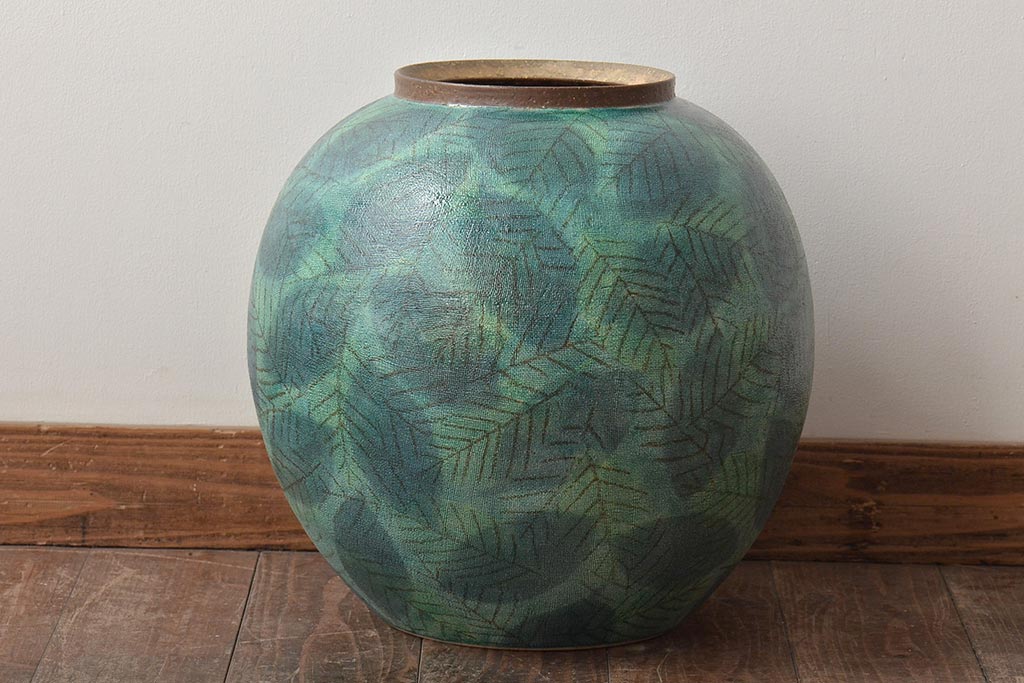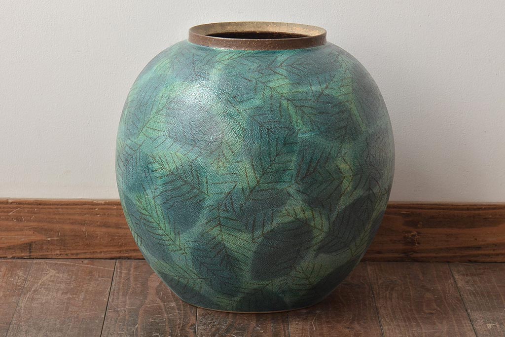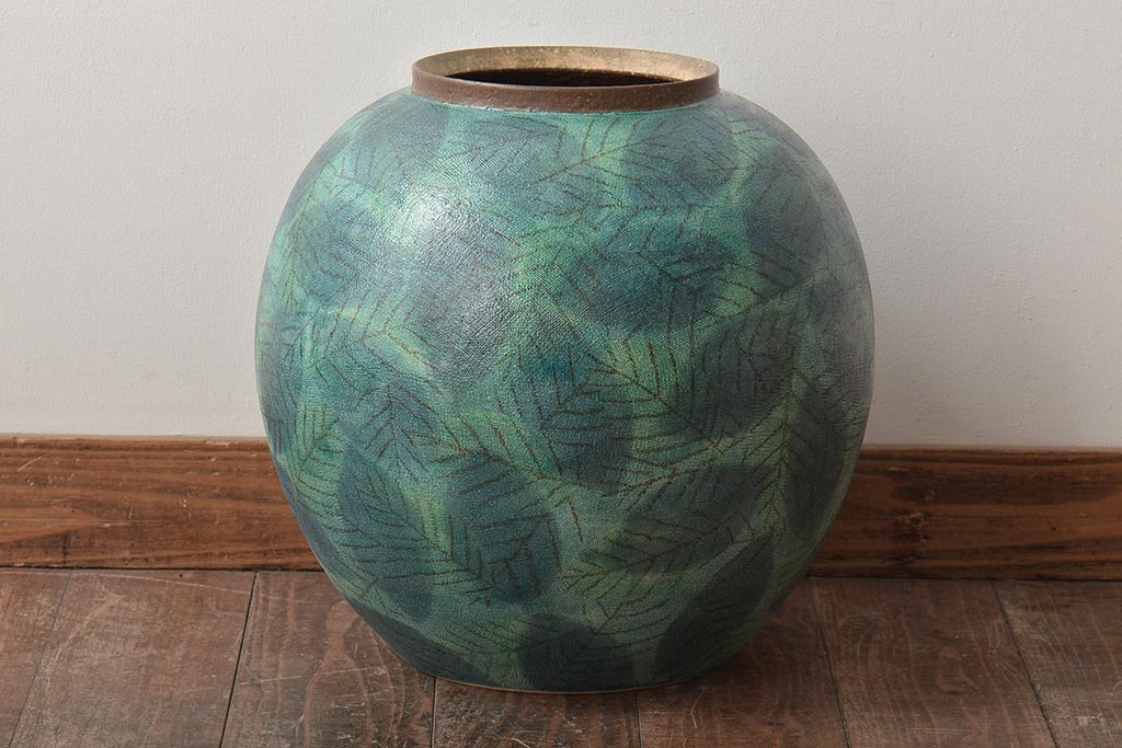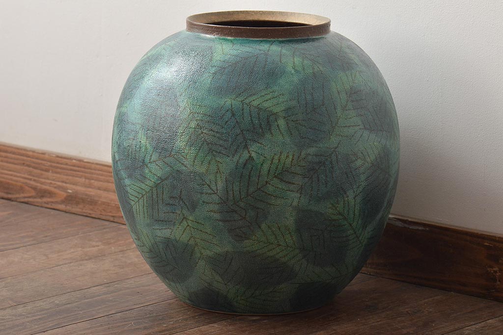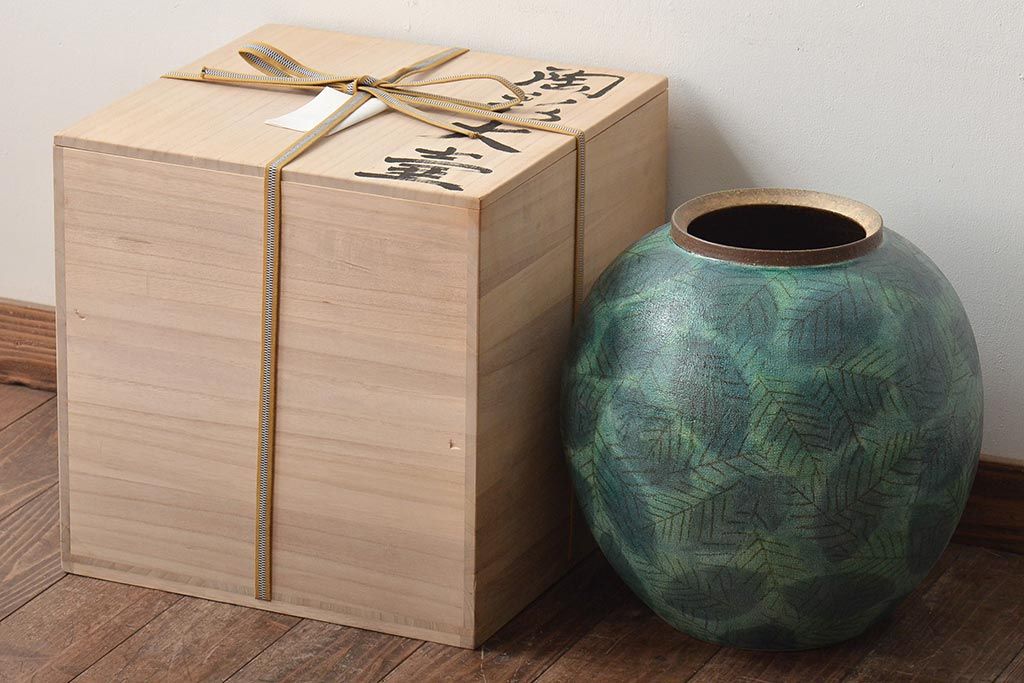 迎泰夫作 陶彩大壷 共箱(栃木県芸術祭奨励賞受賞作品、花瓶、花器)(R-046483)