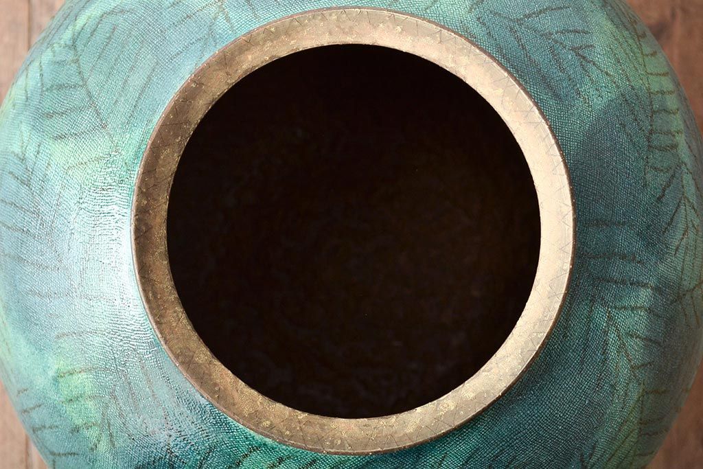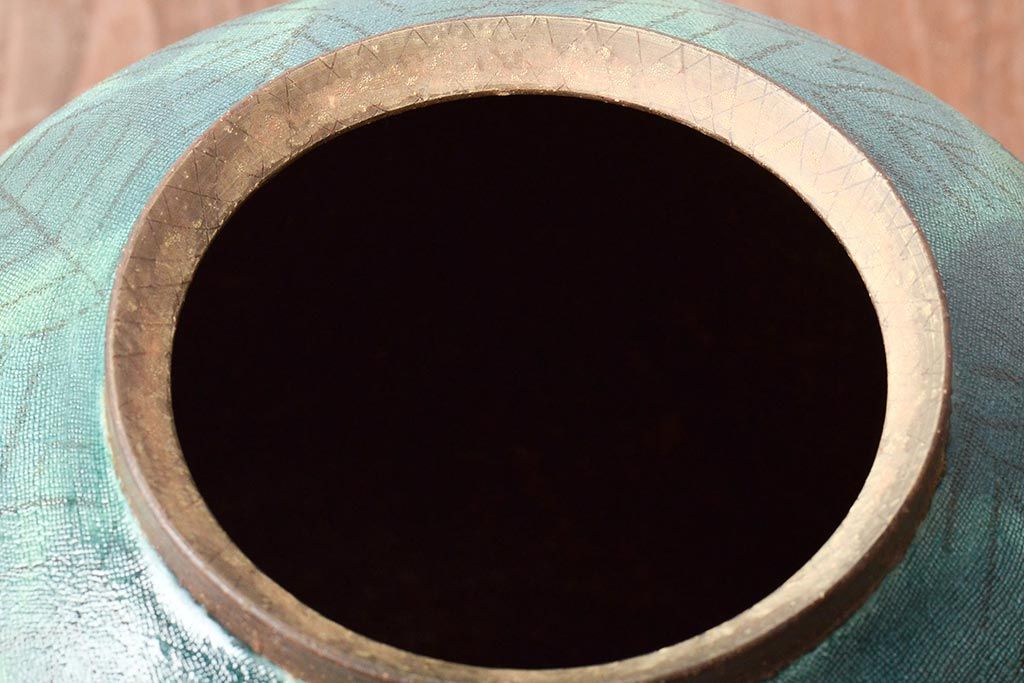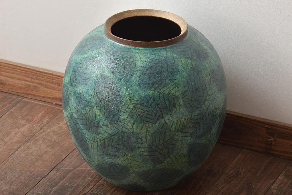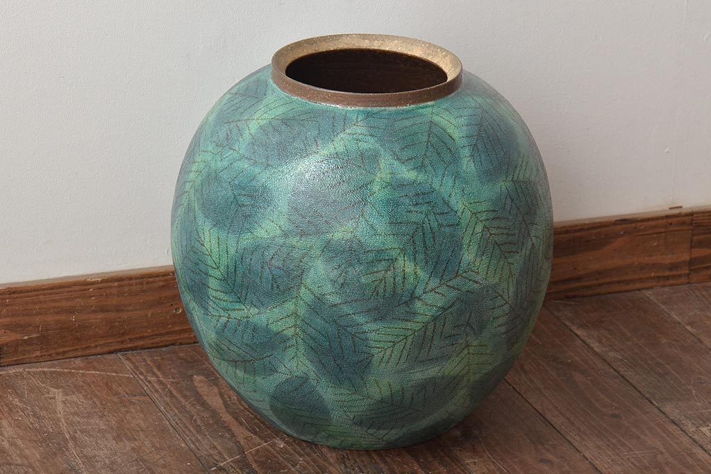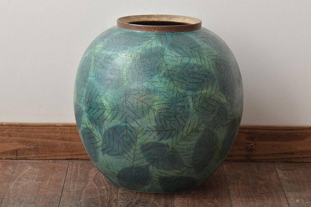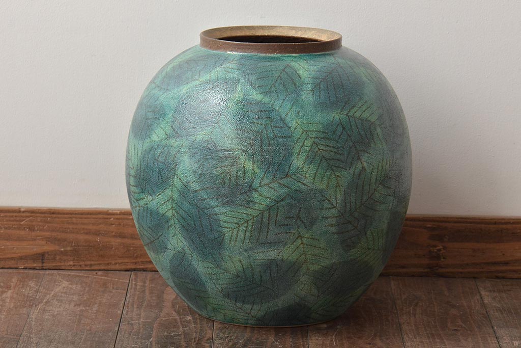 迎泰夫作 陶彩大壷 共箱(栃木県芸術祭奨励賞受賞作品、花瓶、花器)(R-046483)