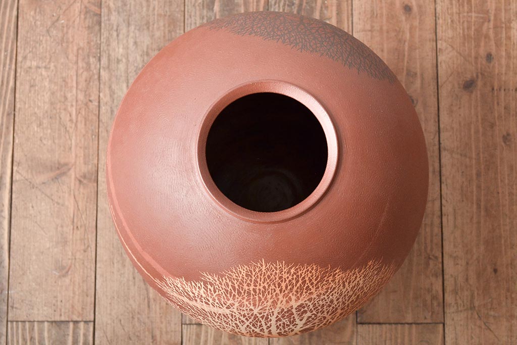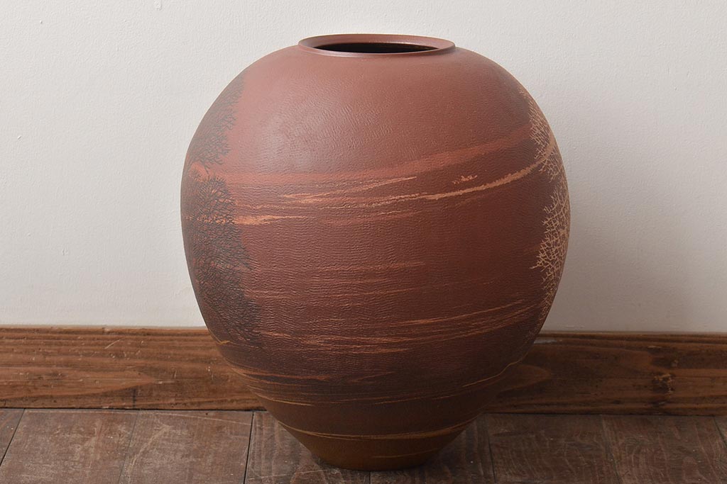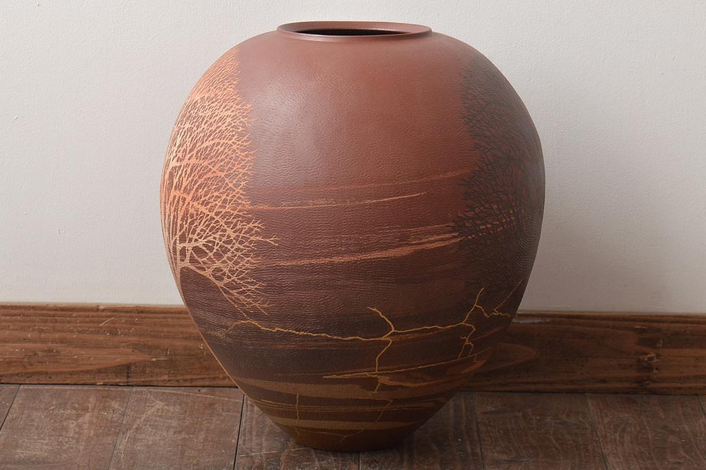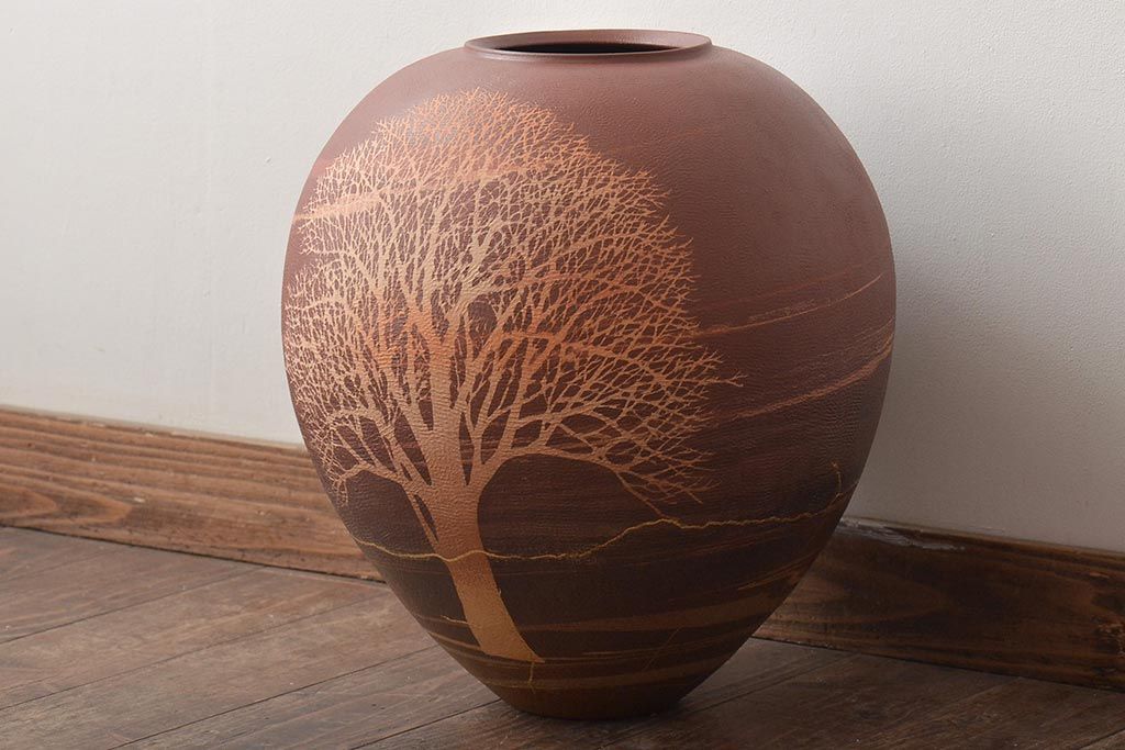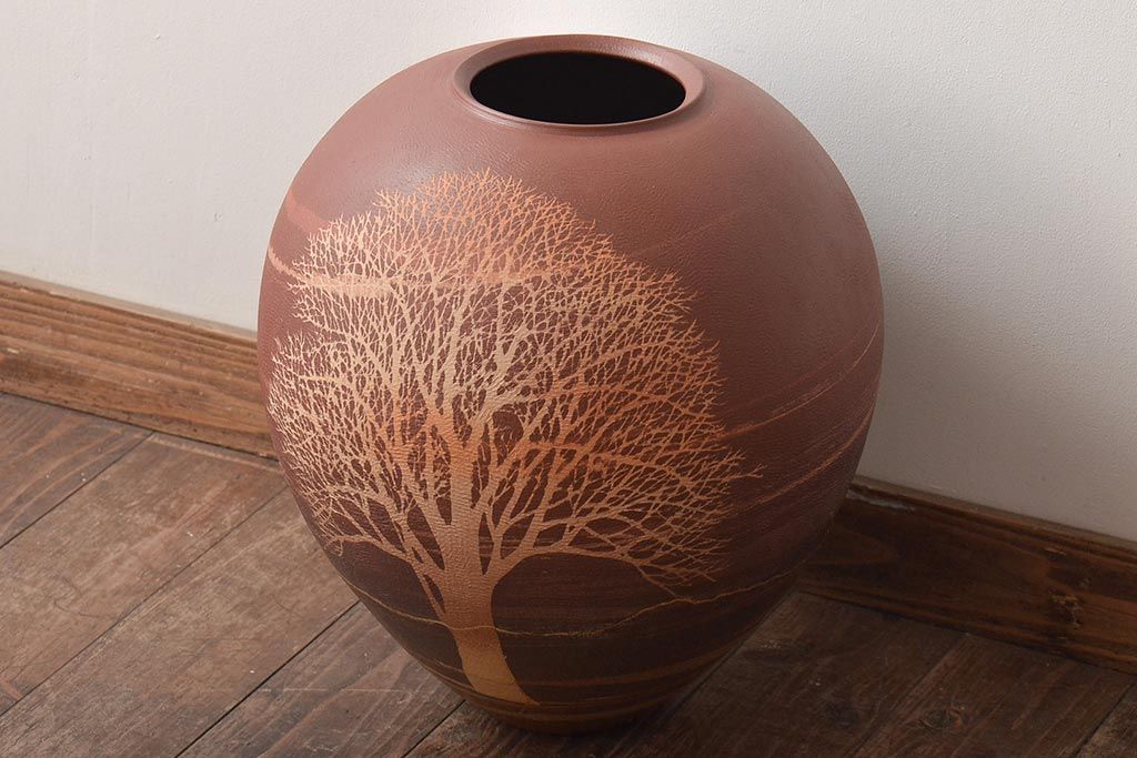 1986年 佐伯守美作 練上象嵌 樹木文壷(益子焼、花瓶、花器)(R-046484)