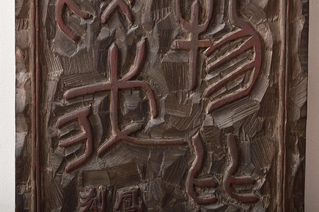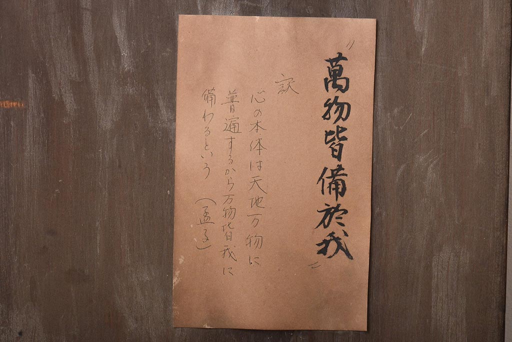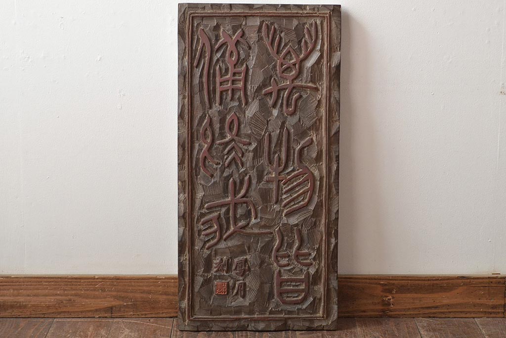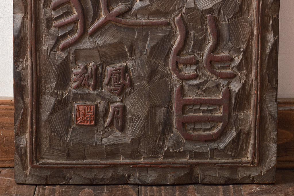 古い 鳳月刻 板額 萬物皆備孟子(刻書、漢詩、彫刻、刻字、看板、木彫)(R-046488)