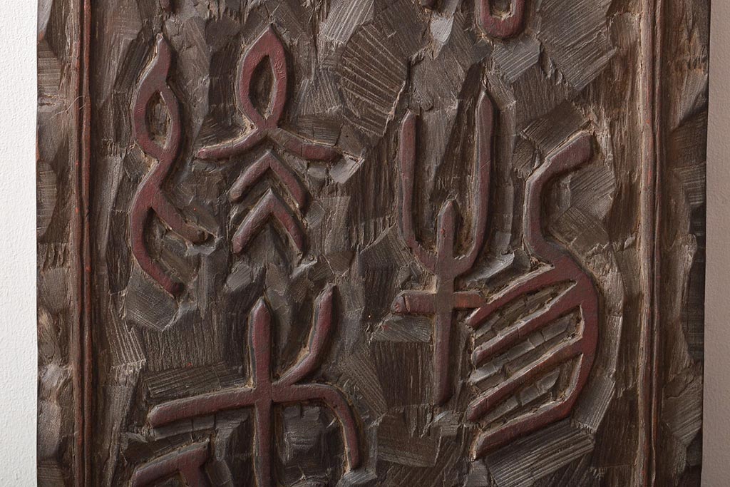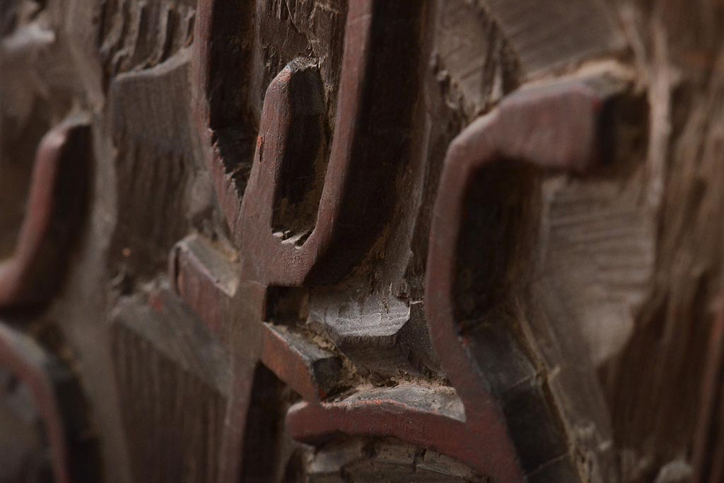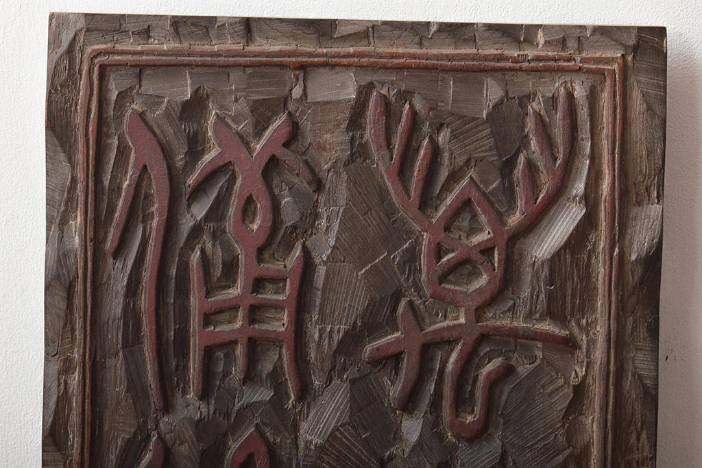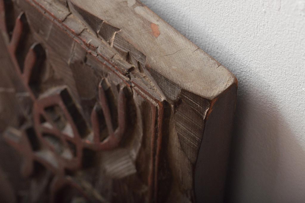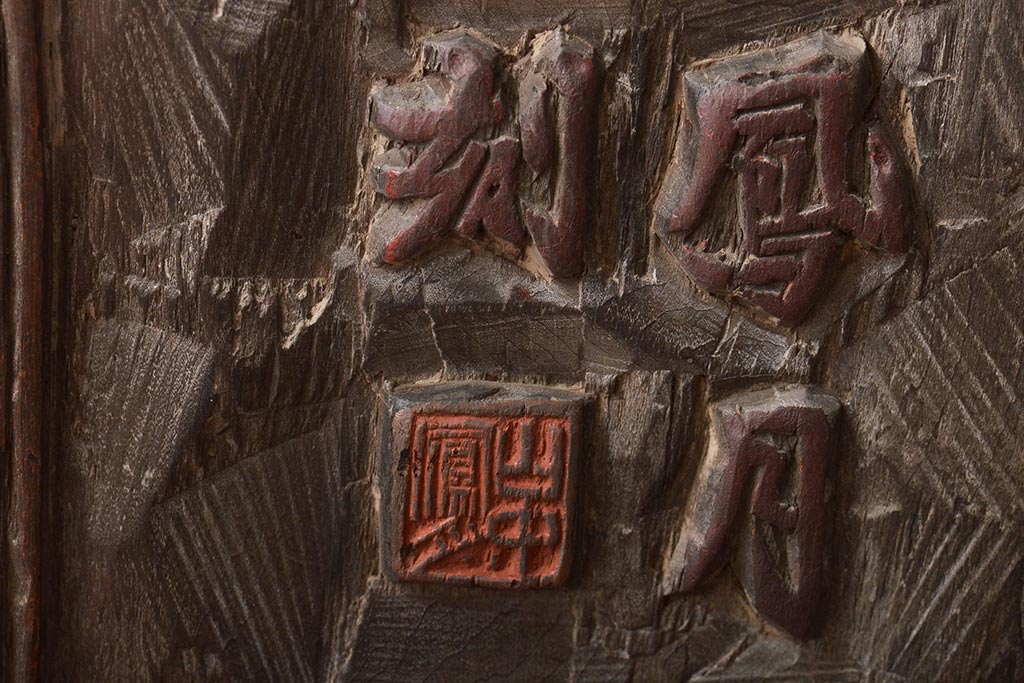 古い 鳳月刻 板額 萬物皆備孟子(刻書、漢詩、彫刻、刻字、看板、木彫)(R-046488)