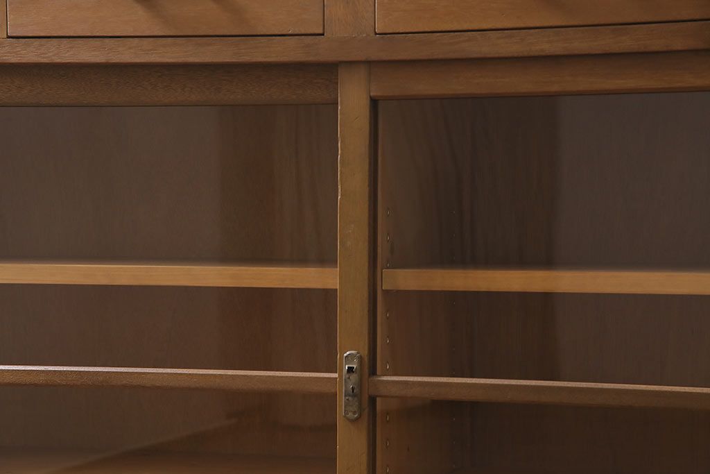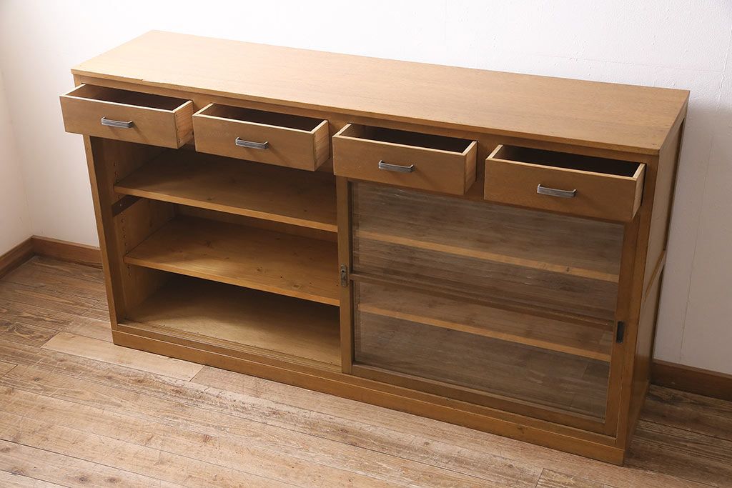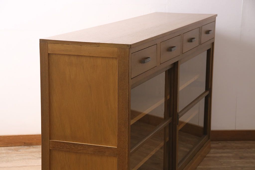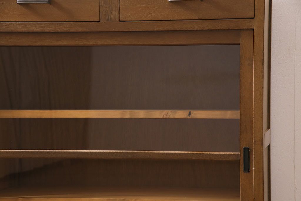 戸棚をリペア&カスタム!板戸をガラス戸へ変更。棚はセパレートさせ、可動式の棚板を設置。天板の補強。引き出しの底板を張り替え。(収納棚、キャビネット、サイドボード、飾り棚)