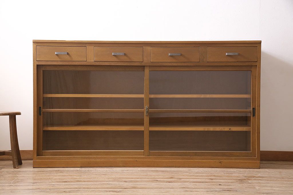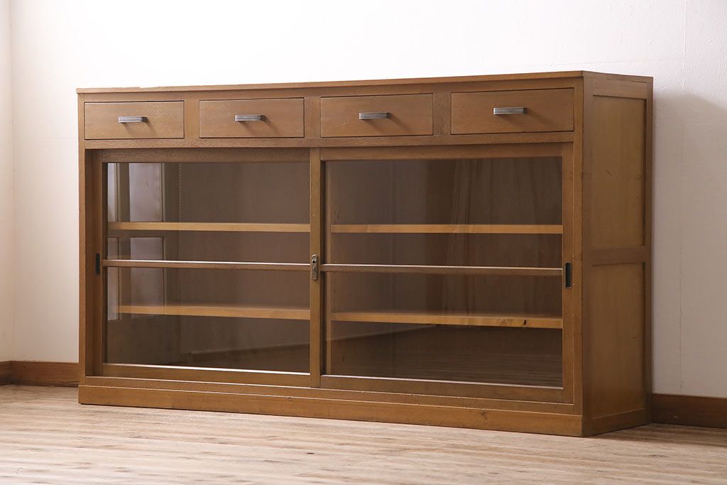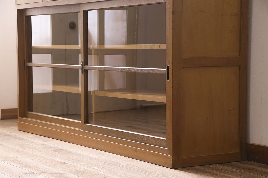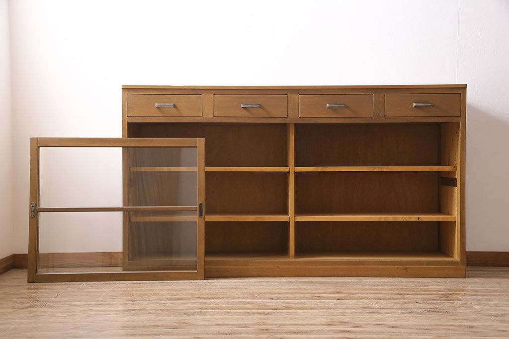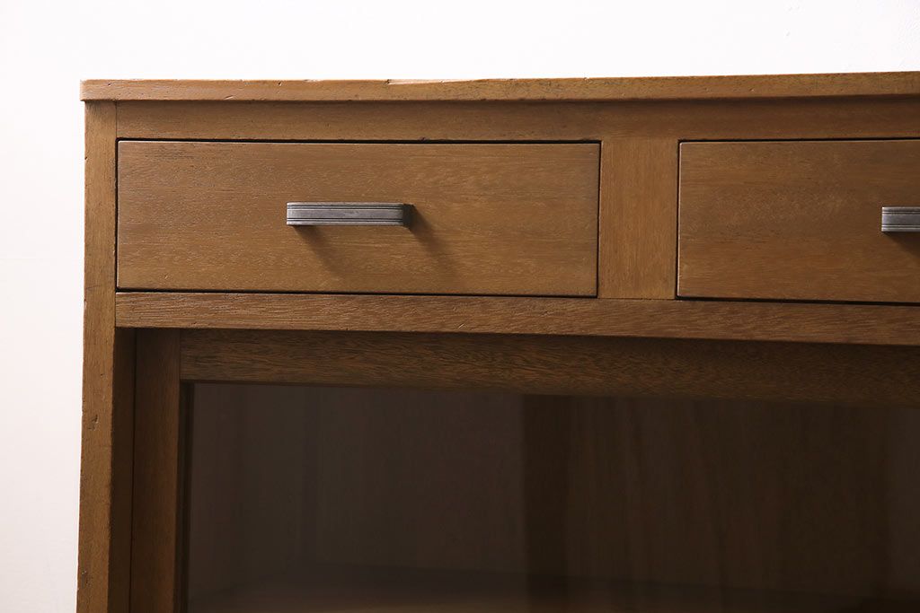 戸棚をリペア&カスタム!板戸をガラス戸へ変更。棚はセパレートさせ、可動式の棚板を設置。天板の補強。引き出しの底板を張り替え。(収納棚、キャビネット、サイドボード、飾り棚)