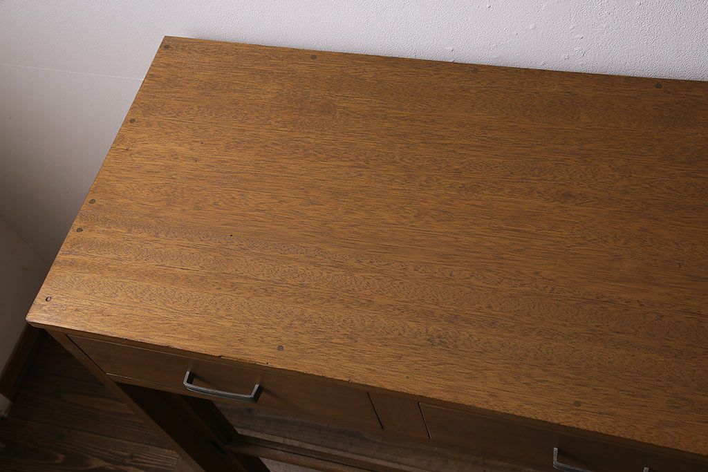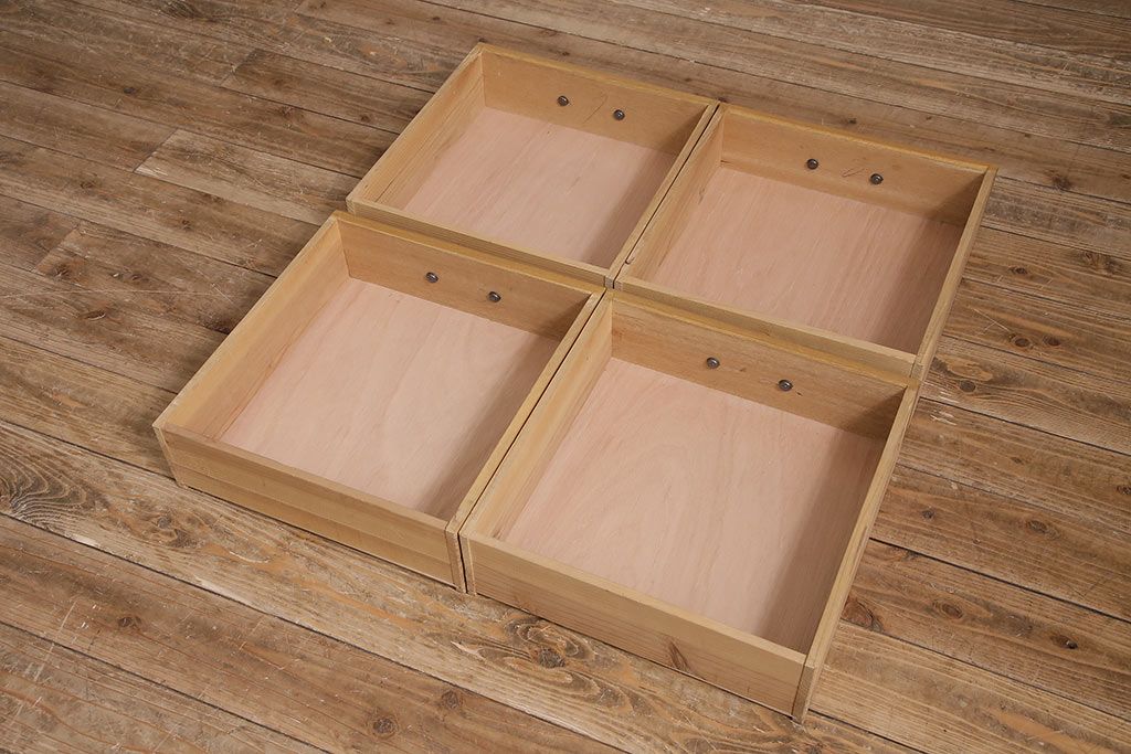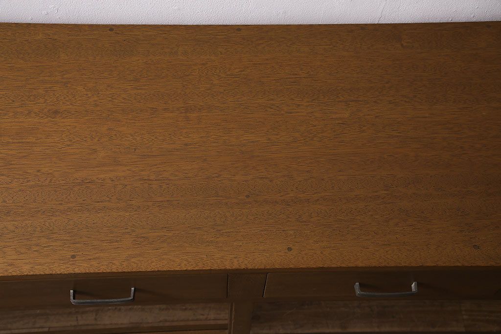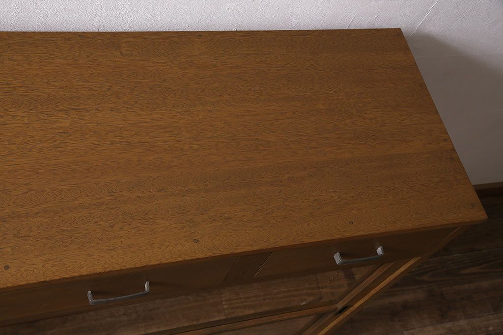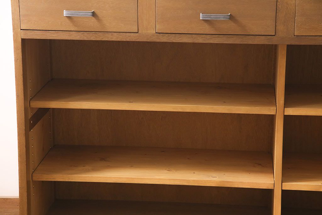 セミオーダー家具実績 > 戸棚をリペア&カスタム!板戸をガラス戸へ変更。棚はセパレートさせ、可動式の棚板を設置。天板の補強。引き出しの底板を張り替え。(収納棚、キャビネット、サイドボード、飾り棚)