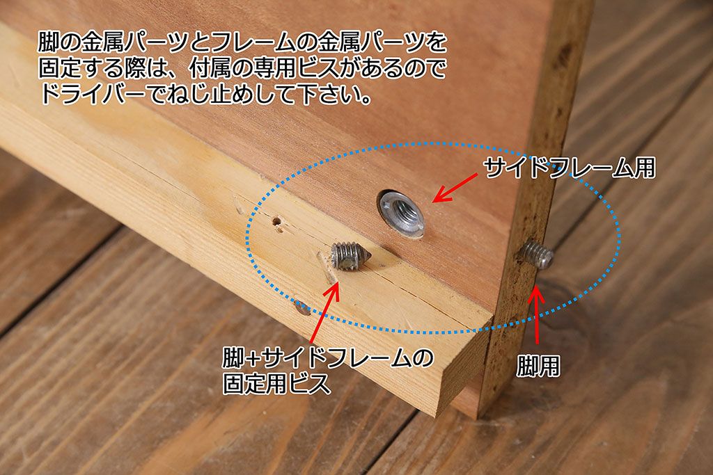 脚はビス止めです、取り外して4個口で発送となります。お客様での組み立てをお願いいたします。