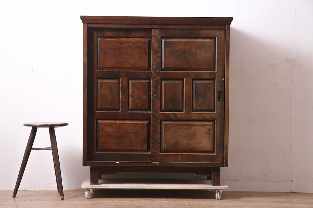 ヴィンテージ家具 北海道民芸家具 ペイント仕上げ限定 深みのある色合いが魅力の下駄箱(収納棚、戸棚、ビンテージ)(R-046606)