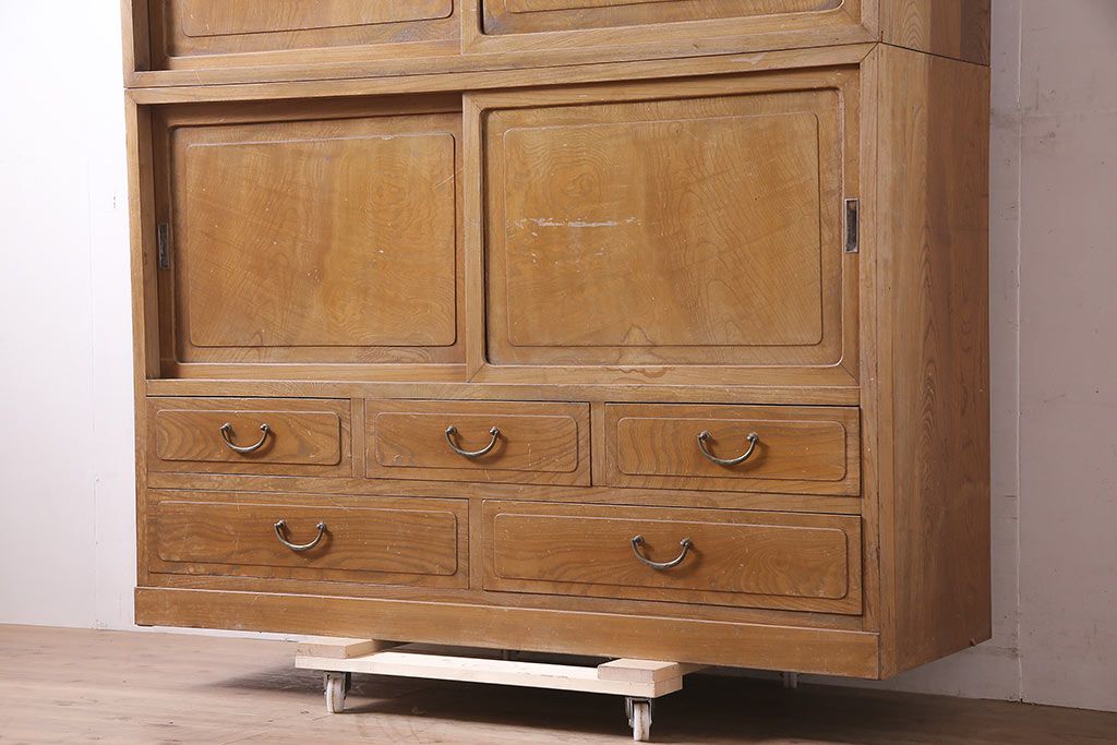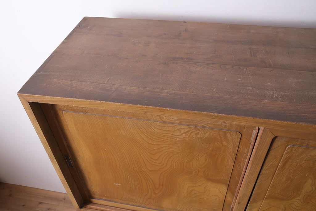 アンティーク家具 昭和初期 前面ケヤキ材 温かみのある木の風合いが魅力の戸棚(キャビネット、収納棚)(R-046600)