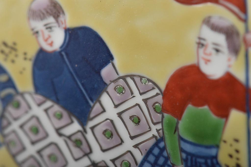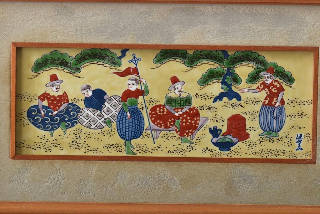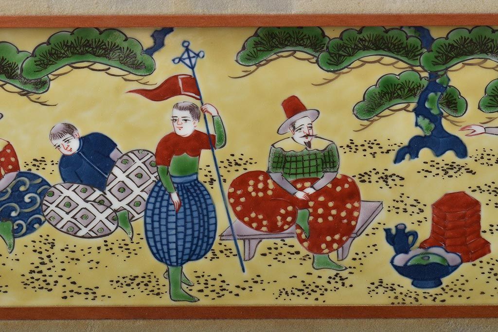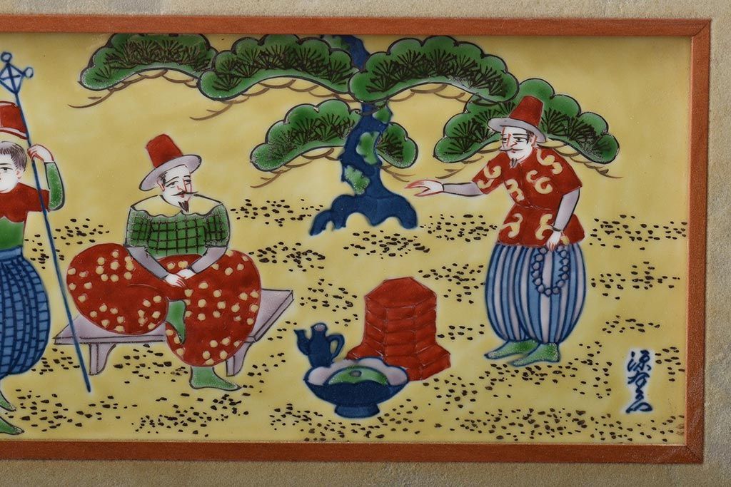源右衛門 染錦陶画(陶板、南蛮人、中国、色絵)(R-046515)