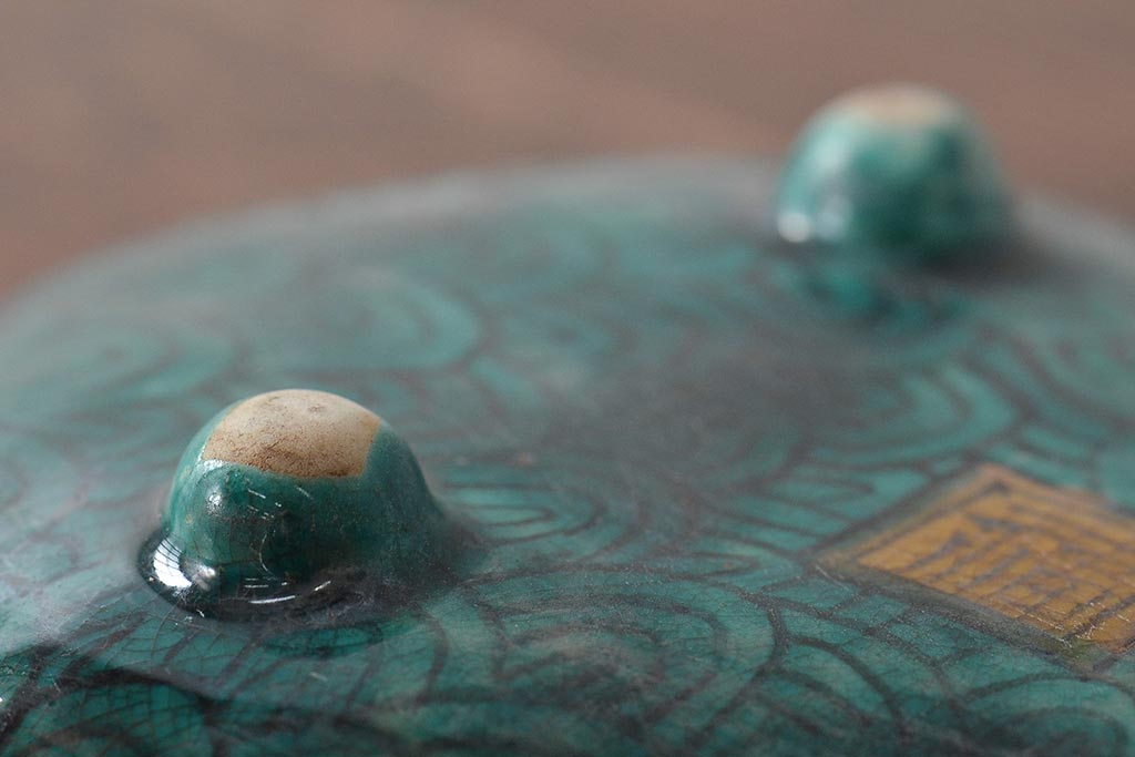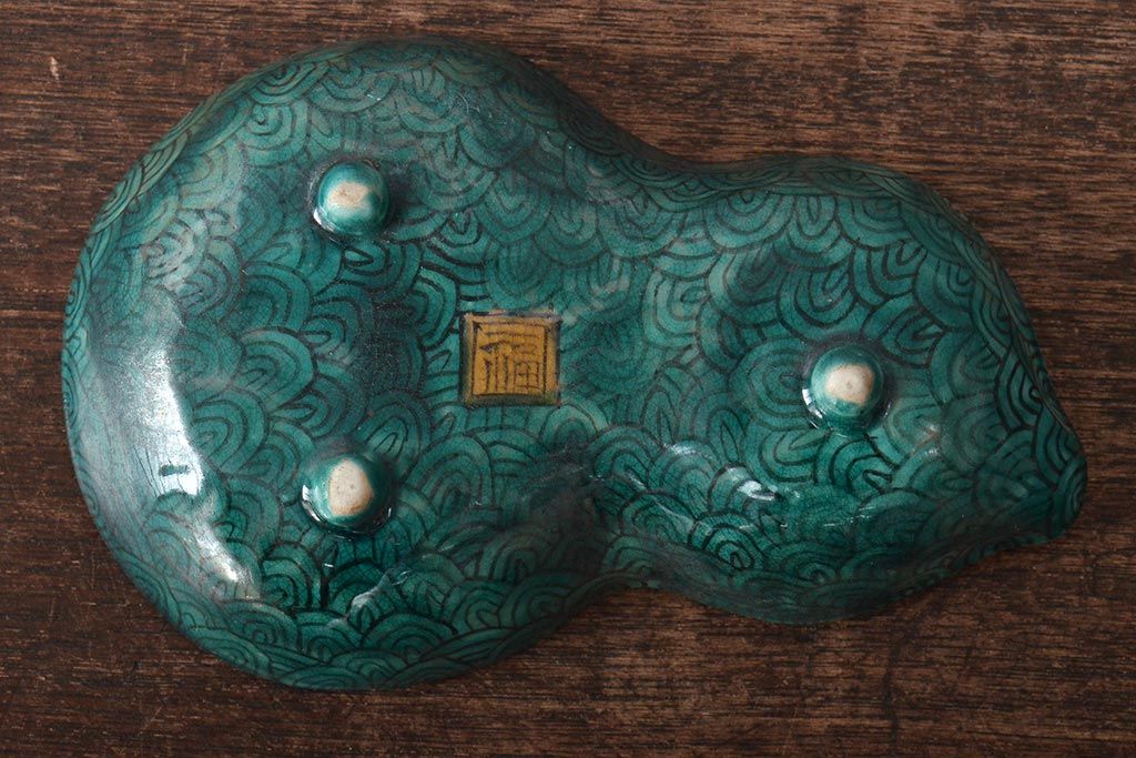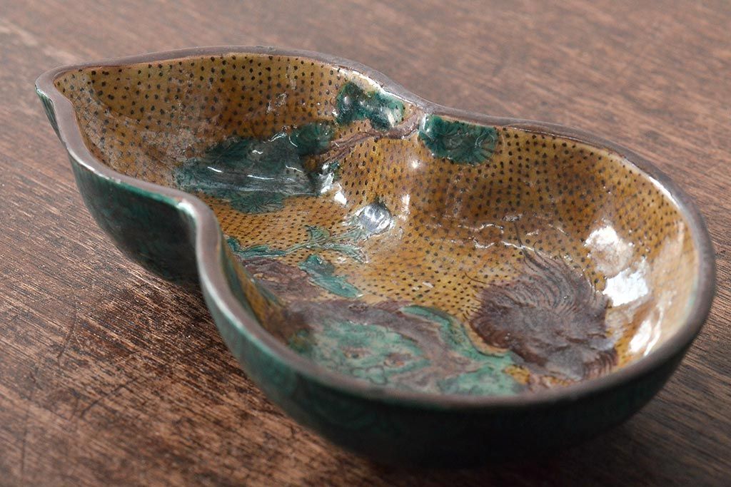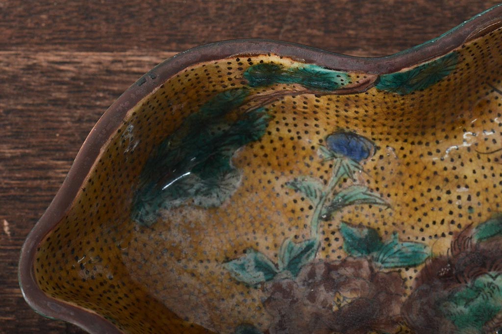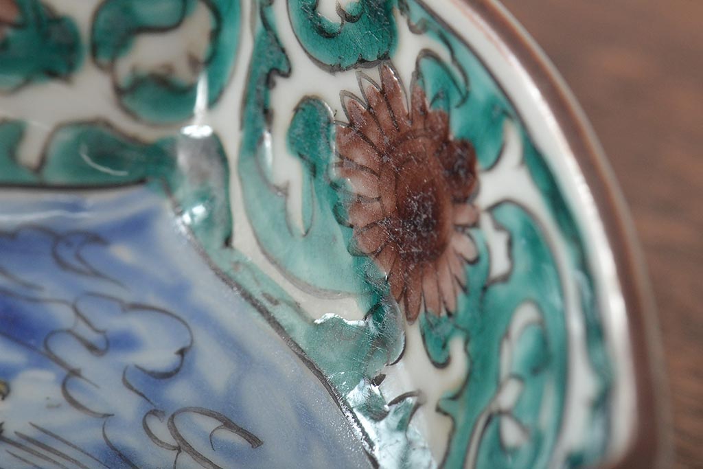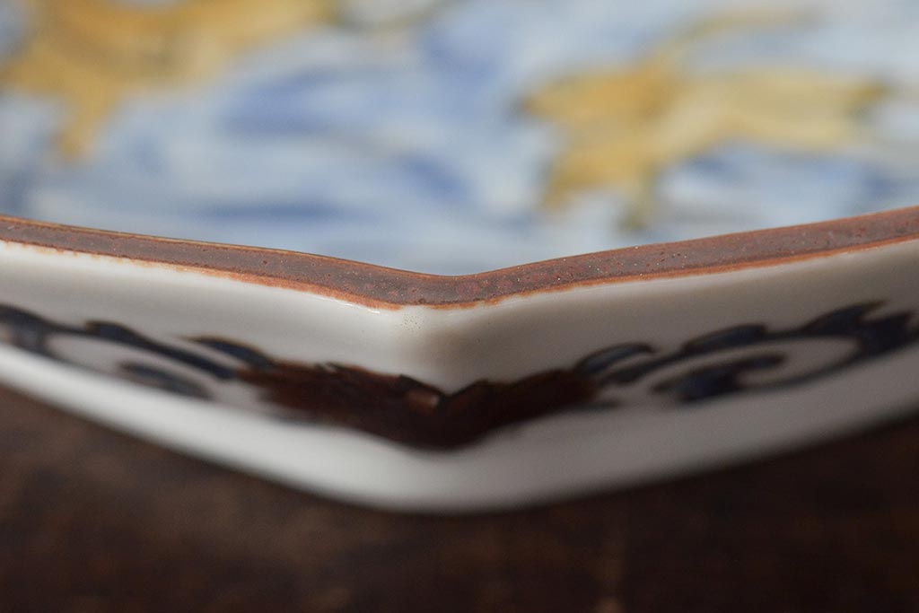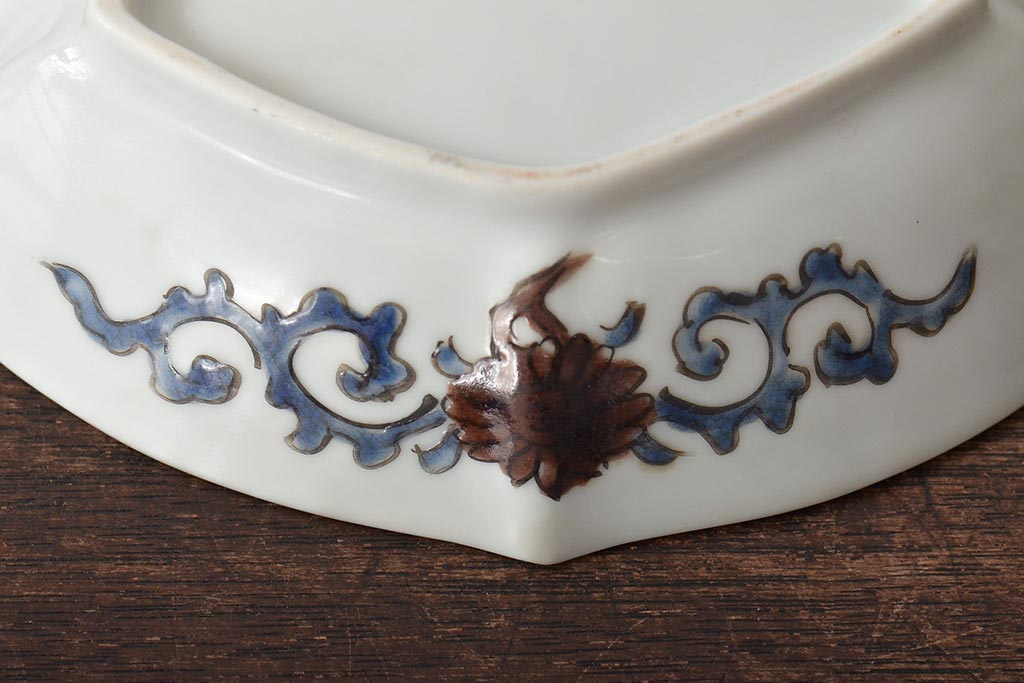江戸〜明治 九谷焼 変形皿2枚(兎、獅子、角福、青手)(R-046518)