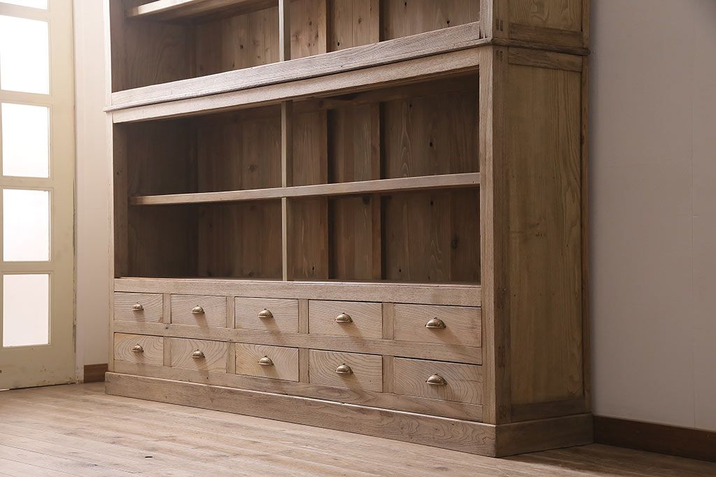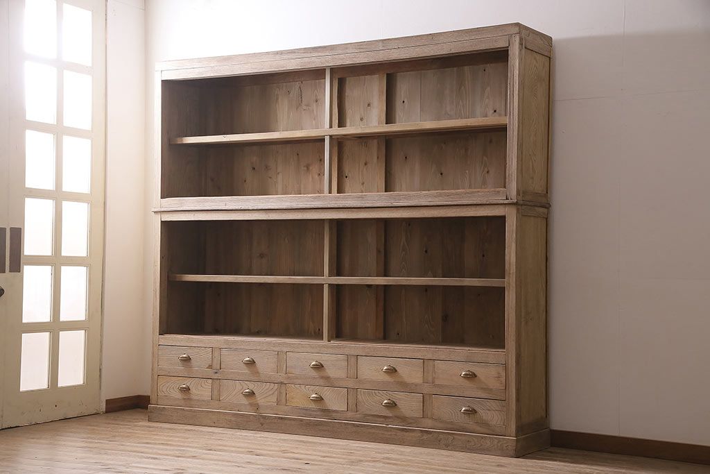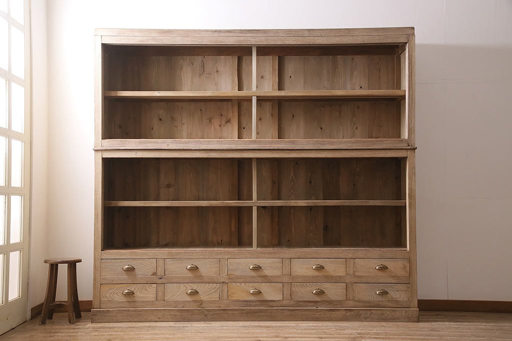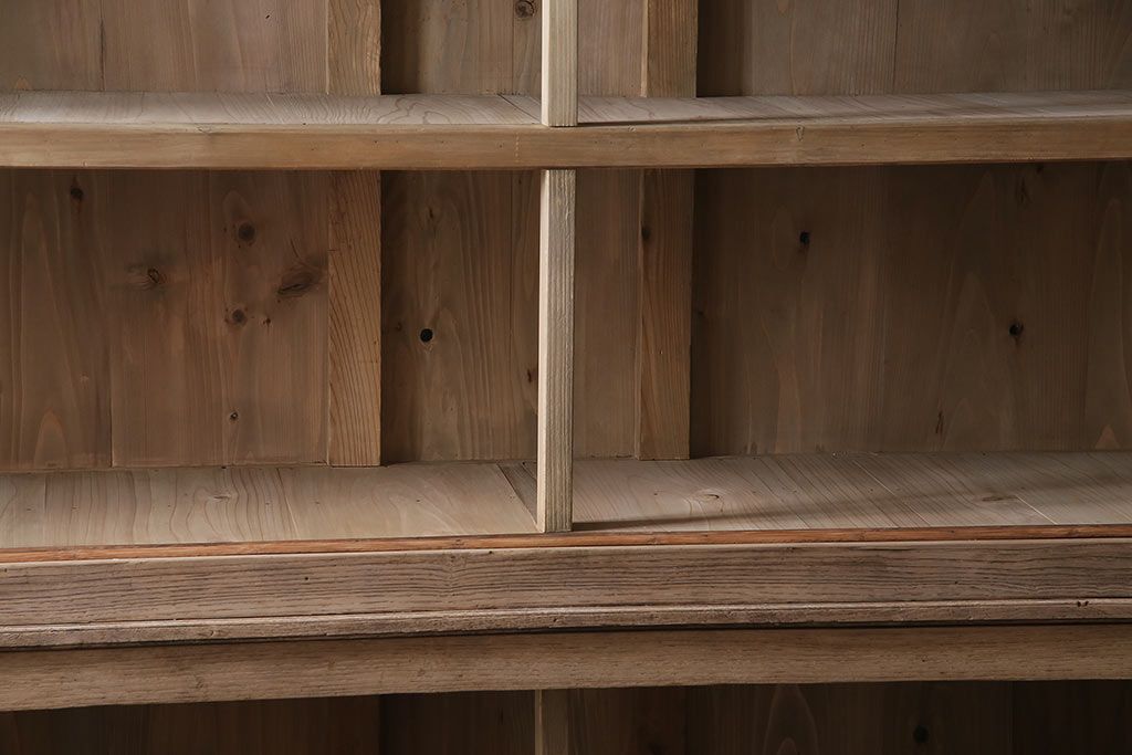 ラフジュ工房> オープンラック・シェルフ> 本棚 > アンティーク家具 昭和初期 ストリップド(剥離) 特大サイズ!素朴な木味が魅力のキャビネット(重ね、収納棚)(R-046681)