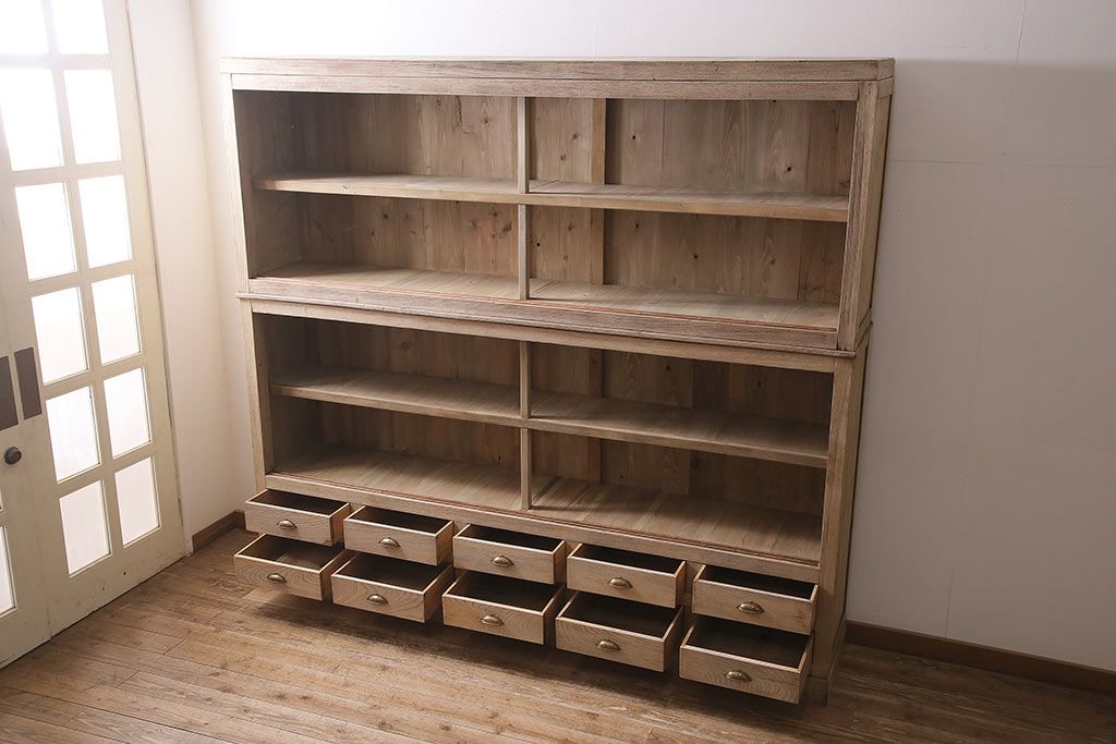 ラフジュ工房> オープンラック・シェルフ > アンティーク家具 昭和初期 ストリップド(剥離) 特大サイズ!素朴な木味が魅力のキャビネット(重ね、収納棚)(R-046681)