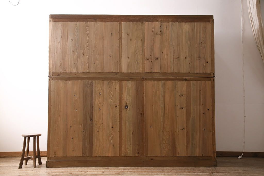 アンティーク家具 昭和初期 ストリップド(剥離) 特大サイズ!素朴な木味が魅力のキャビネット(重ね、収納棚)(R-046681)