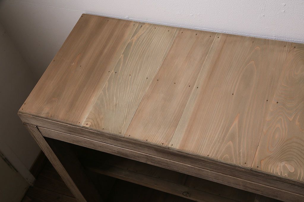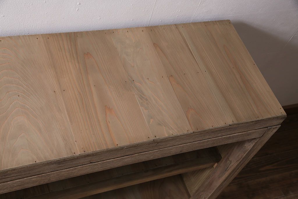ラフジュ工房> オープンラック・シェルフ> 本棚 > アンティーク家具 昭和初期 ストリップド(剥離) 特大サイズ!素朴な木味が魅力のサイドボード(本棚、収納棚)(R-046682)