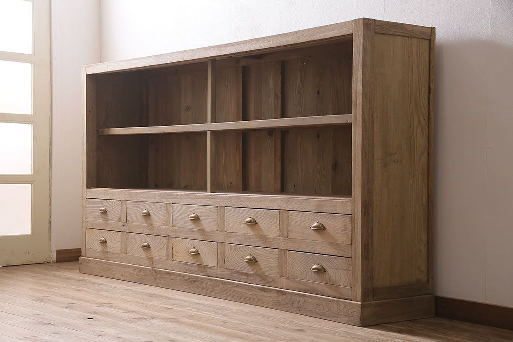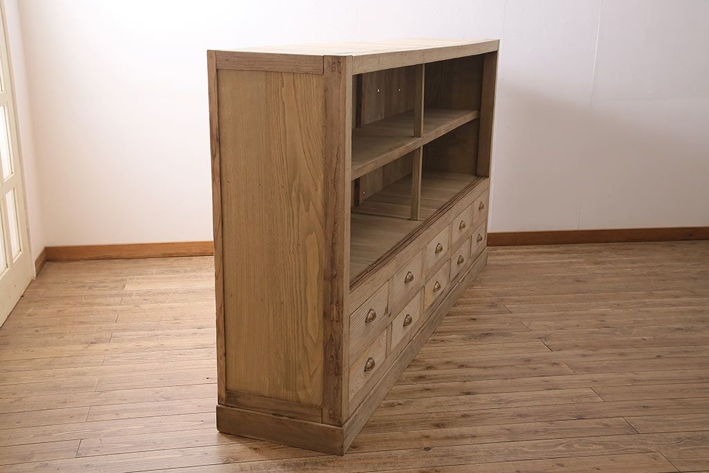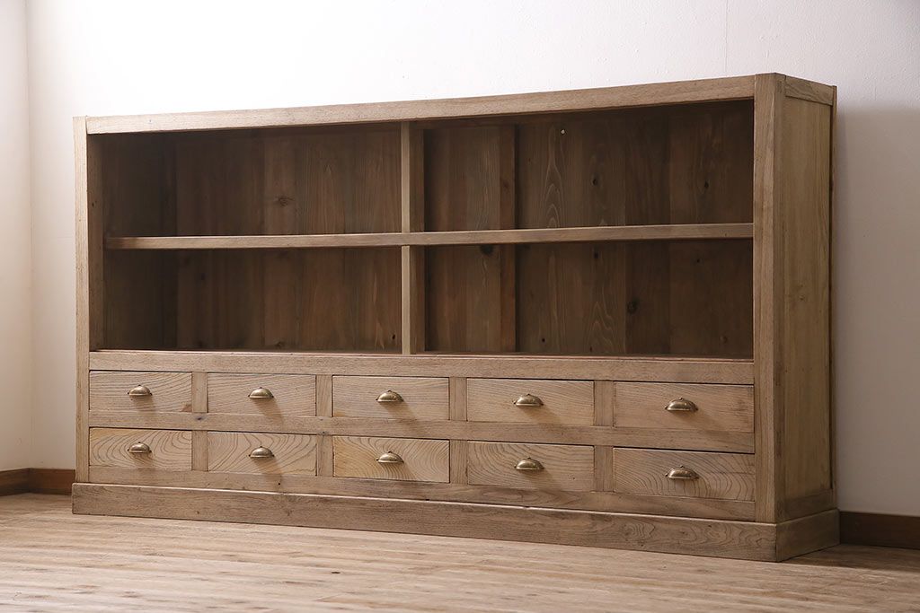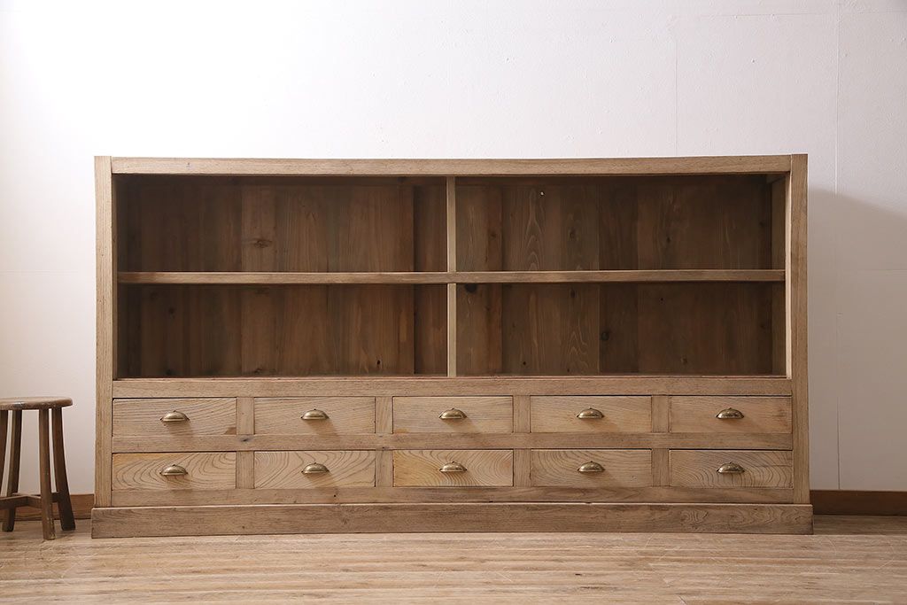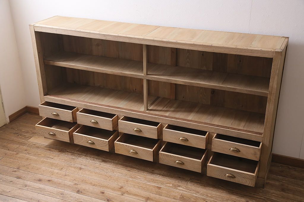 アンティーク家具 昭和初期 ストリップド(剥離) 特大サイズ!素朴な木味が魅力の引き出し付きサイドボード(本棚、収納棚)(R-046683)