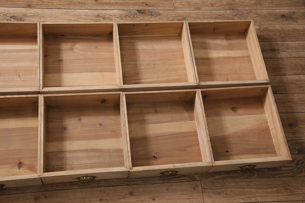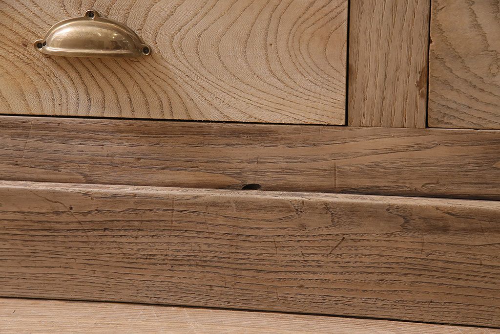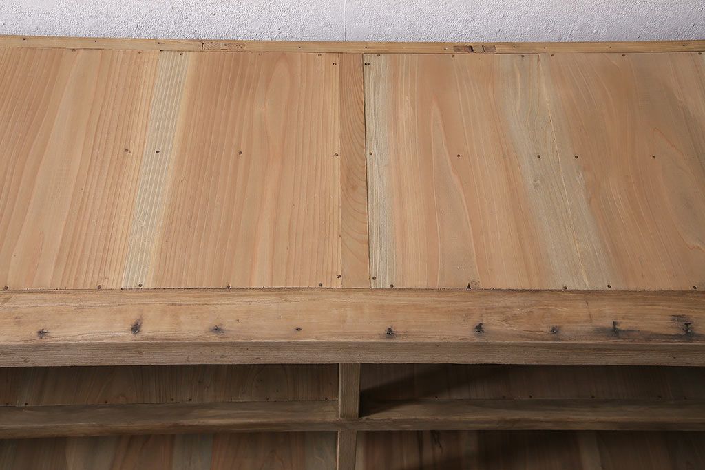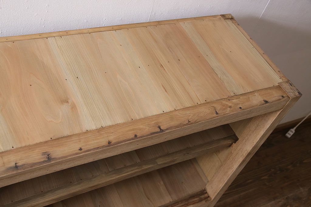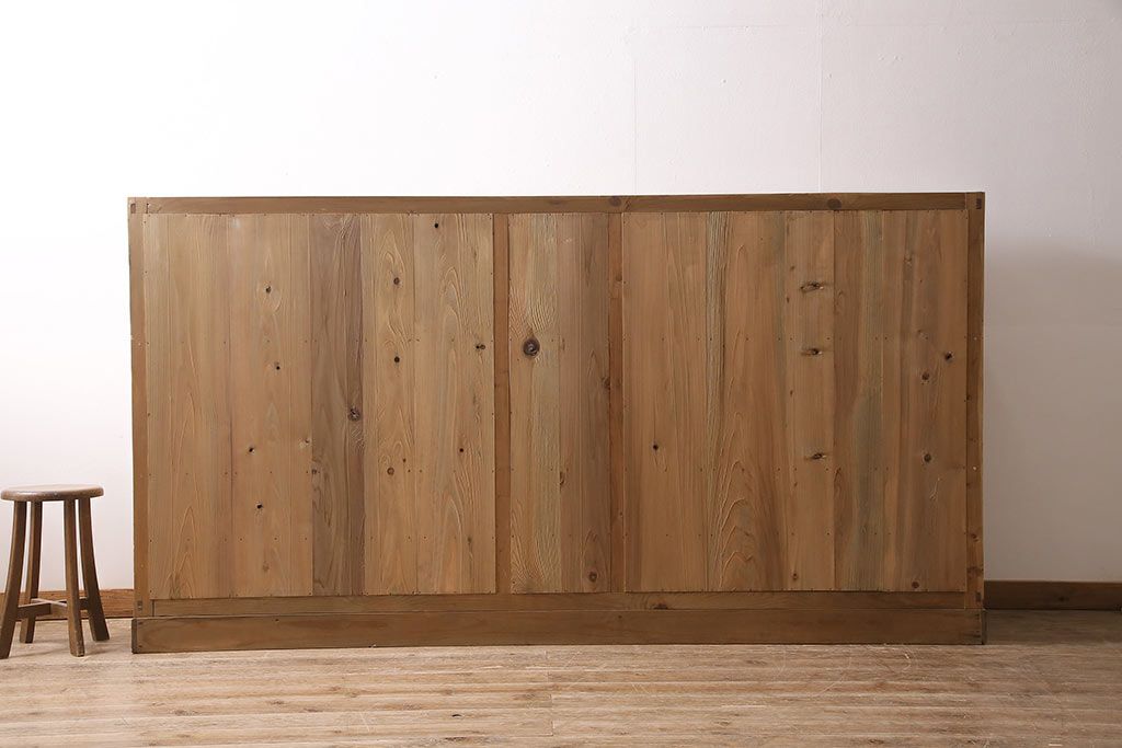 アンティーク家具 昭和初期 ストリップド(剥離) 特大サイズ!素朴な木味が魅力の引き出し付きサイドボード(本棚、収納棚)(R-046683)