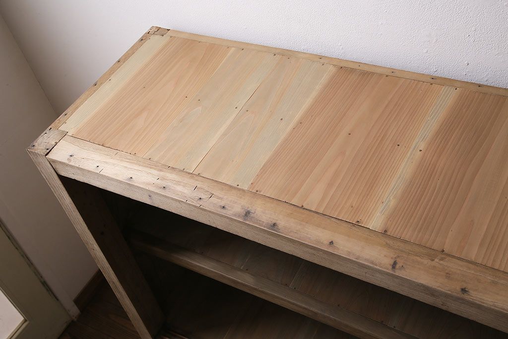 アンティーク家具 昭和初期 ストリップド(剥離) 特大サイズ!素朴な木味が魅力の引き出し付きサイドボード(本棚、収納棚)(R-046683)です。