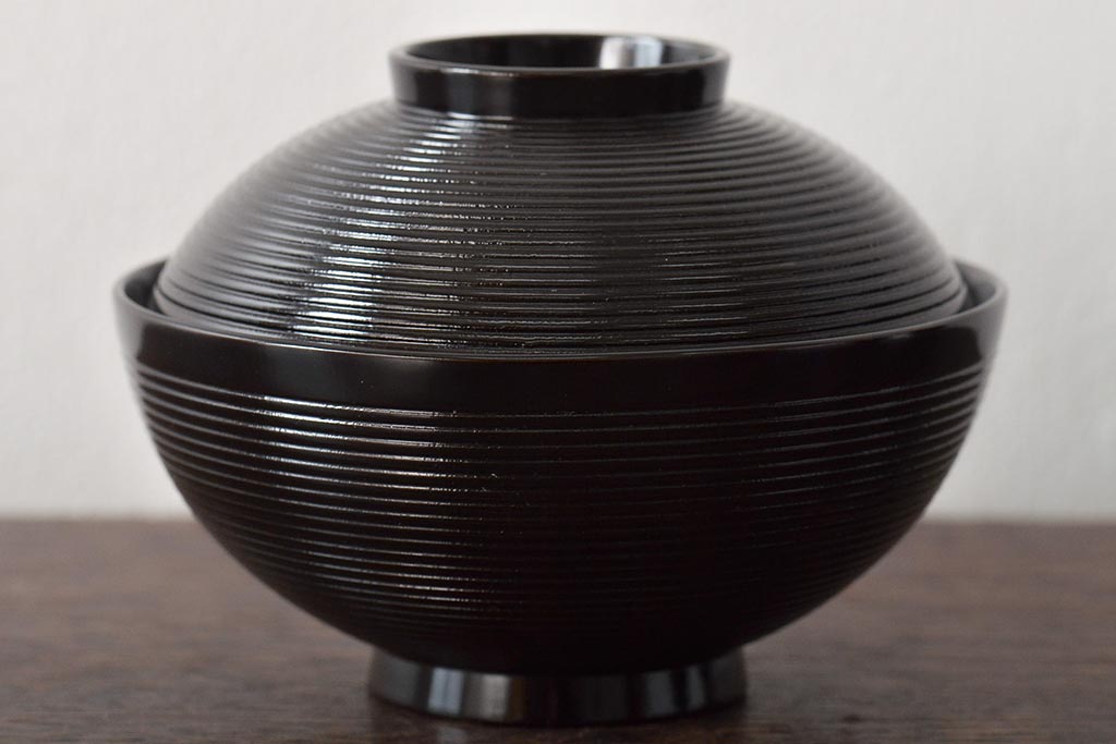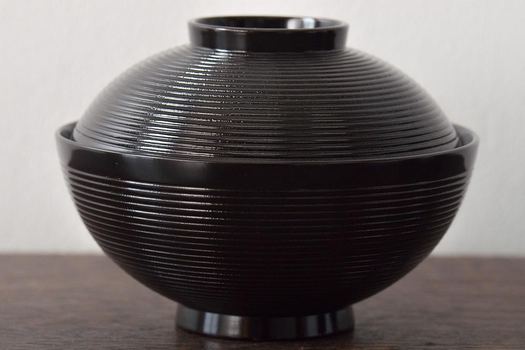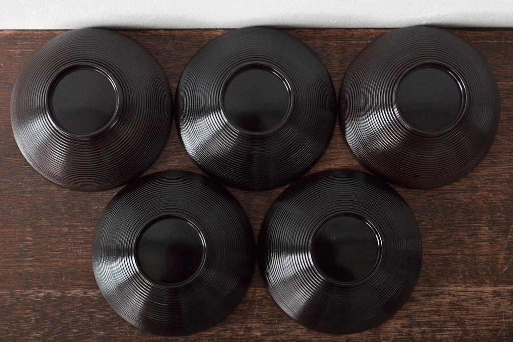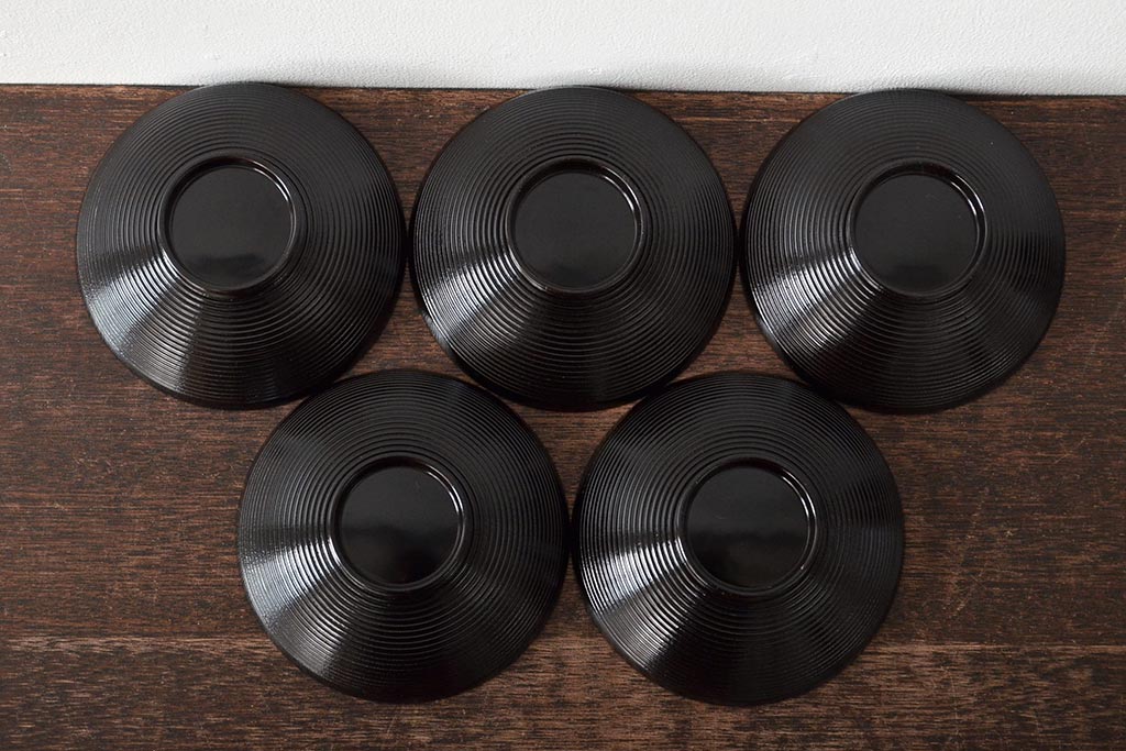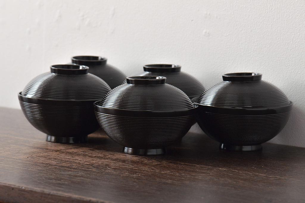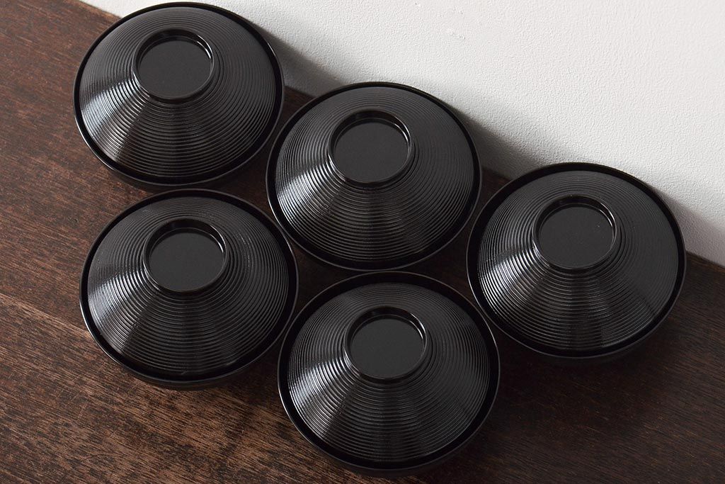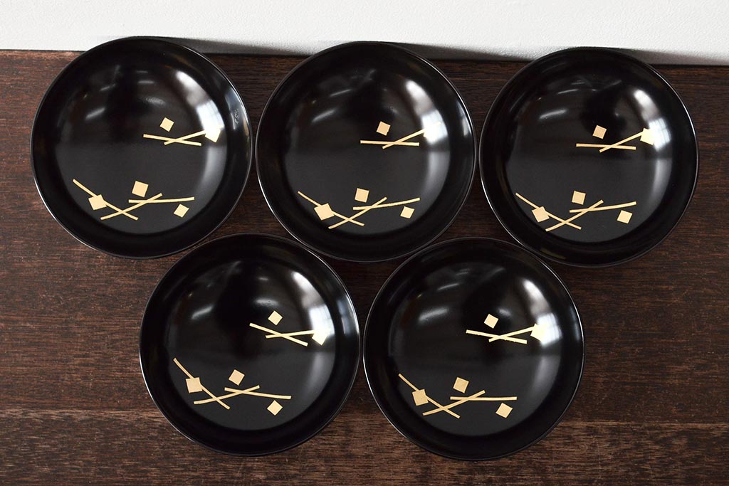 初瀬川柳庵 糸目黒塗 切箔絵 木製 吸物椀5客(漆器)(R-046644)