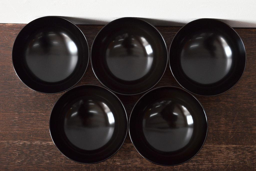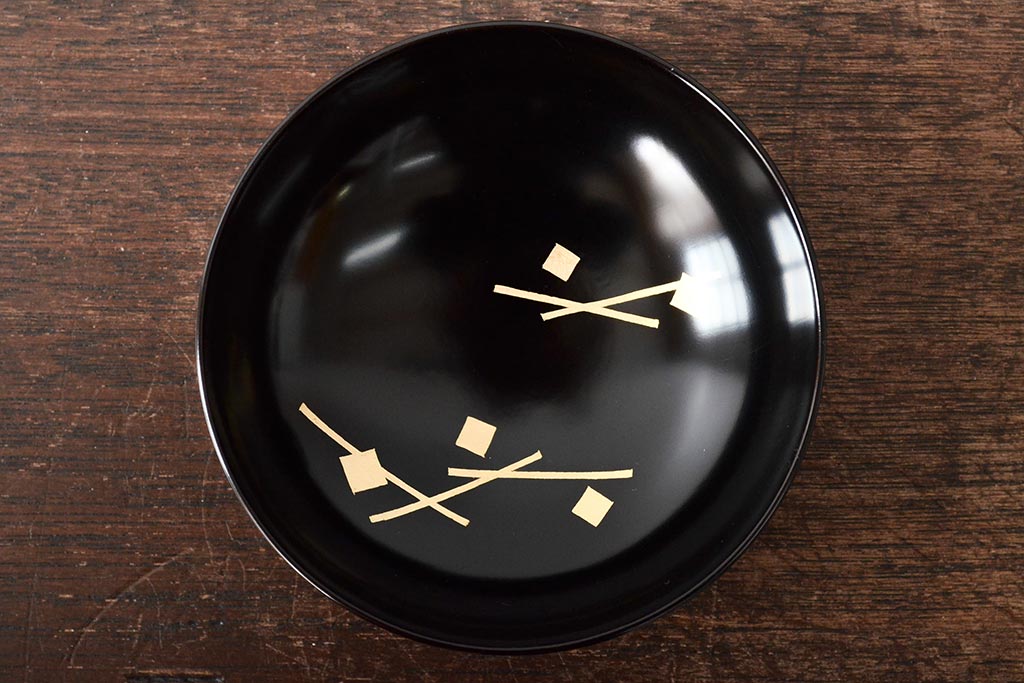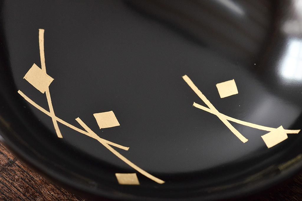 ラフジュ工房> 和食器・茶道具> お椀・茶碗 > 初瀬川柳庵 糸目黒塗 切箔絵 木製 吸物椀5客(漆器)(R-046644)