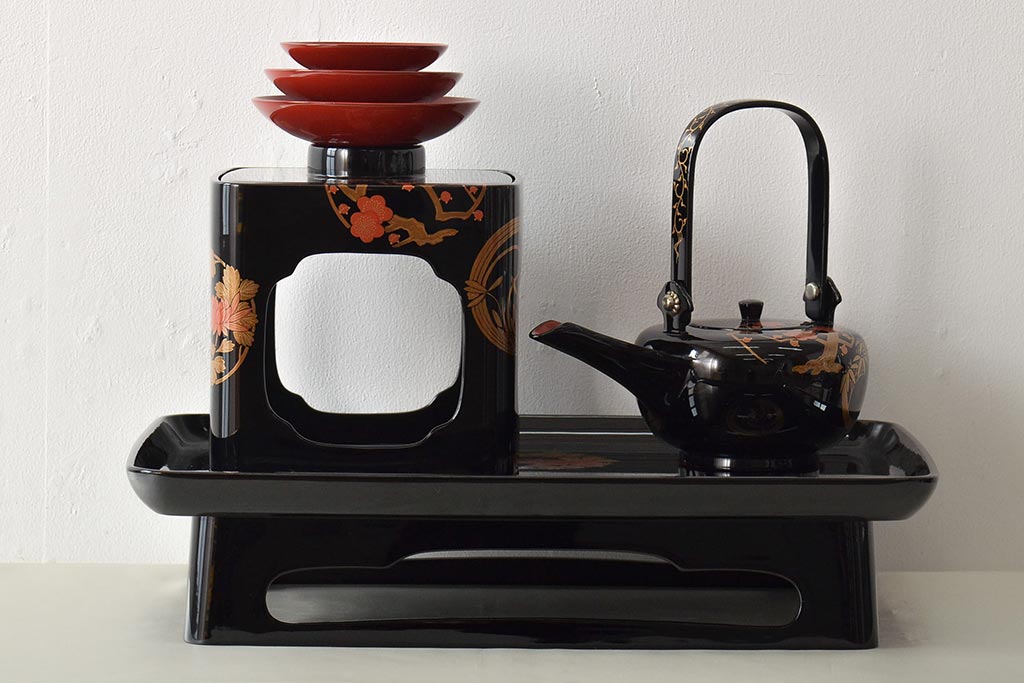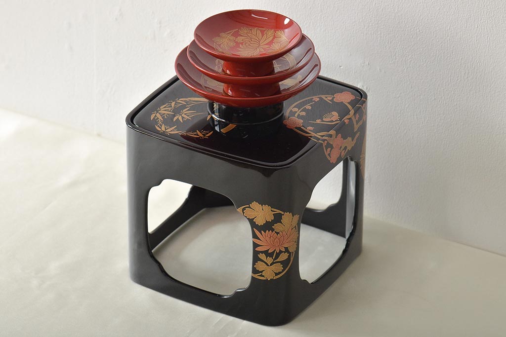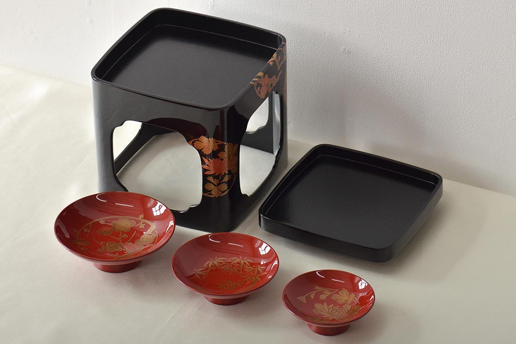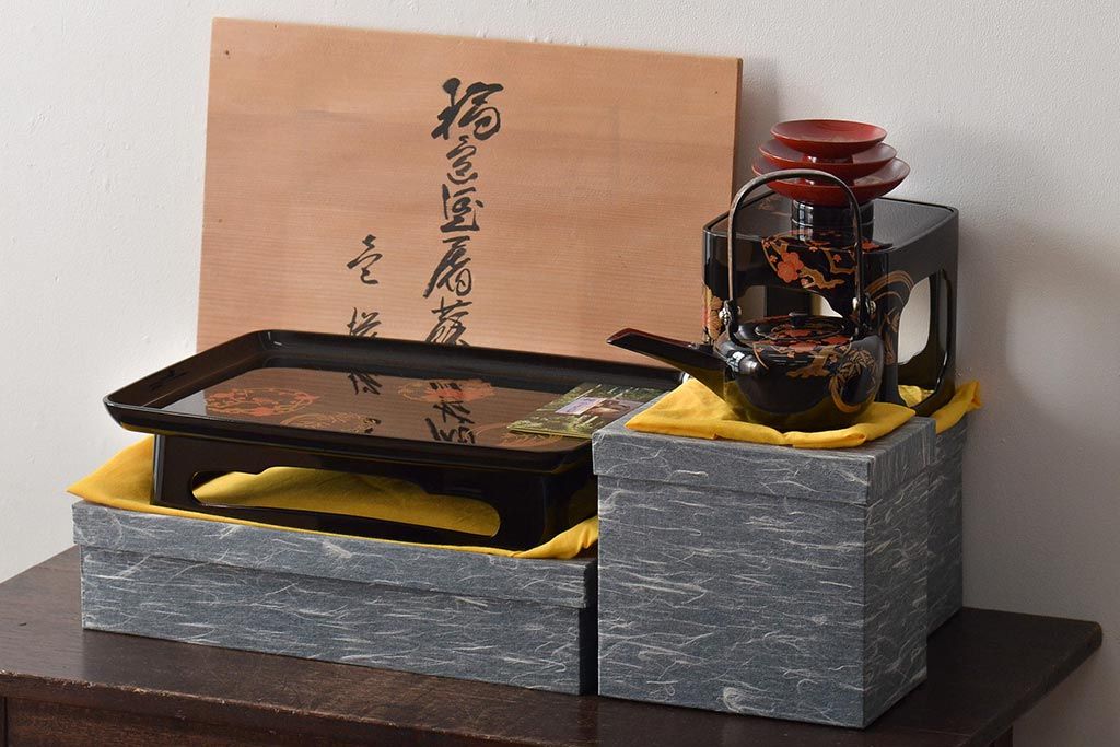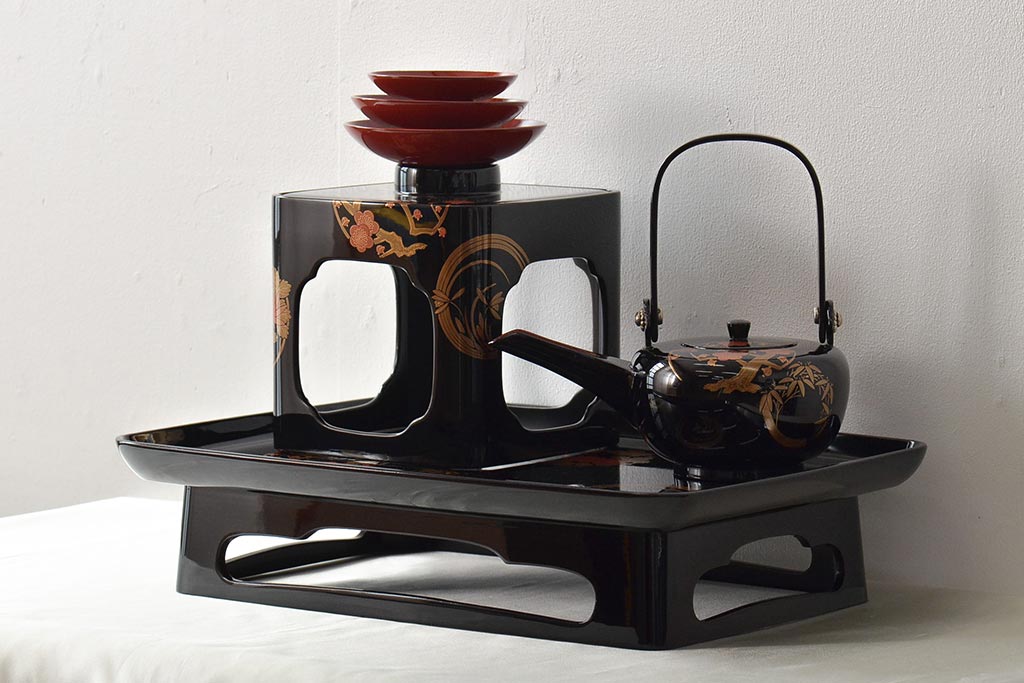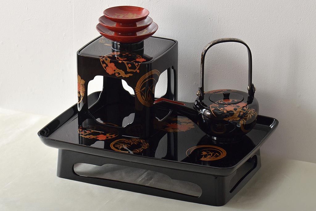 ラフジュ工房> 和食器・茶道具> 酒器 > 輪島塗 五島屋 木製蒔絵 屠蘇器 共箱(杯台、銚子、金彩)(R-046670)