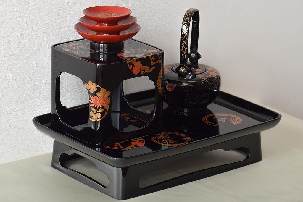 ラフジュ工房> 洋食器・キッチン用品 > 輪島塗 五島屋 木製蒔絵 屠蘇器 共箱(杯台、銚子、金彩)(R-046670)