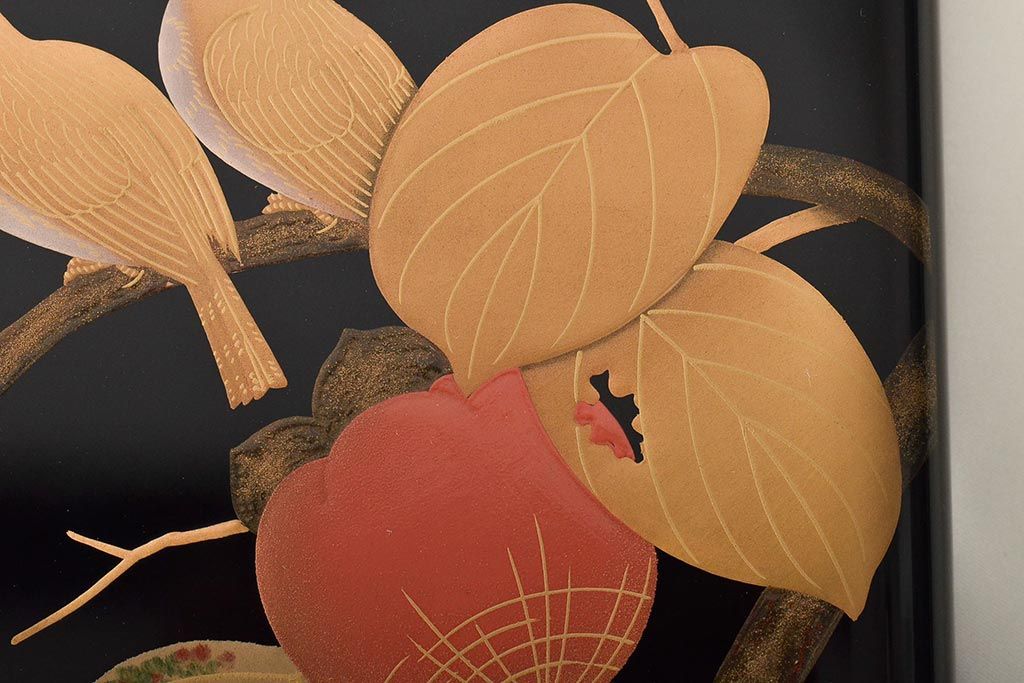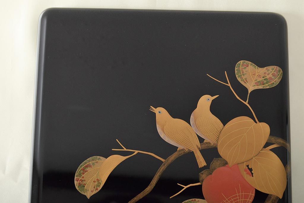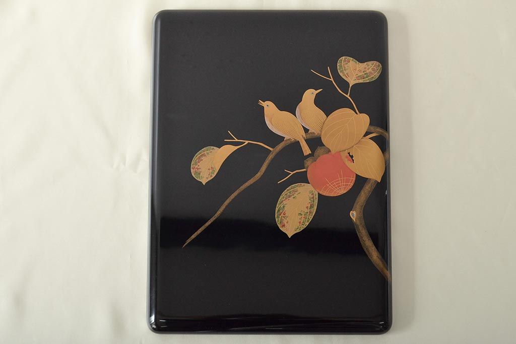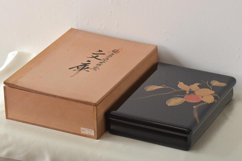 輪島塗 子舟作 柿の図蒔絵文庫(硯箱、文箱、木製漆器)(R-046643)