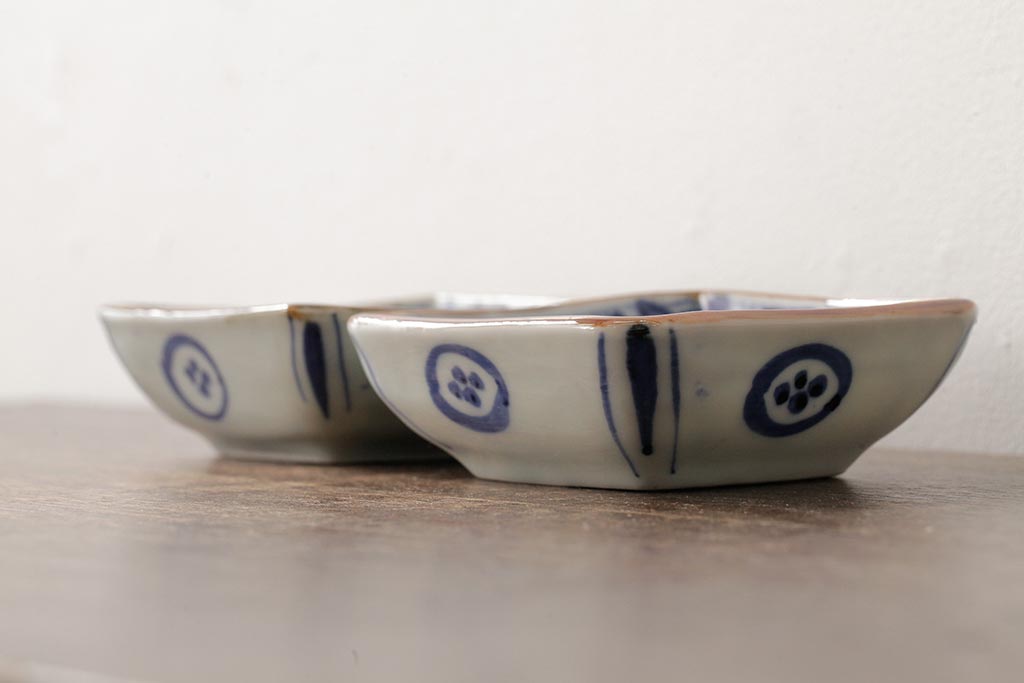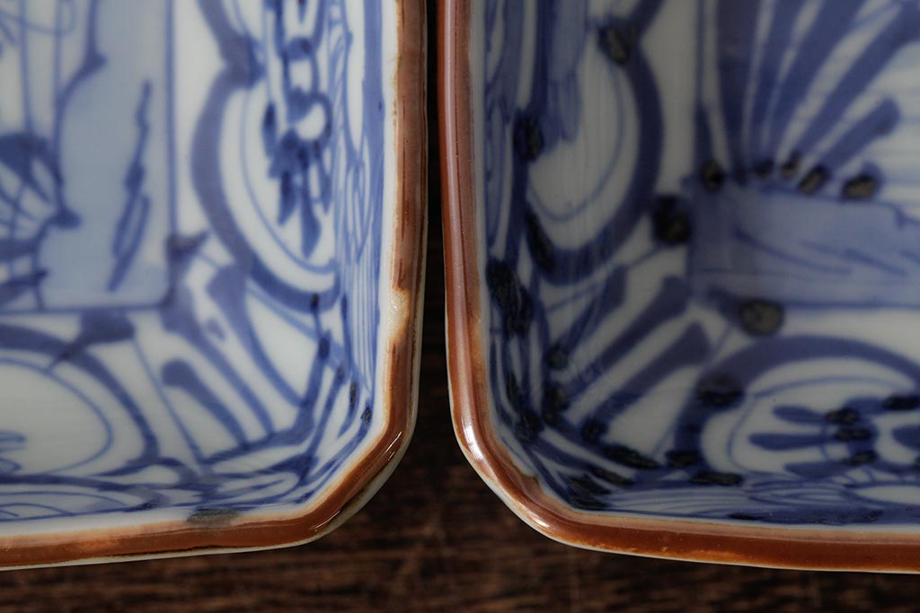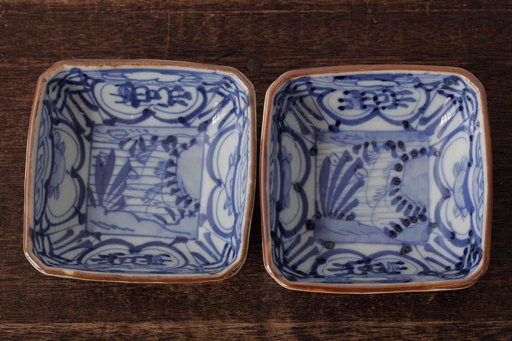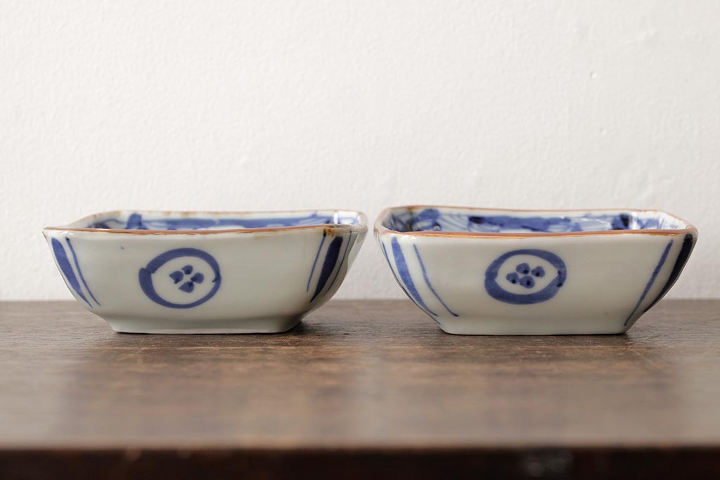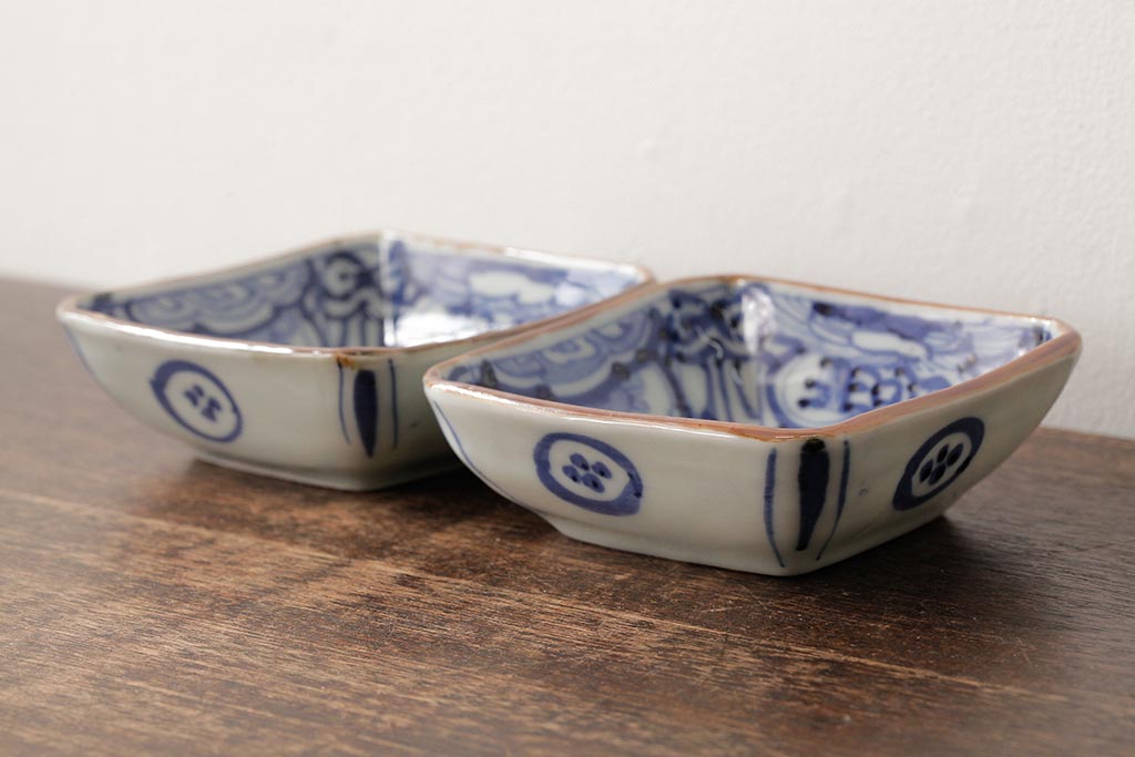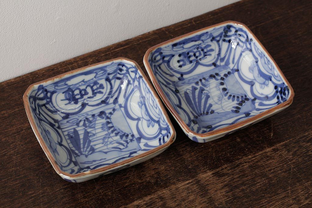 ラフジュ工房> 和食器・茶道具 > 幕末明治期 伊万里焼 染付角皿2枚セット(向付、小鉢、和食器)(R-042682)