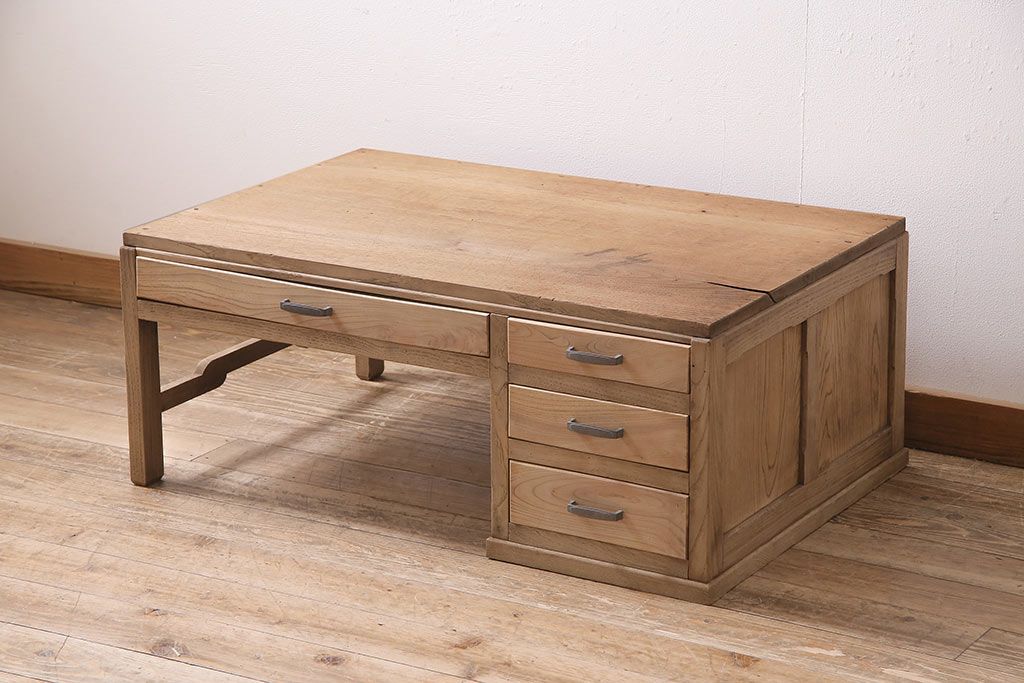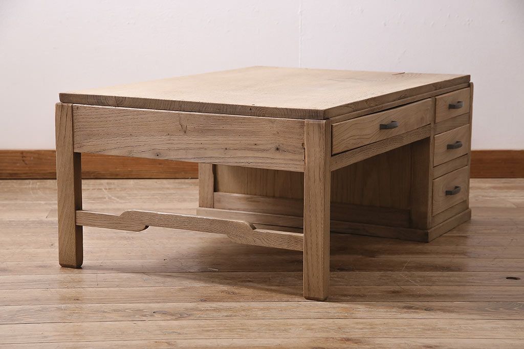 テーブル> センターテーブル・ローテーブル > アンティーク家具 昭和中期 ストリップド(剥離) 栗材 ナチュラルな雰囲気が魅力の文机(ローテーブル、センターテーブル)(R-046687)