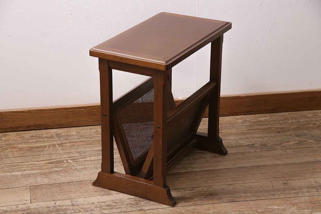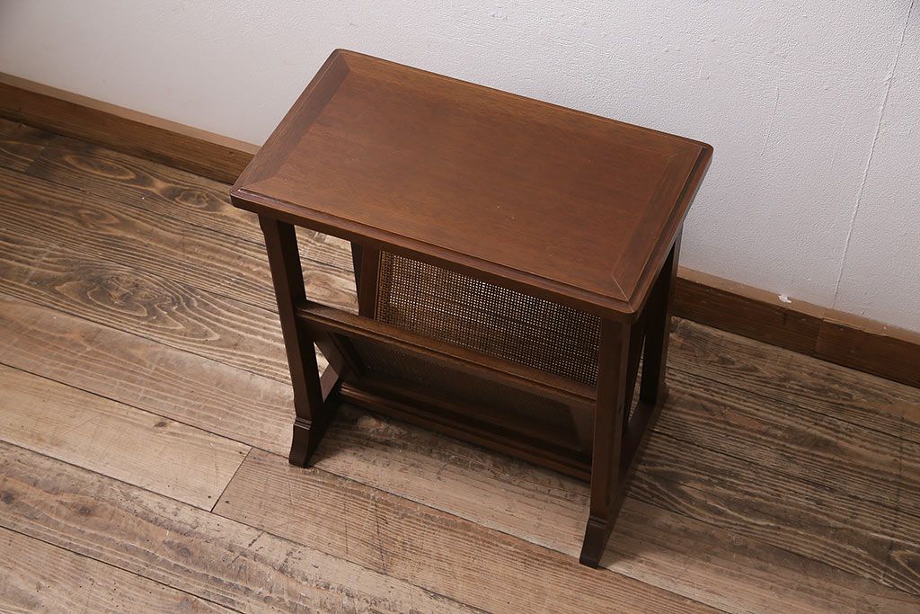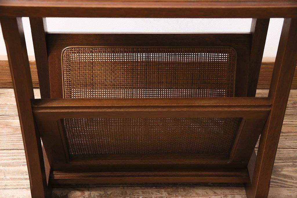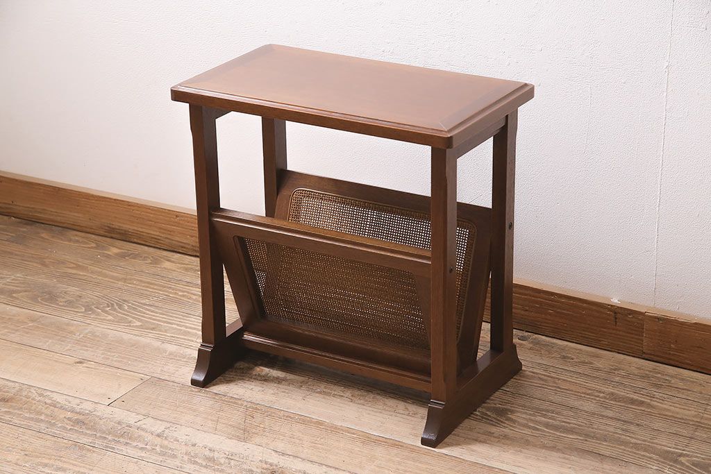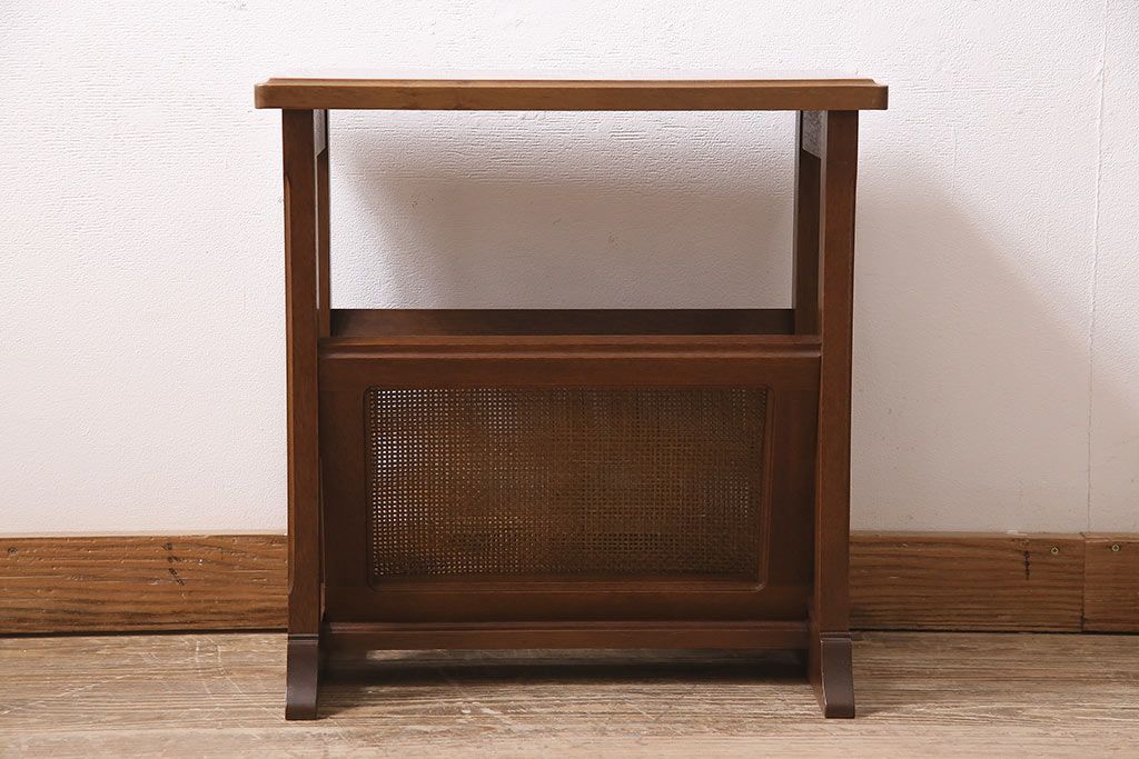 ヴィンテージ家具 オールドマルニ maruni(マルニ木工) 地中海シリーズ レア マガジンラック付きのサイドテーブル(マガジン卓、本立て、ビンテージ)(R-046694)