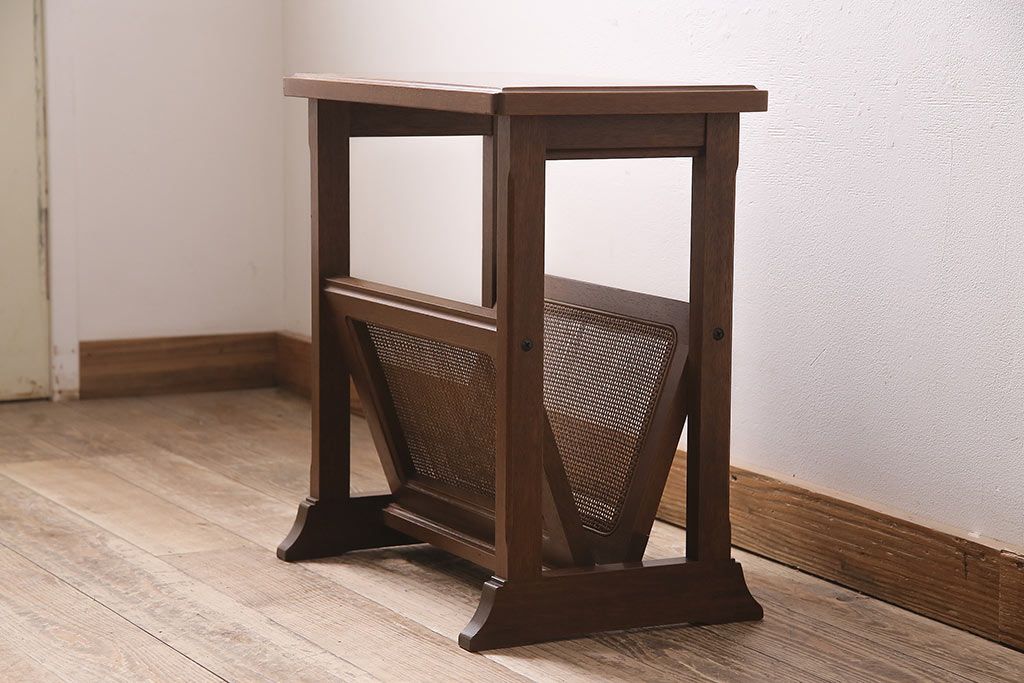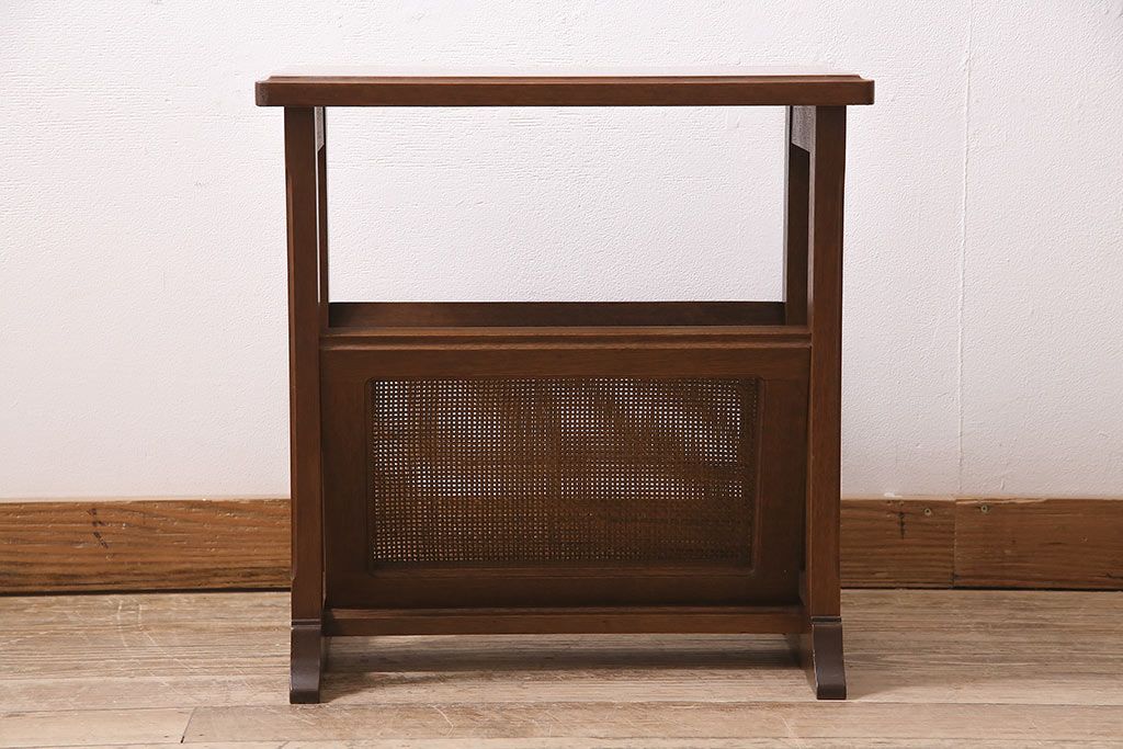 オープンラック・シェルフ> マガジンラック > ヴィンテージ家具 オールドマルニ maruni(マルニ木工) 地中海シリーズ レア マガジンラック付きのサイドテーブル(マガジン卓、本立て、ビンテージ)(R-046694)