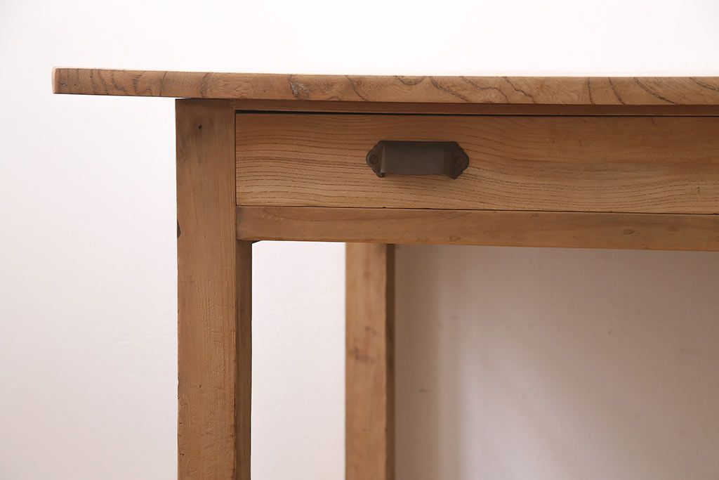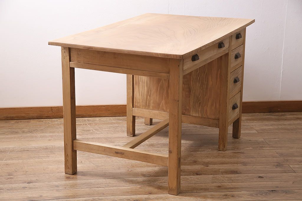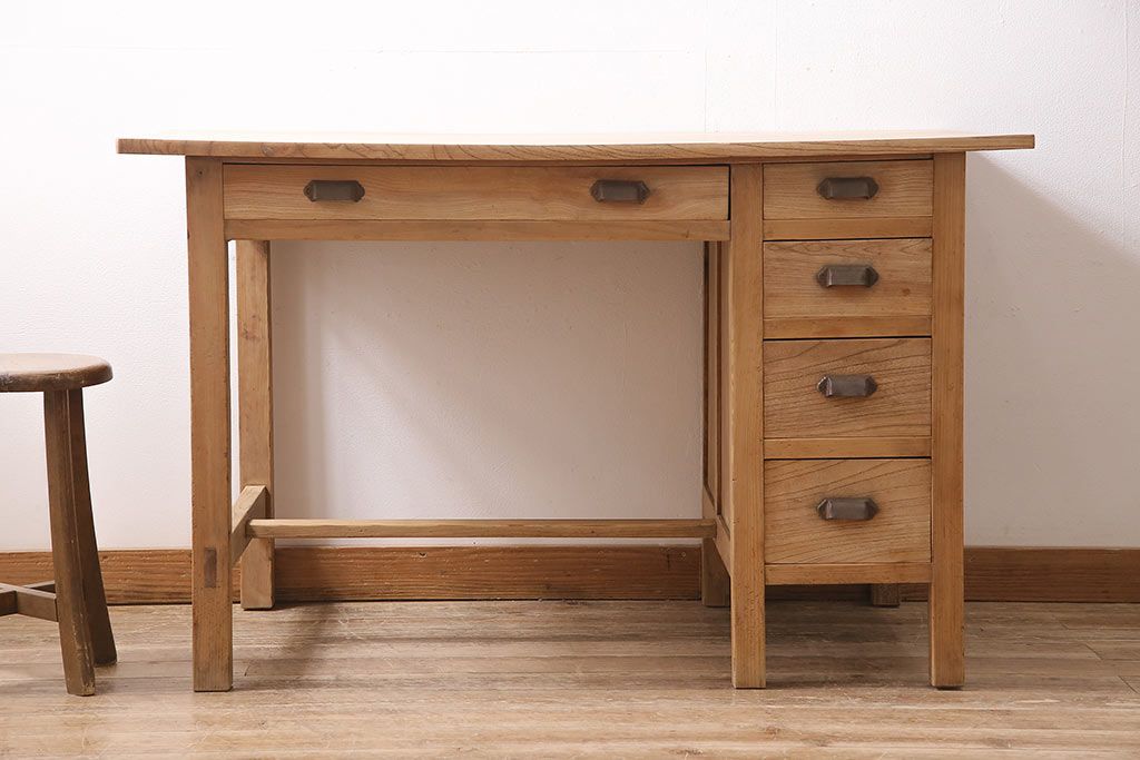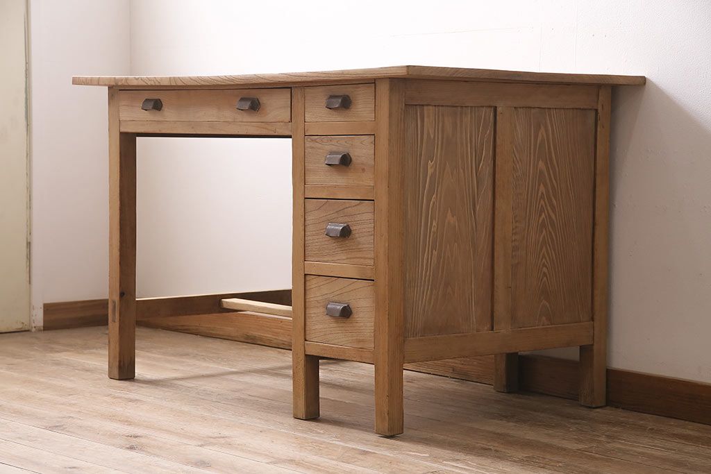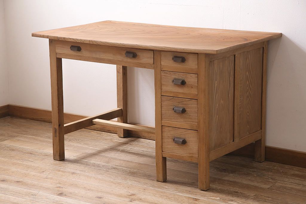 デスク> 片袖机・両袖机 > アンティーク家具 ストリップド(剥離) ケヤキ材 白木の風合いが魅力のレトロな片袖机(ワークデスク、在宅ワーク、在宅用)(R-046690)