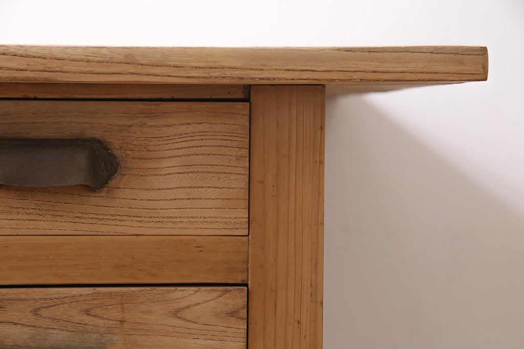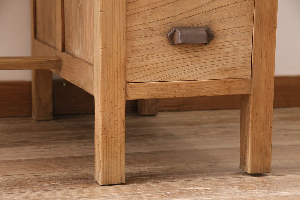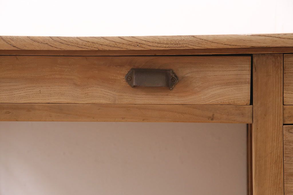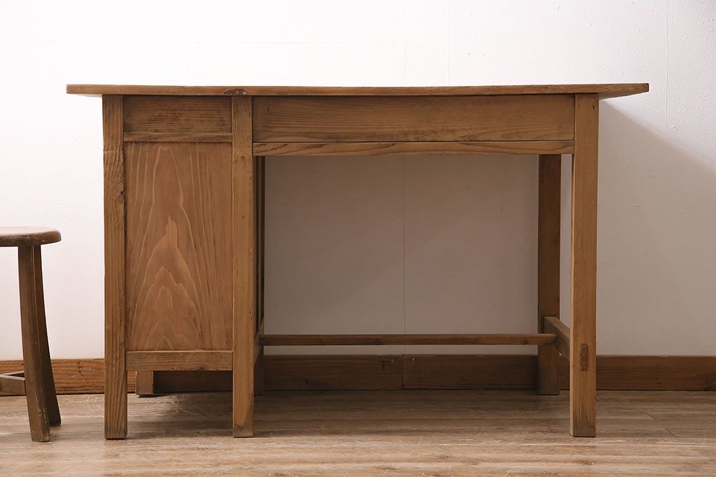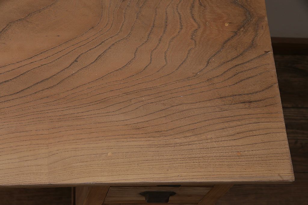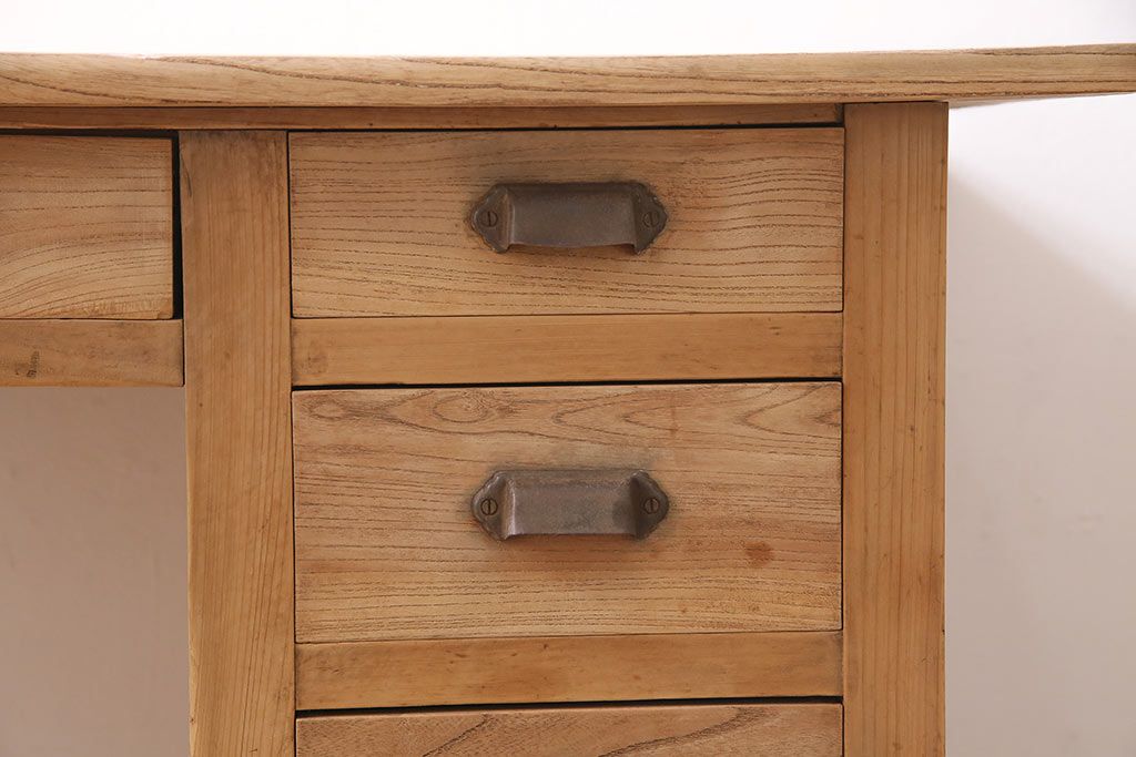 デスク> 片袖机・両袖机 > アンティーク家具 ストリップド(剥離) ケヤキ材 白木の風合いが魅力のレトロな片袖机(ワークデスク、在宅ワーク、在宅用)(R-046690)