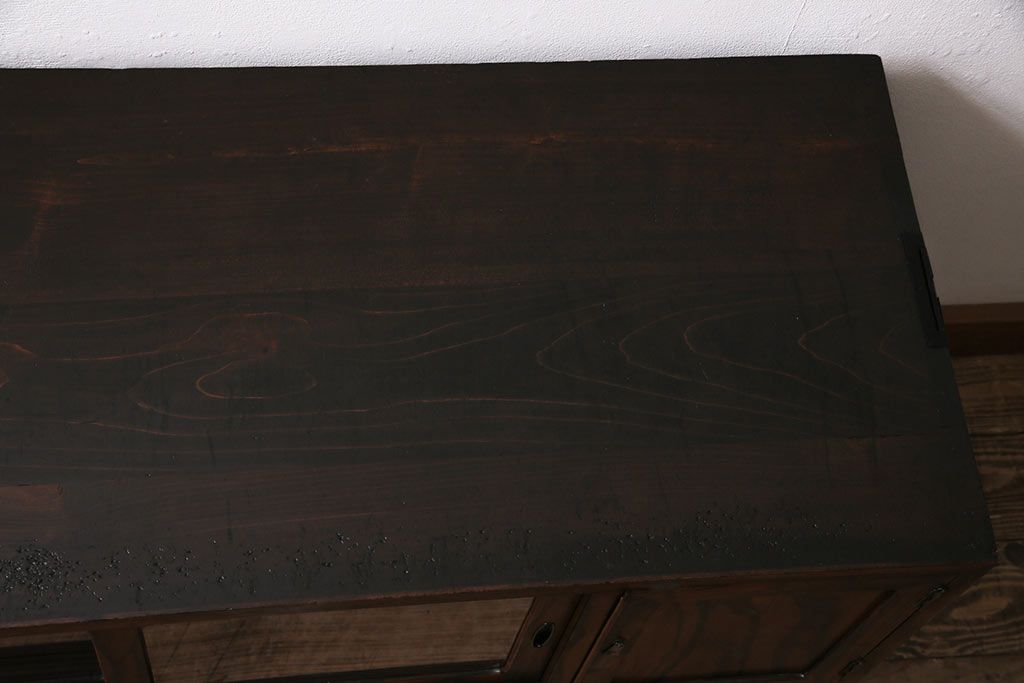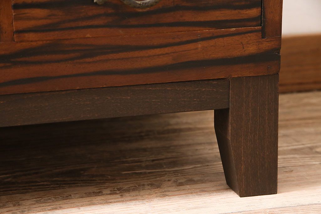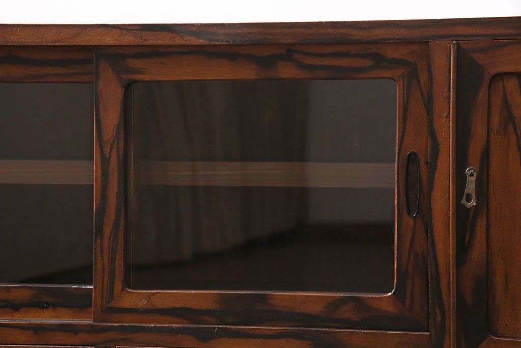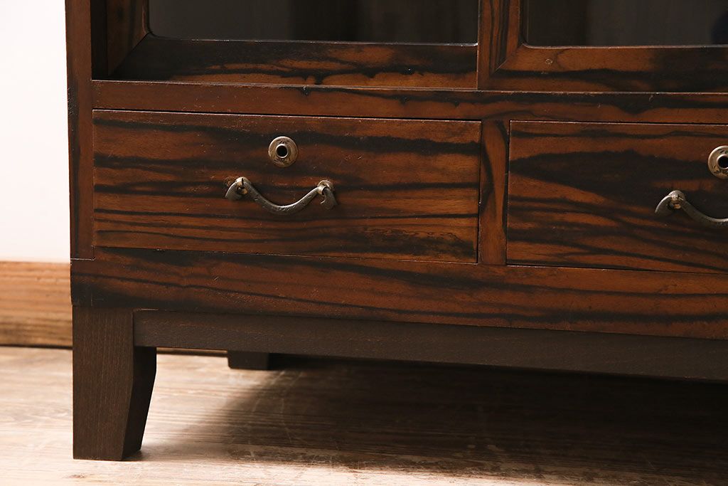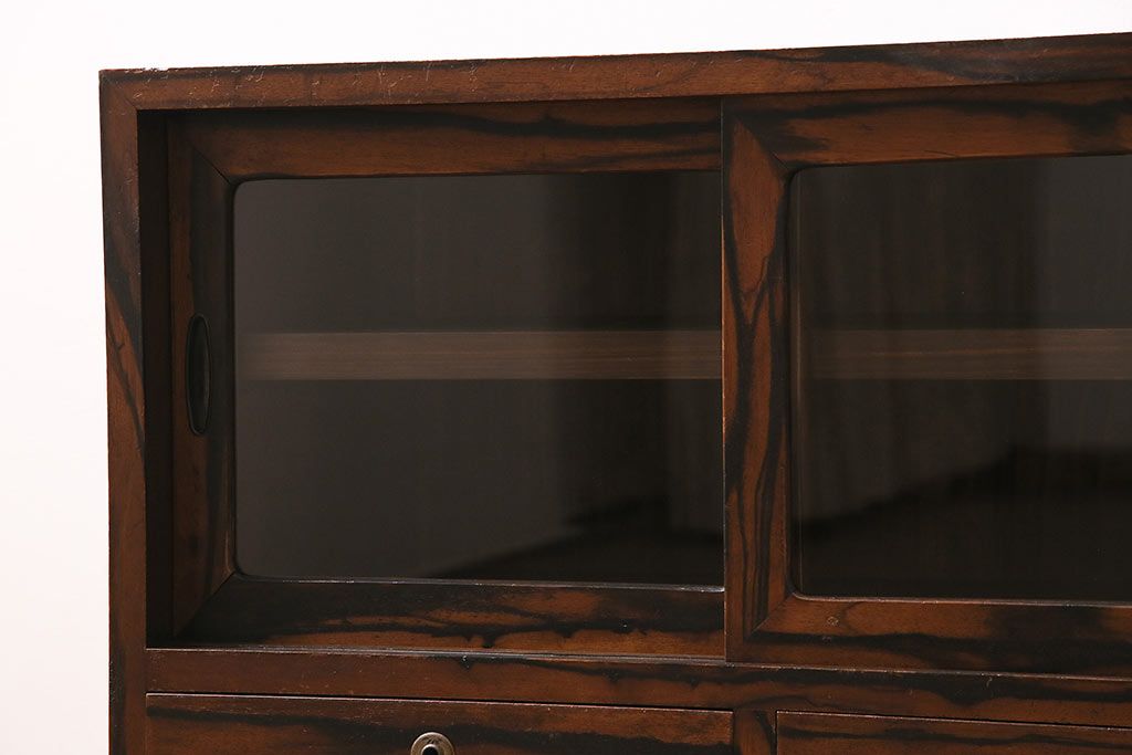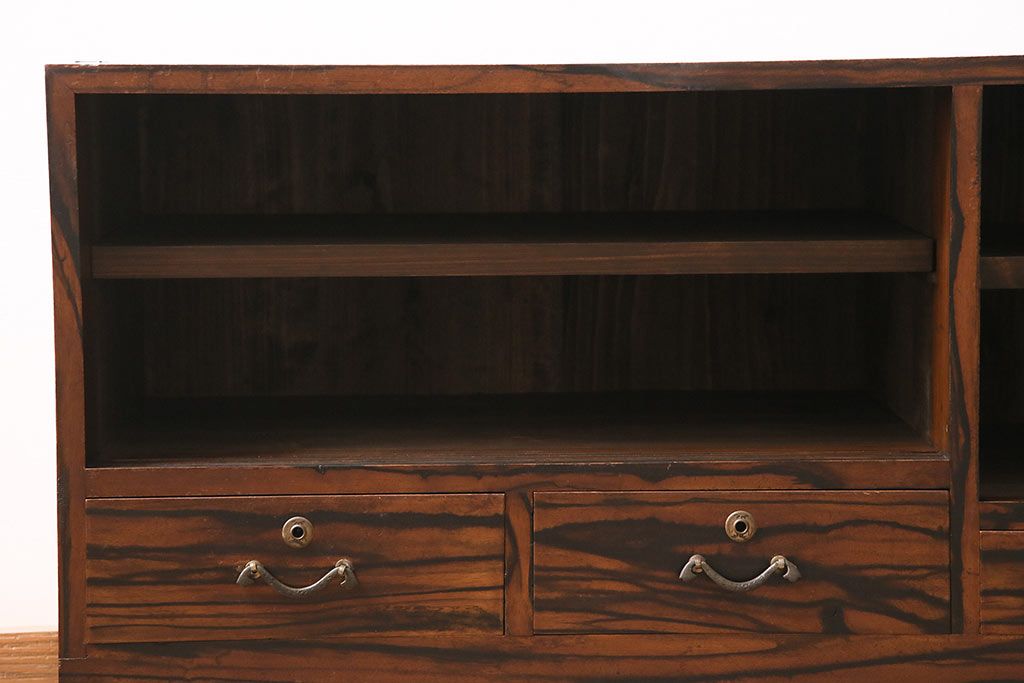 ビンテージ家具 前面黒柿材 引き出し付き 和風リビングにおすすめな脚付きローボード(戸棚、リビングボード)(R-046691)