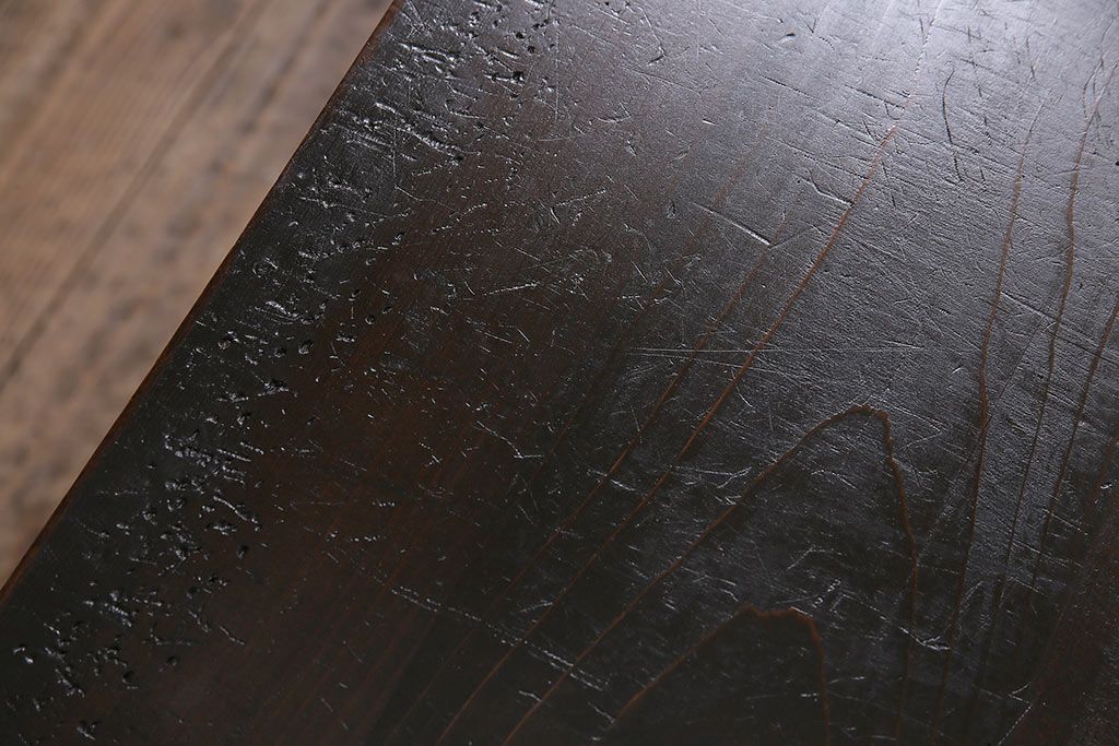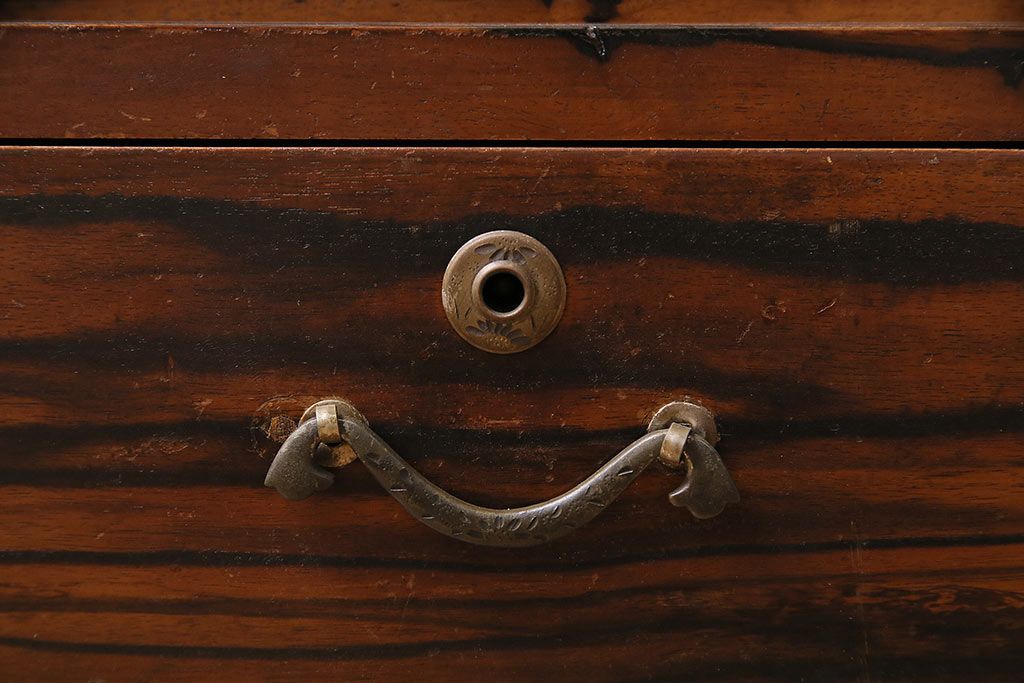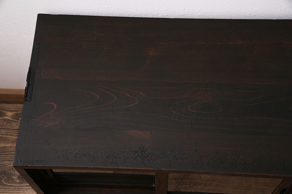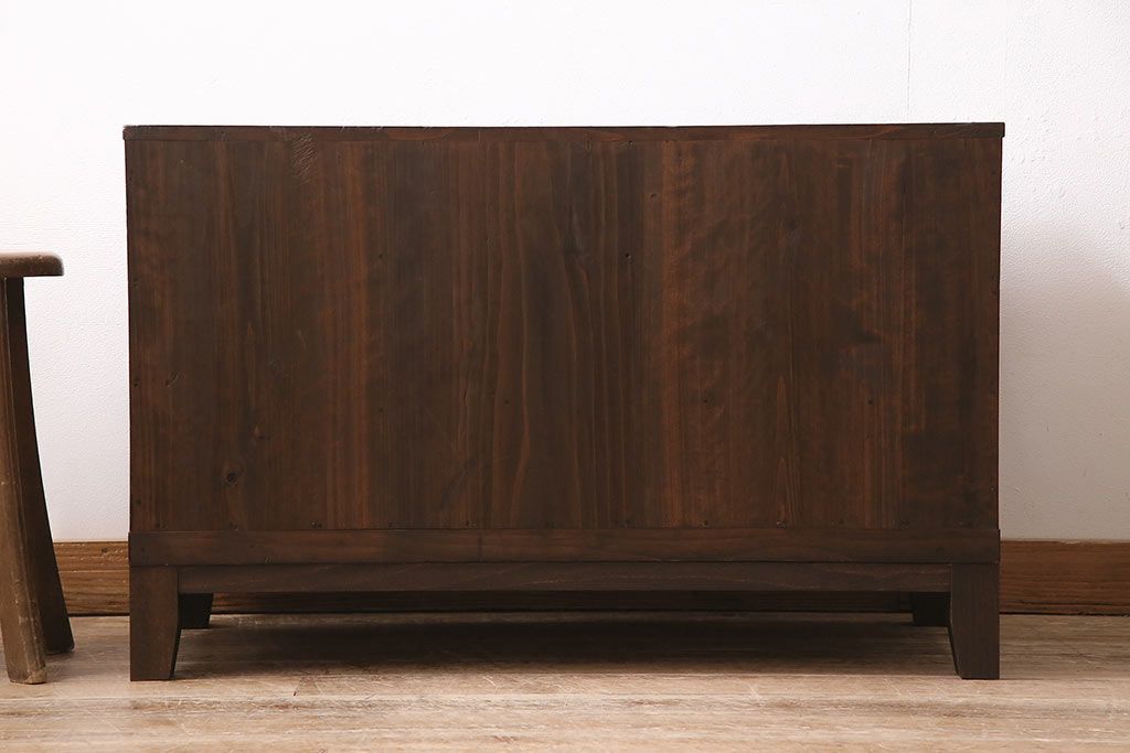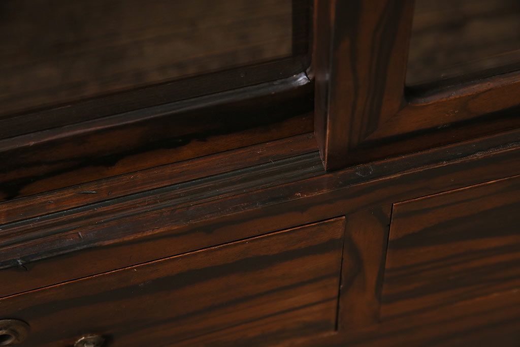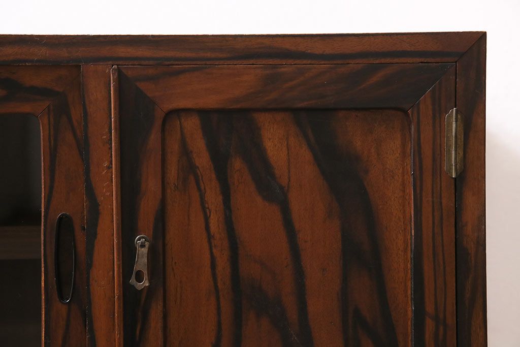 ビンテージ家具 前面黒柿材 引き出し付き 和風リビングにおすすめな脚付きローボード(戸棚、リビングボード)(R-046691)