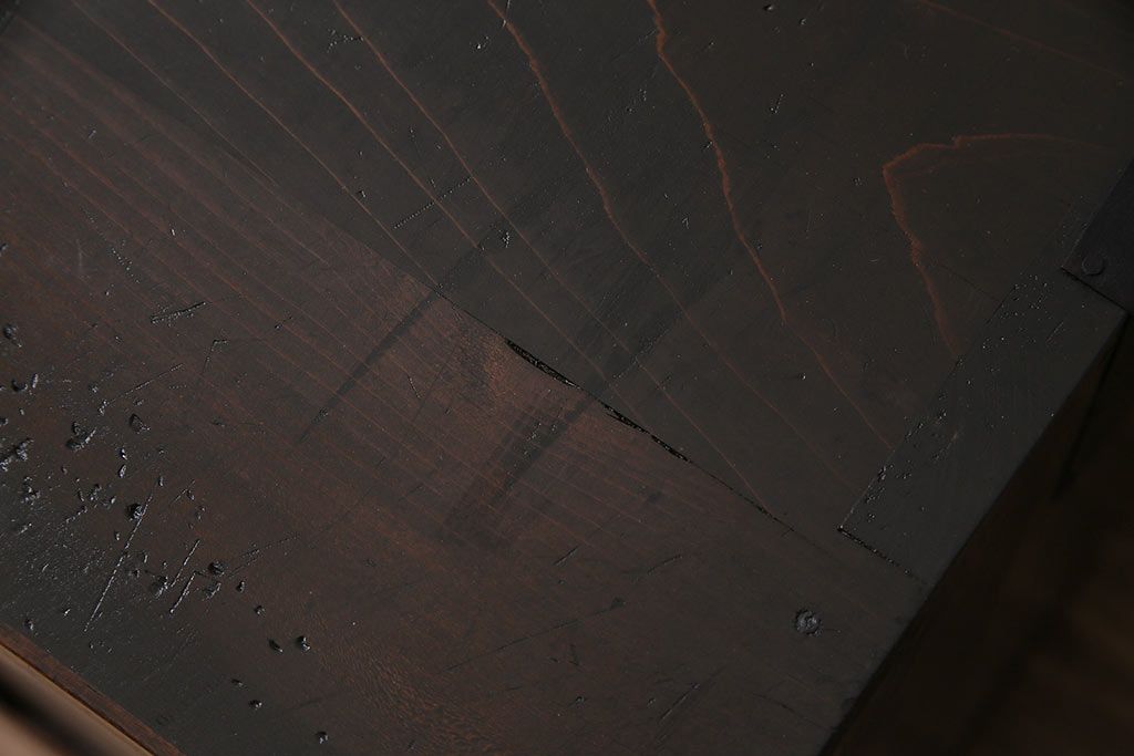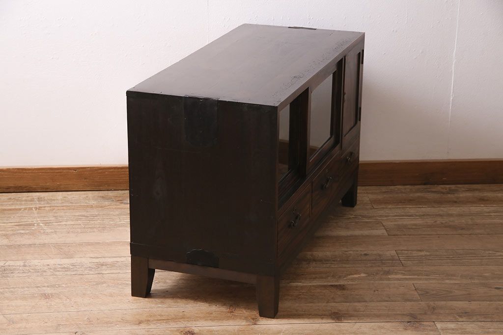 ビンテージ家具 前面黒柿材 引き出し付き 和風リビングにおすすめな脚付きローボード(戸棚、リビングボード)(R-046691)です。