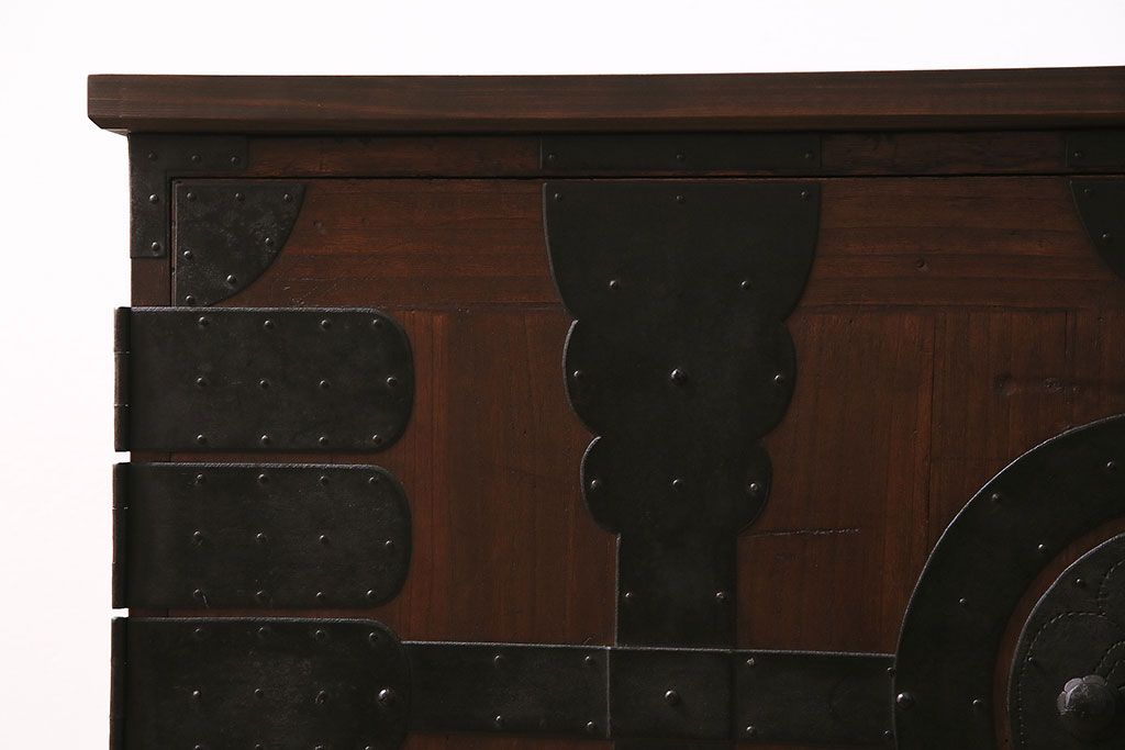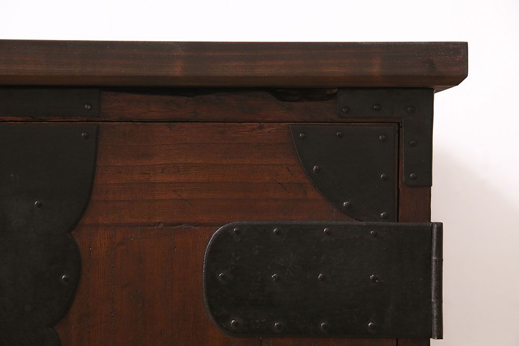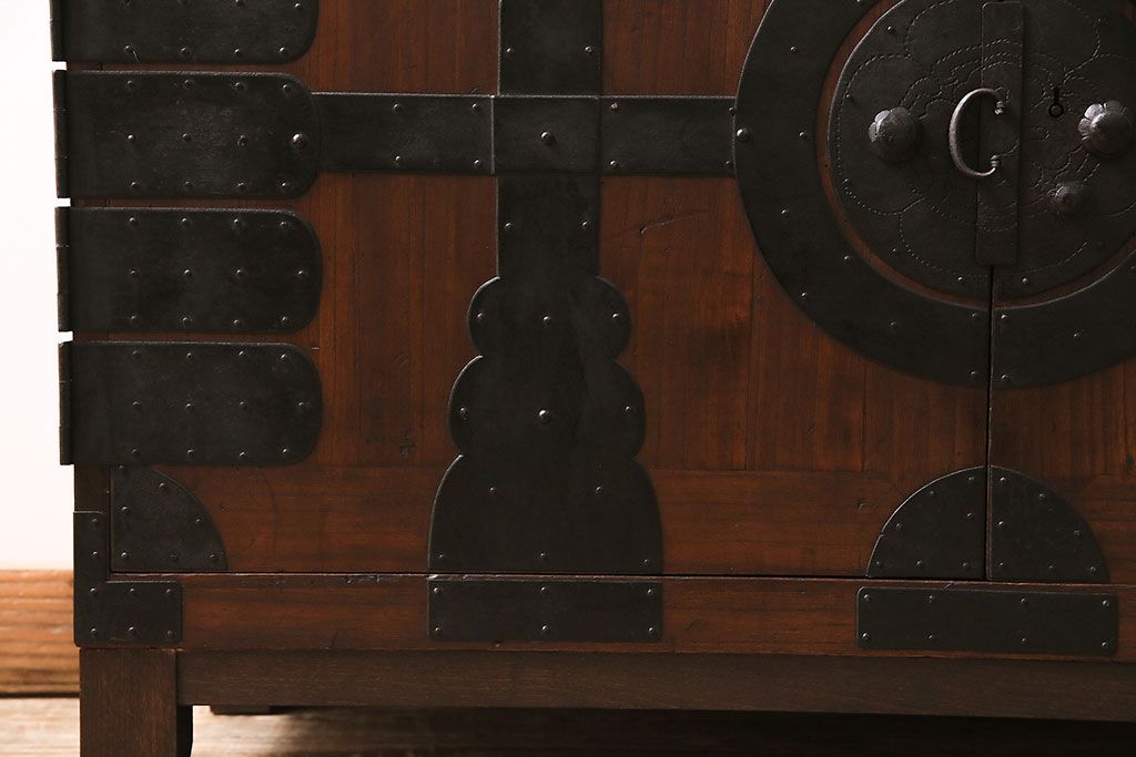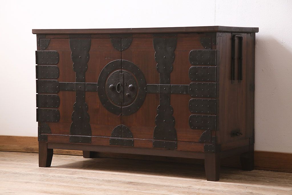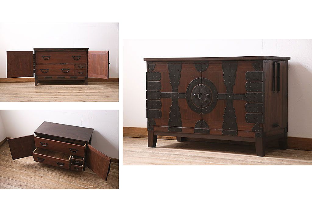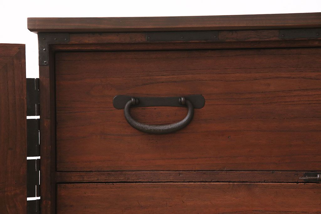 和箪笥> 衣装箪笥 > 和製アンティーク 前面桐材 和モダンスタイルにおすすめな観音開き戸の脚付き箪笥ローボード(テレビ台、リビングボード)(R-046506)