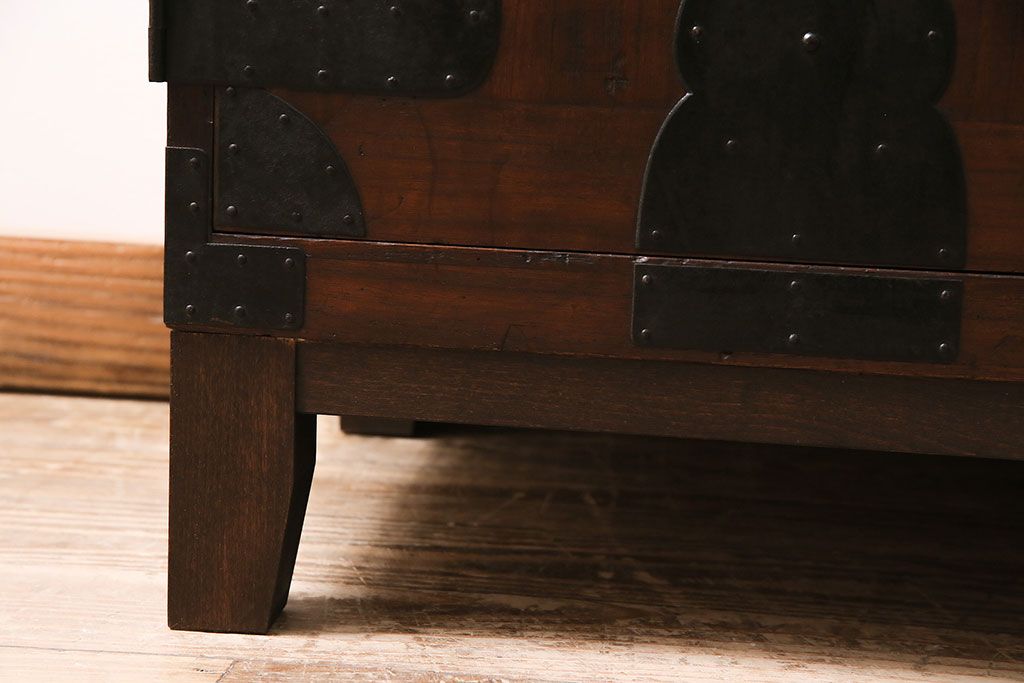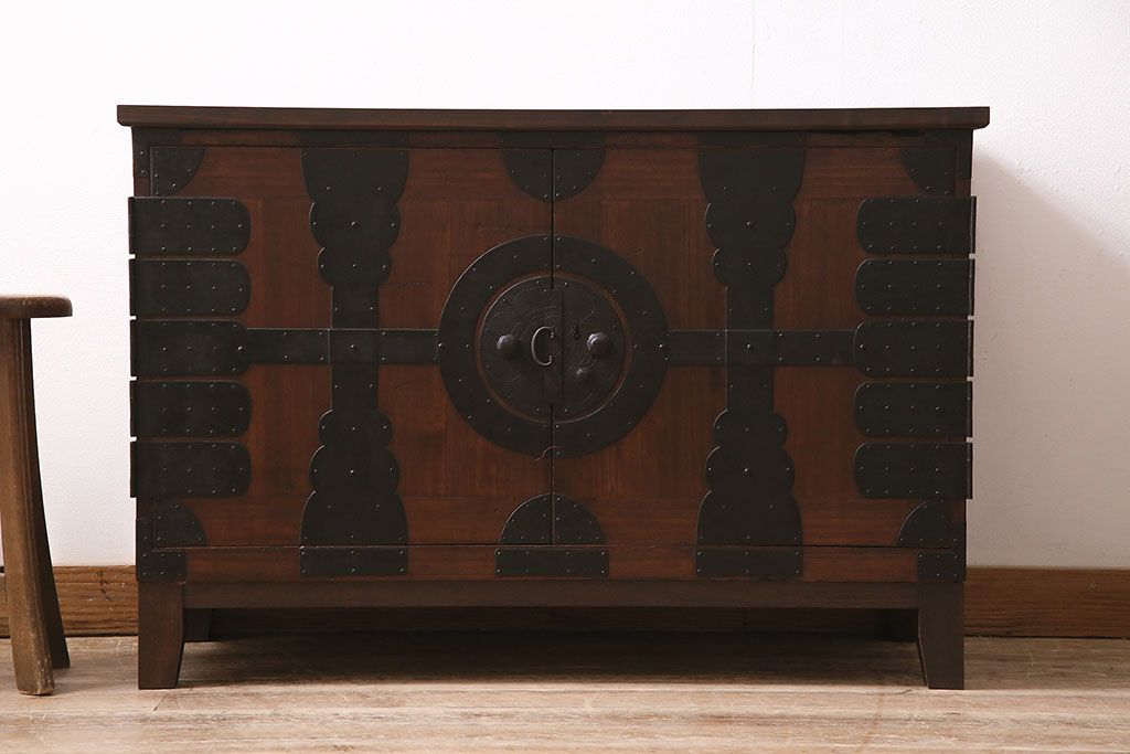 人気の観音開き扉の箪笥に脚を取り付けた