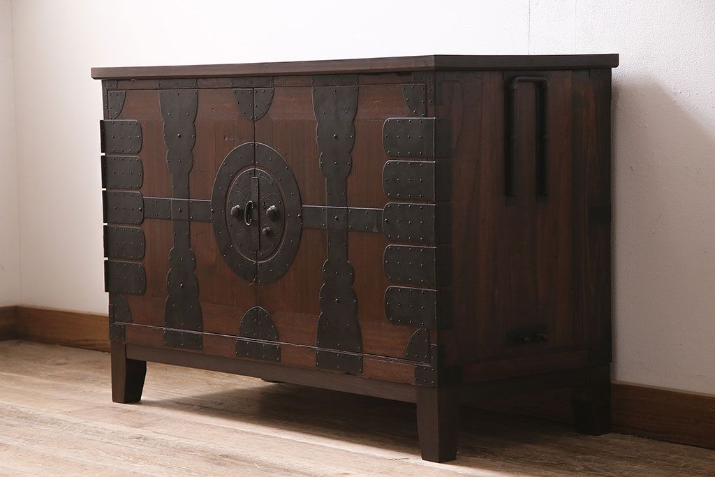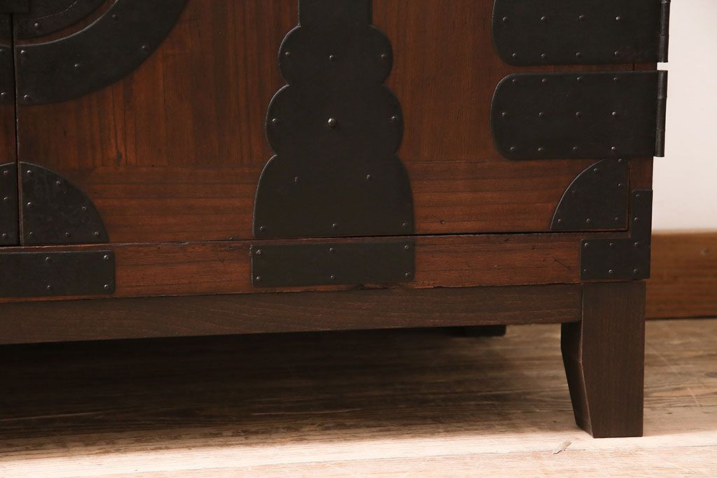 キャビネット・戸棚> テレビ台・ローボード > 和製アンティーク 前面桐材 和モダンスタイルにおすすめな観音開き戸の脚付き箪笥ローボード(テレビ台、リビングボード)(R-046506)