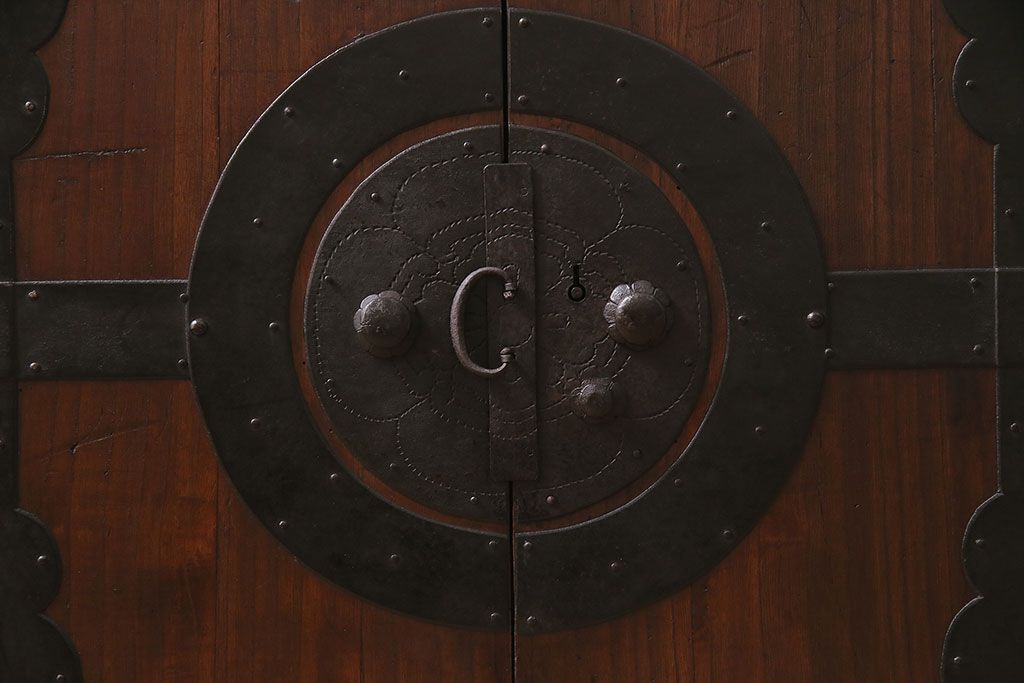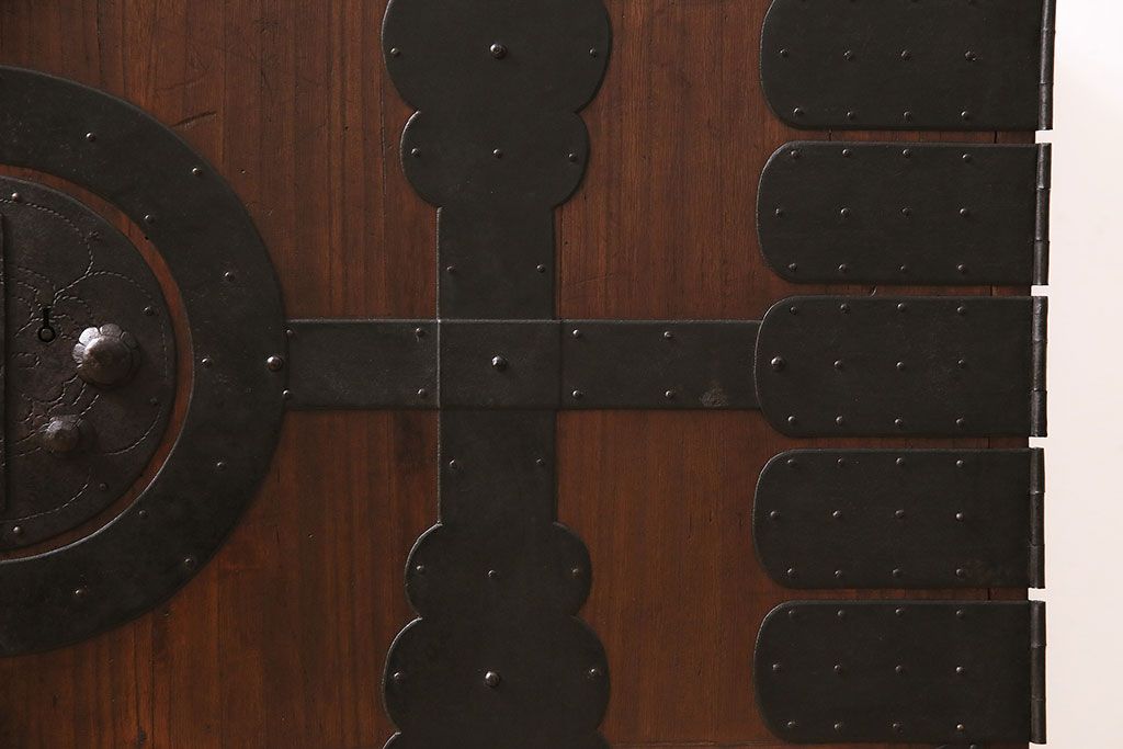 和箪笥 > 和製アンティーク 前面桐材 和モダンスタイルにおすすめな観音開き戸の脚付き箪笥ローボード(テレビ台、リビングボード)(R-046506)