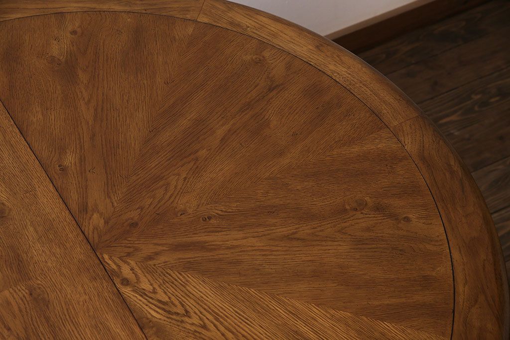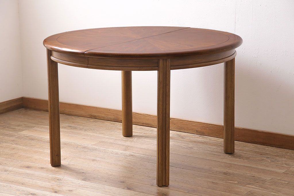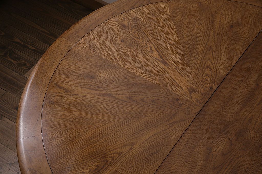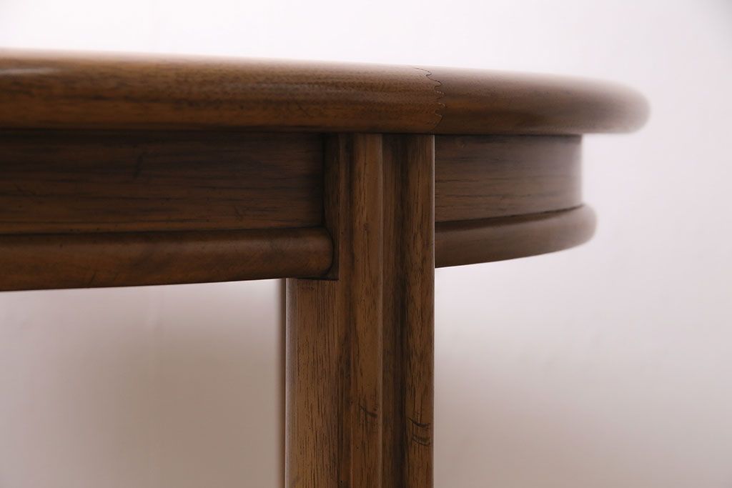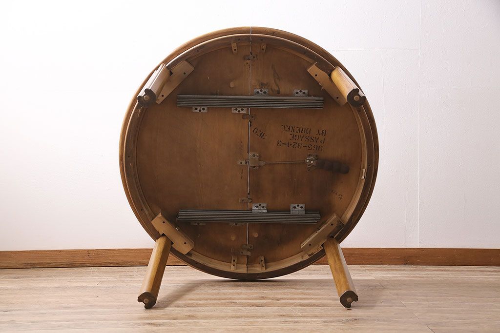 ラフジュ工房> テーブル> エクステンションテーブル > ヴィンテージ家具 DREXEL HERITAGE(ドレクセルヘリテイジ) ラウンド型 温かみのある雰囲気が素敵なエクステンションテーブル(ダイニングテーブル、ビンテージ)(R-046689)
