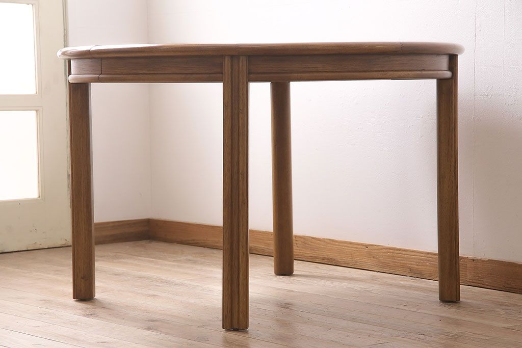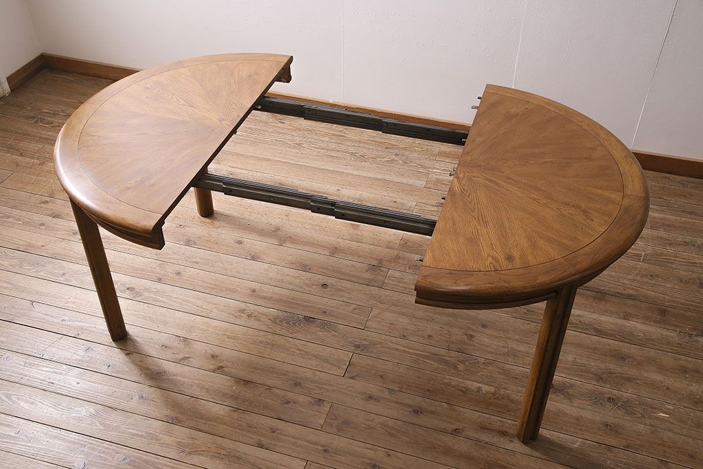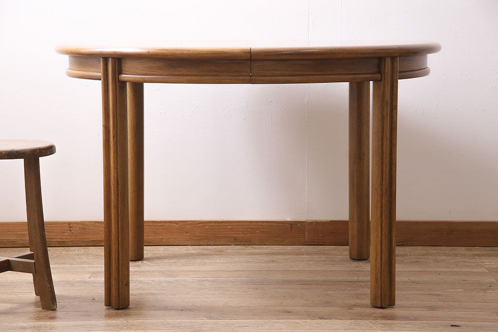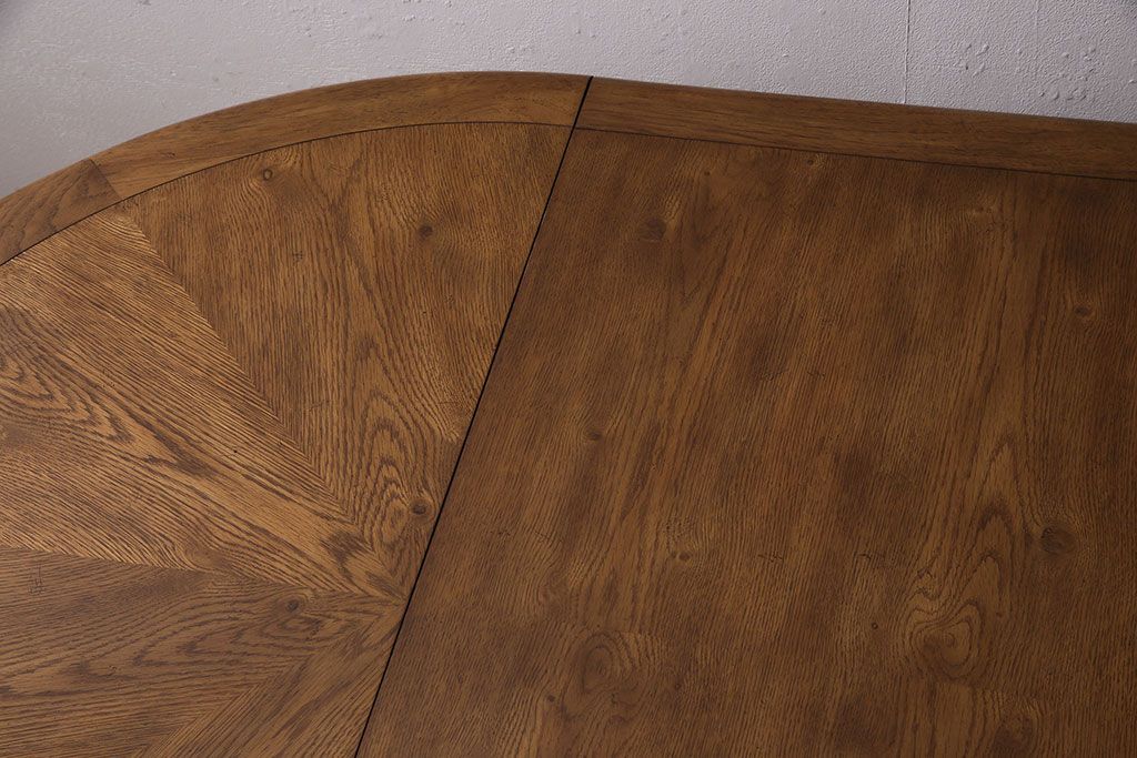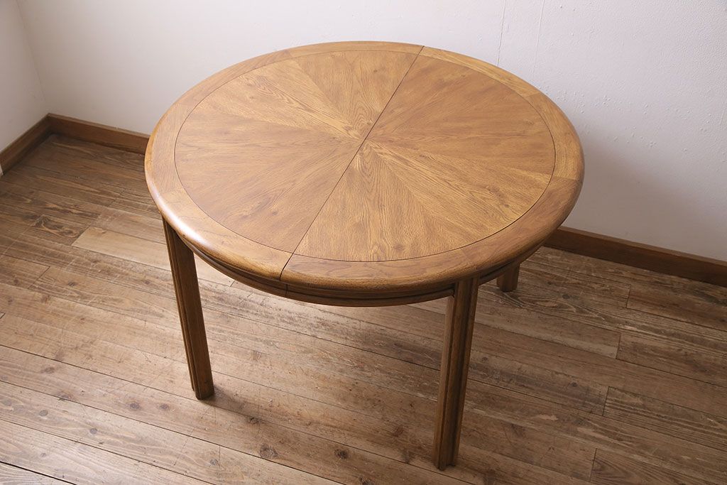ラフジュ工房> テーブル> エクステンションテーブル > ヴィンテージ家具 DREXEL HERITAGE(ドレクセルヘリテイジ) ラウンド型 温かみのある雰囲気が素敵なエクステンションテーブル(ダイニングテーブル、ビンテージ)(R-046689)