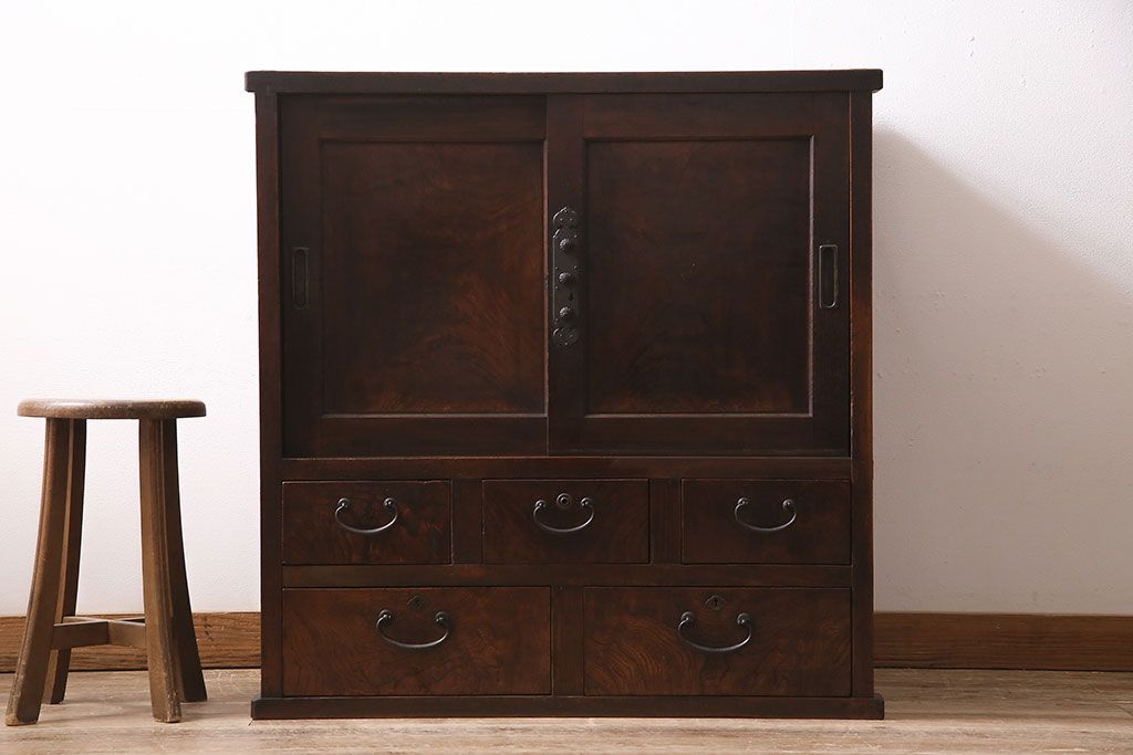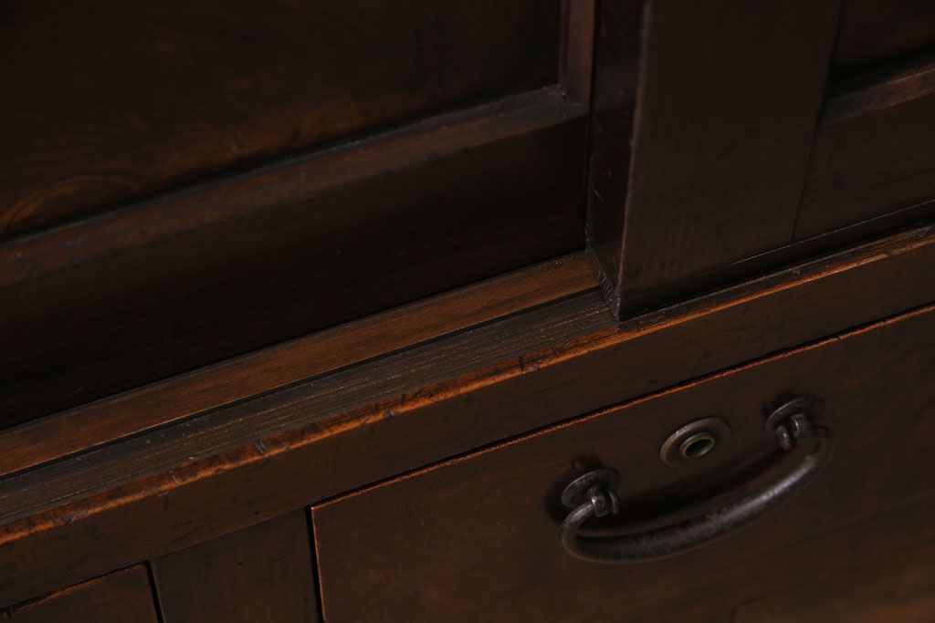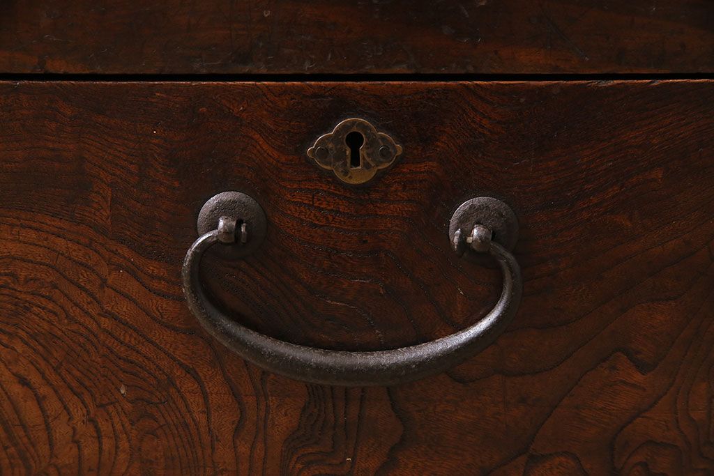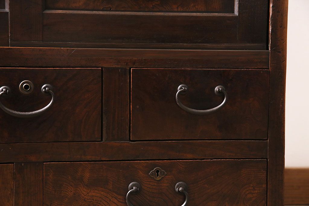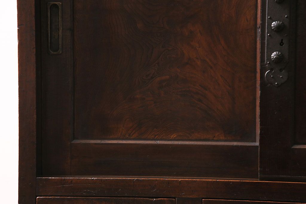 和箪笥 > アンティーク家具 昭和初期 前面ケヤキ材 深みのある木肌が魅力の帳場箪笥(時代箪笥、収納棚)(R-046749)
