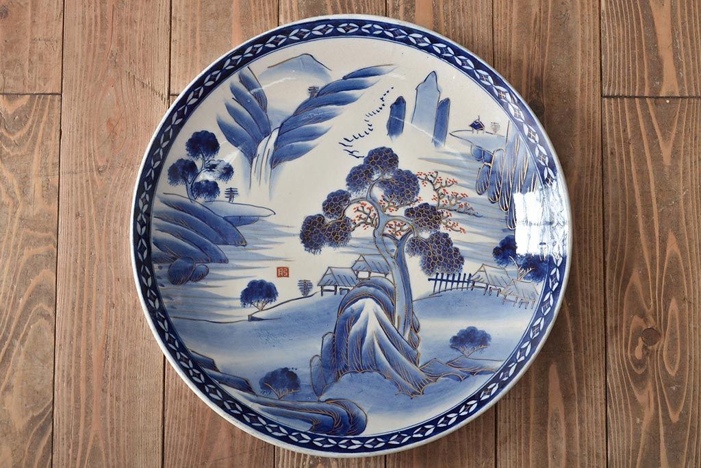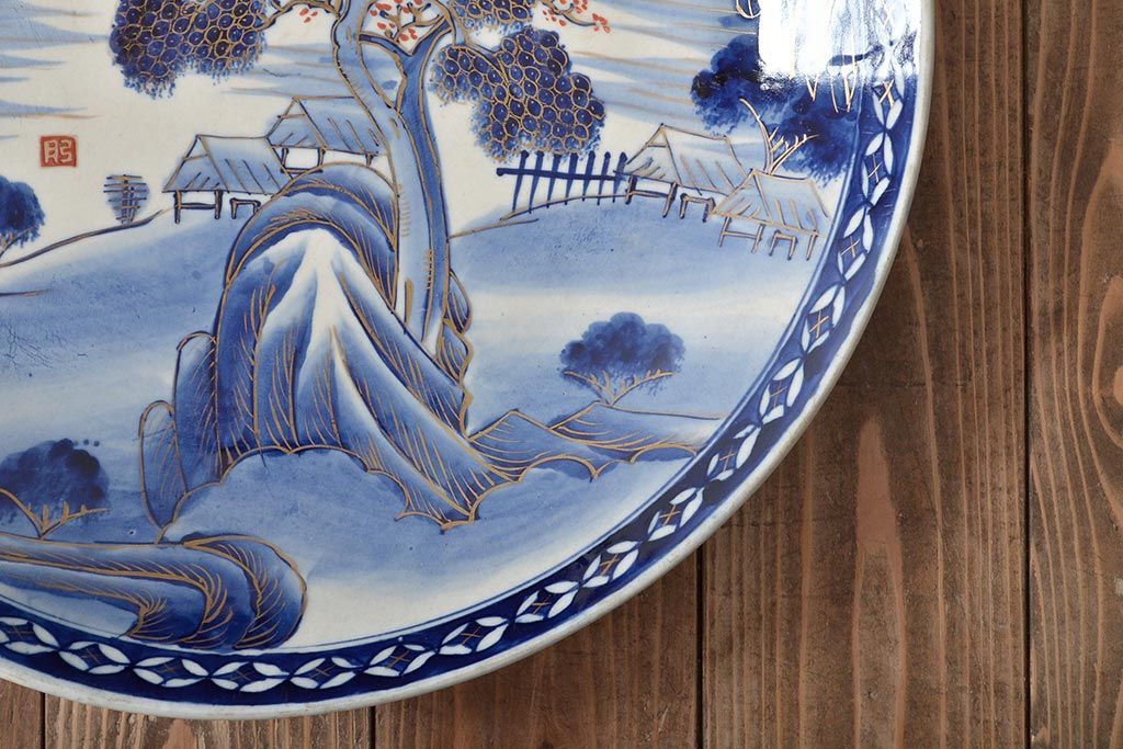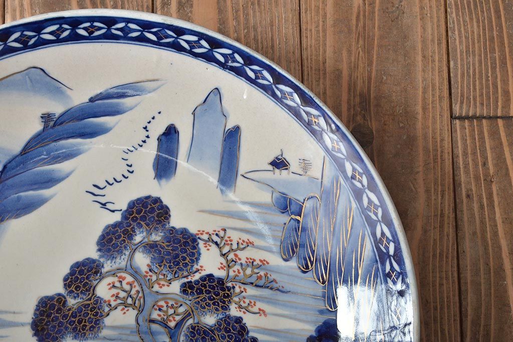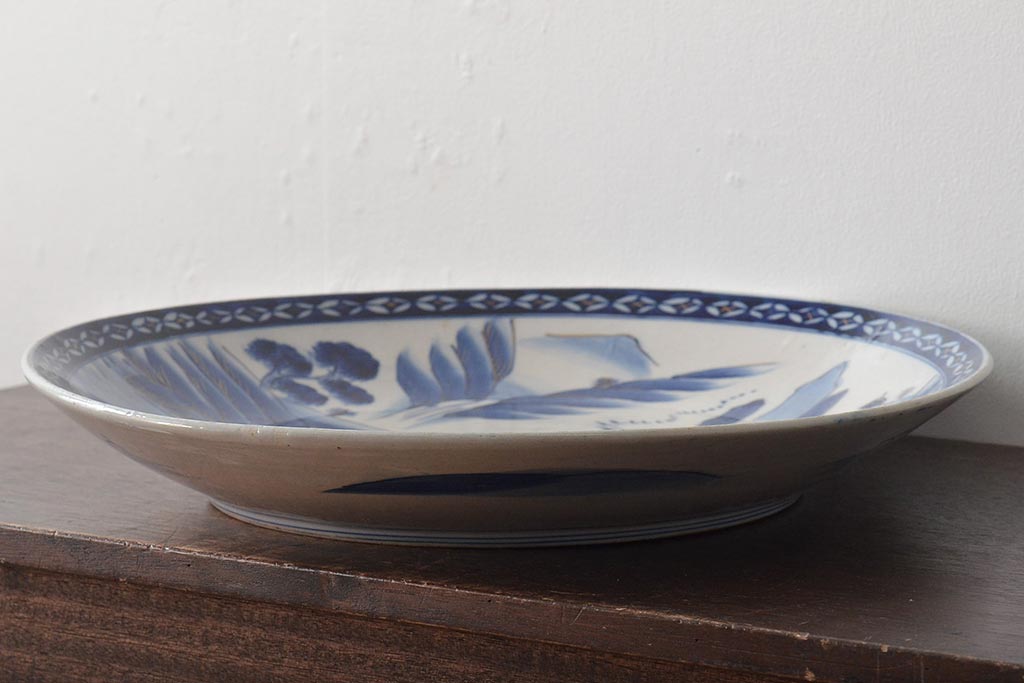 明治期 伊万里焼 一尺五寸 染付 大皿(和食器)(R-046712)