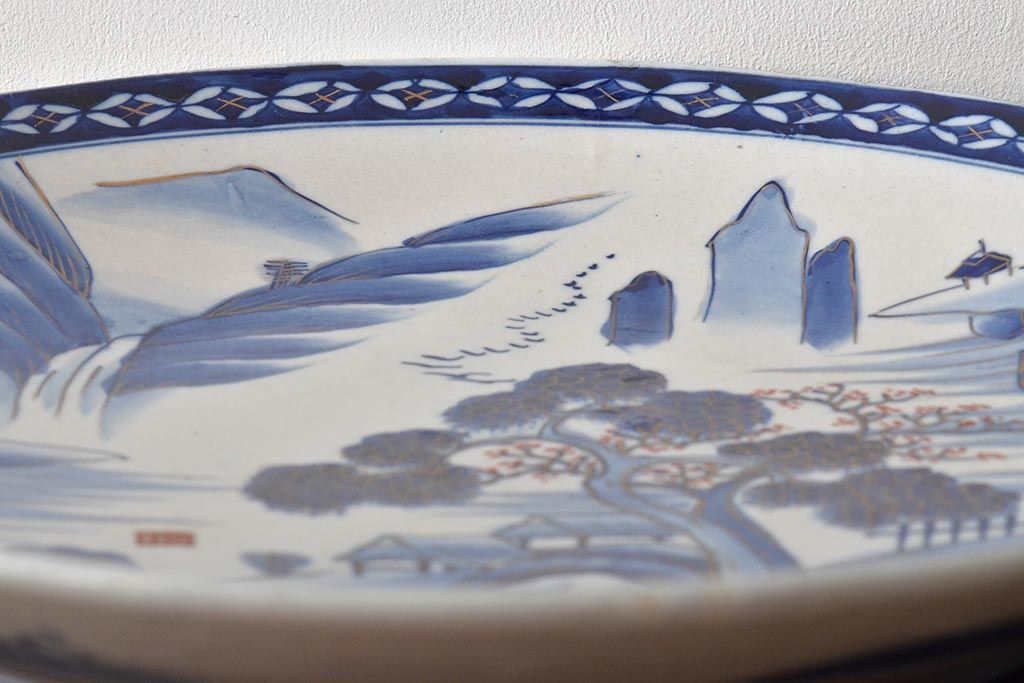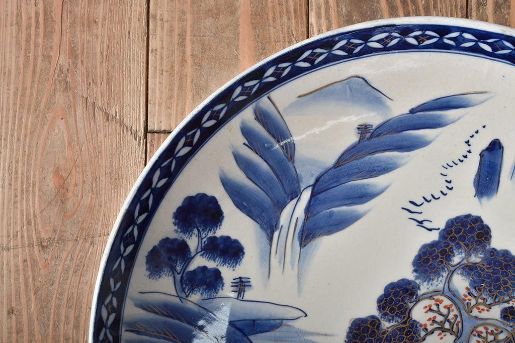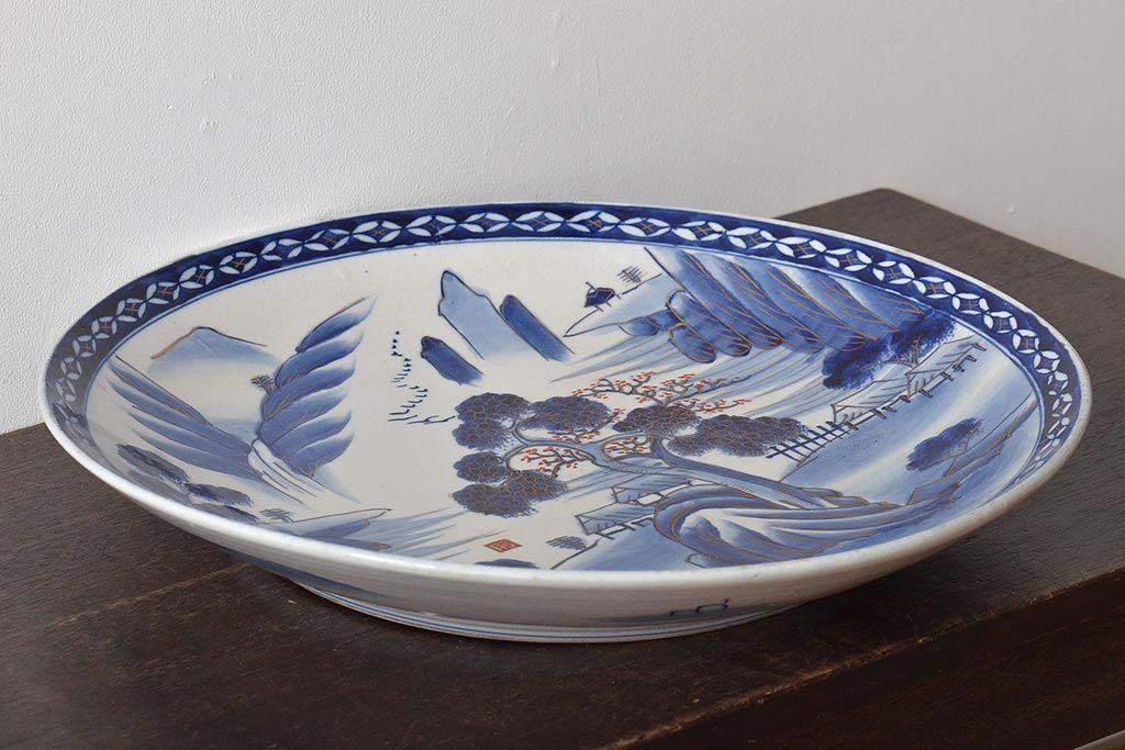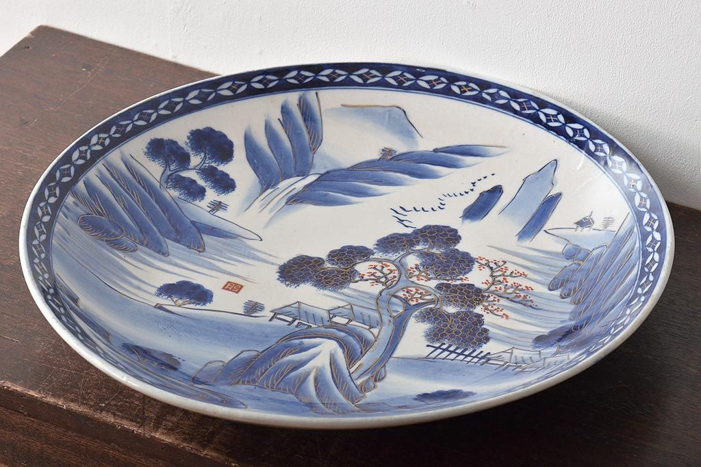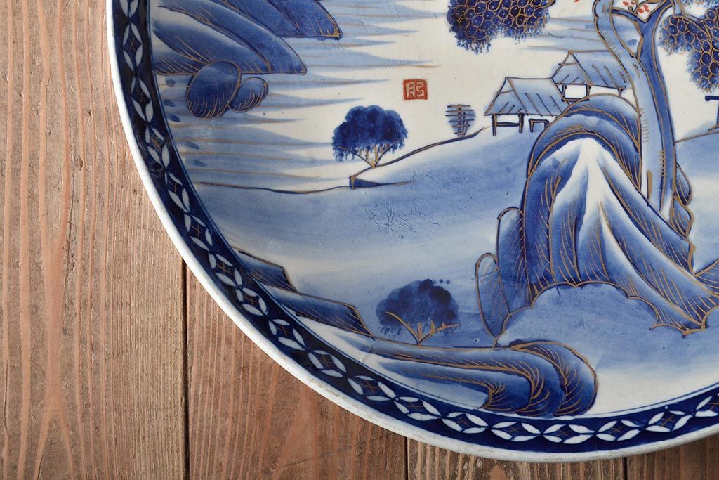 明治期 伊万里焼 一尺五寸 染付 大皿(和食器)(R-046712)