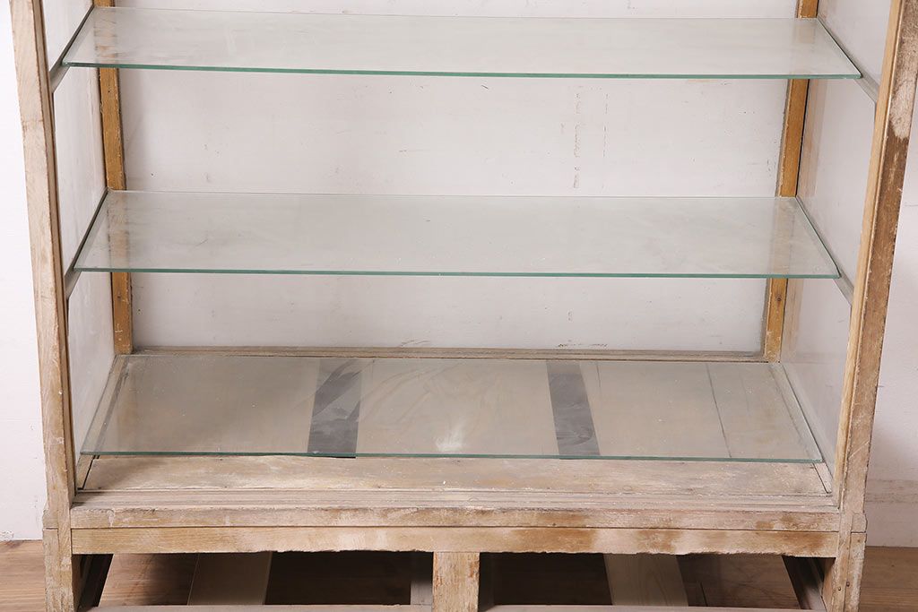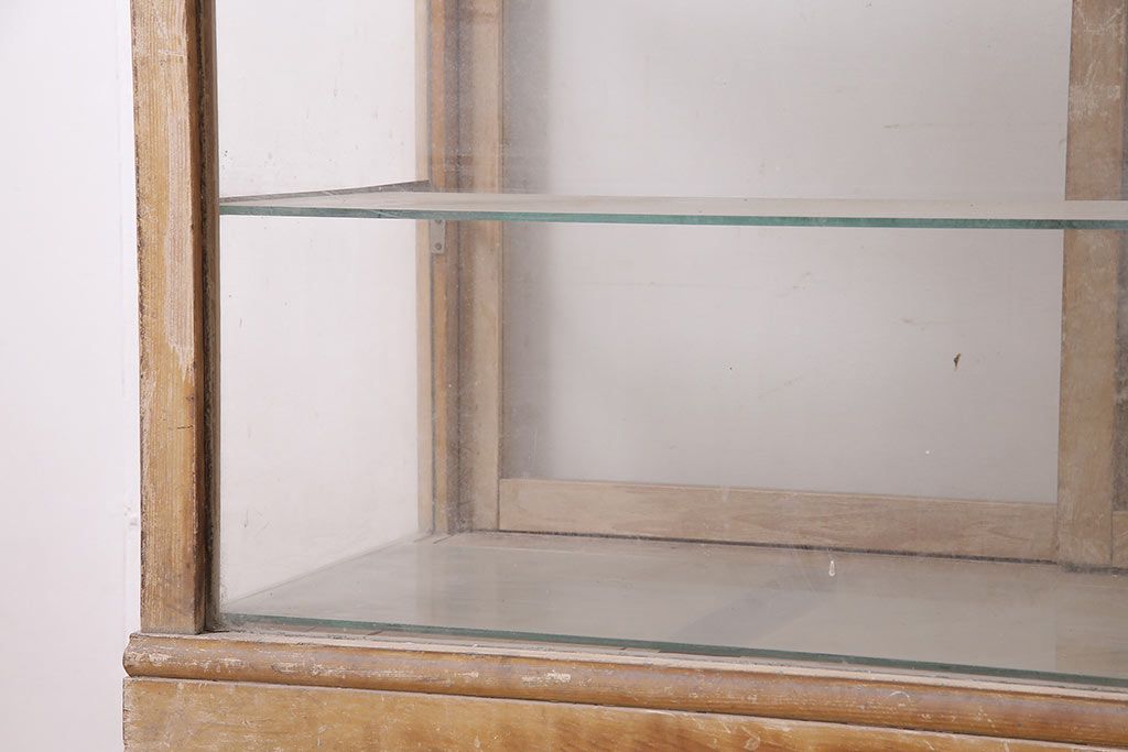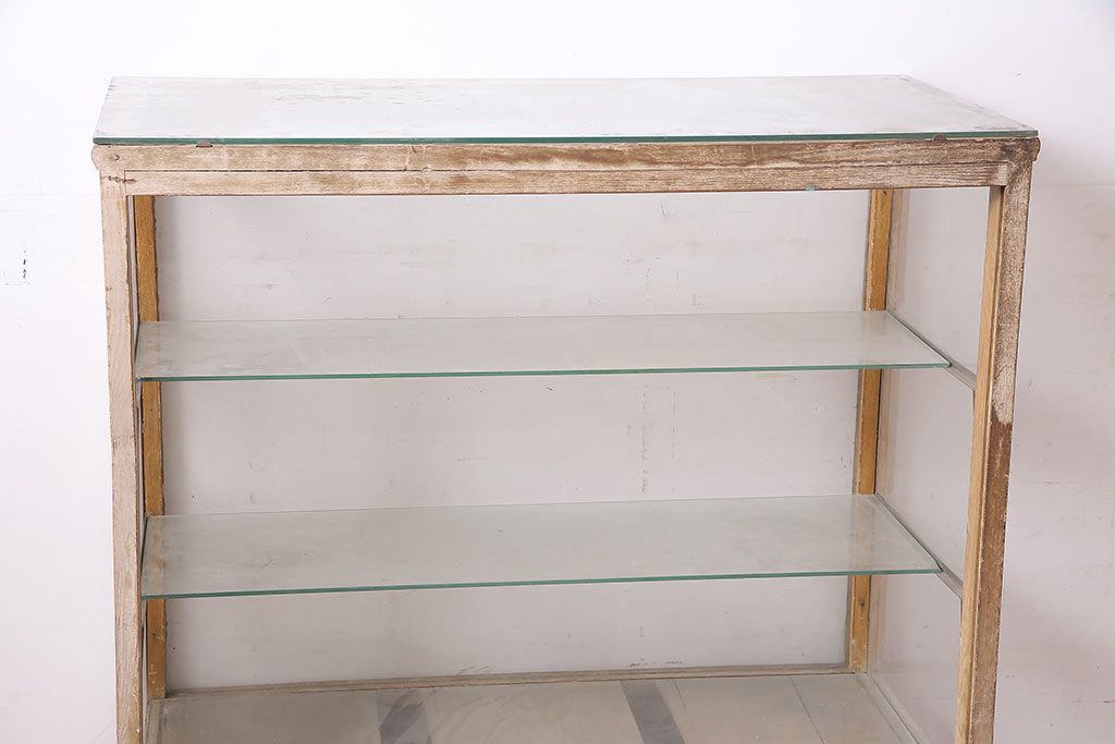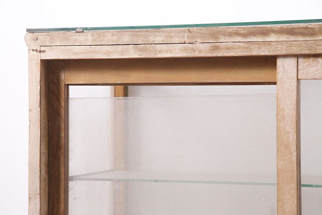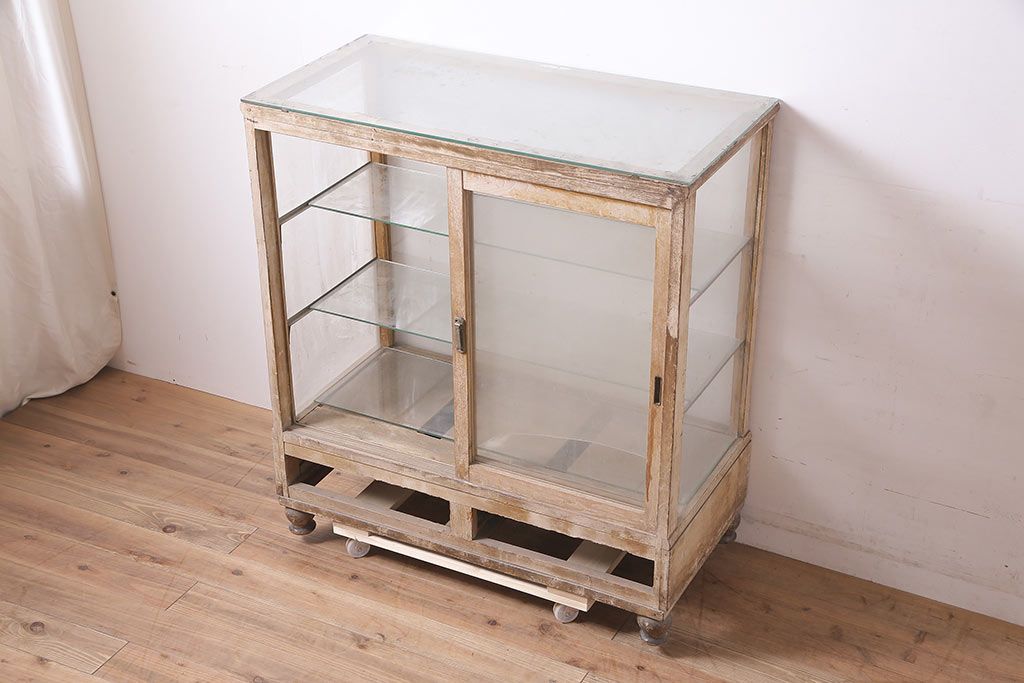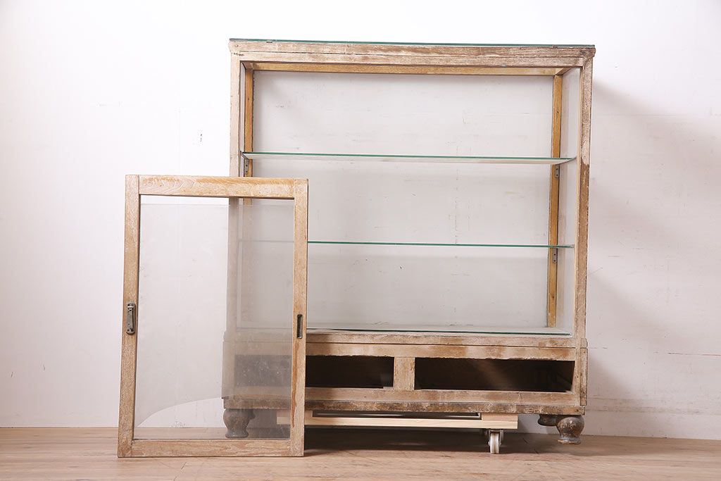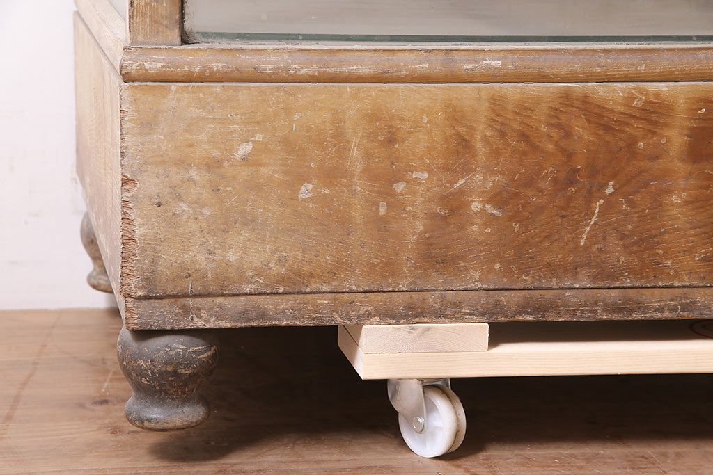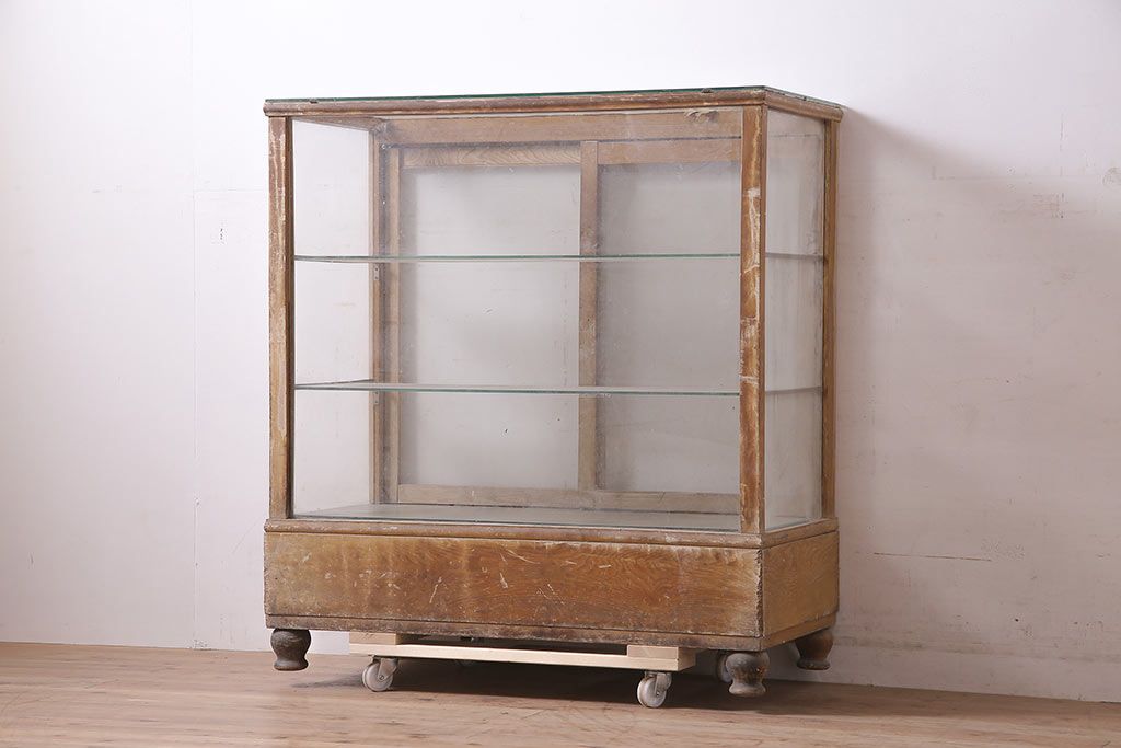 ラフジュ工房> 店舗什器 > アンティーク家具 昭和中期 ナラ材 ころんとした脚が可愛いレトロなガラスケース(ショーケース、陳列棚)(R-046605)
