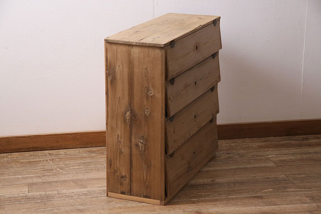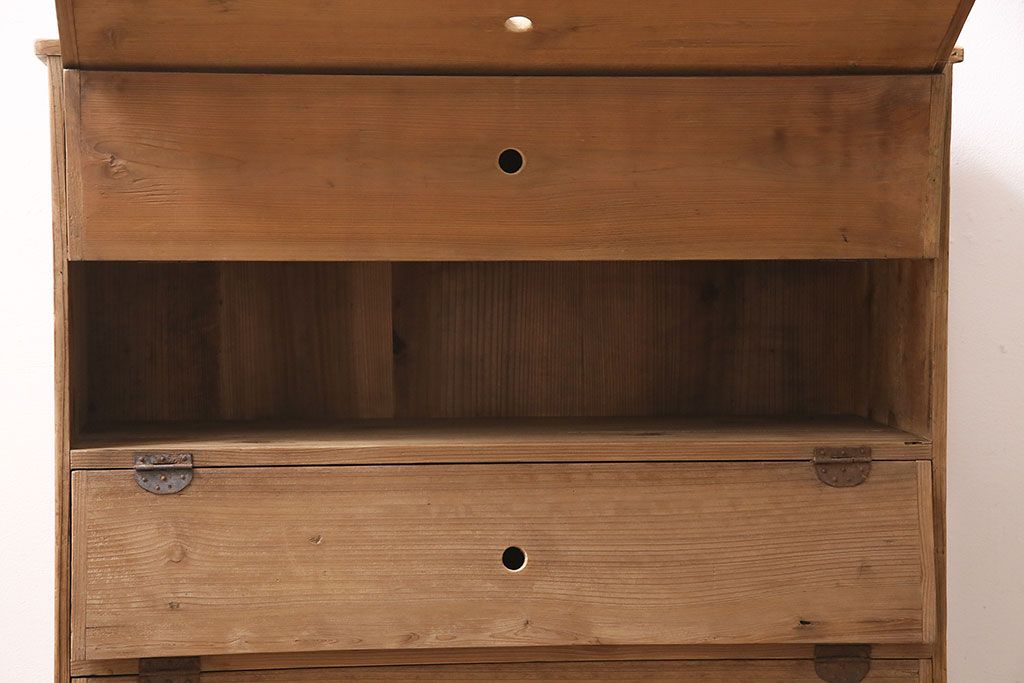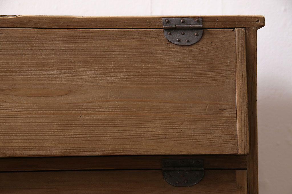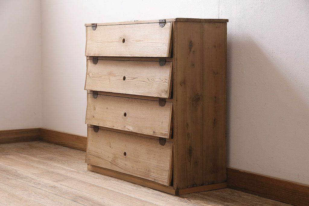 ストリップド(剥離)家具 > アンティーク家具 昭和初期 ストリップド(剥離) ヒノキ材 パタパタ扉が使いやすい!レトロな下駄箱(収納棚、戸棚)(R-046885)