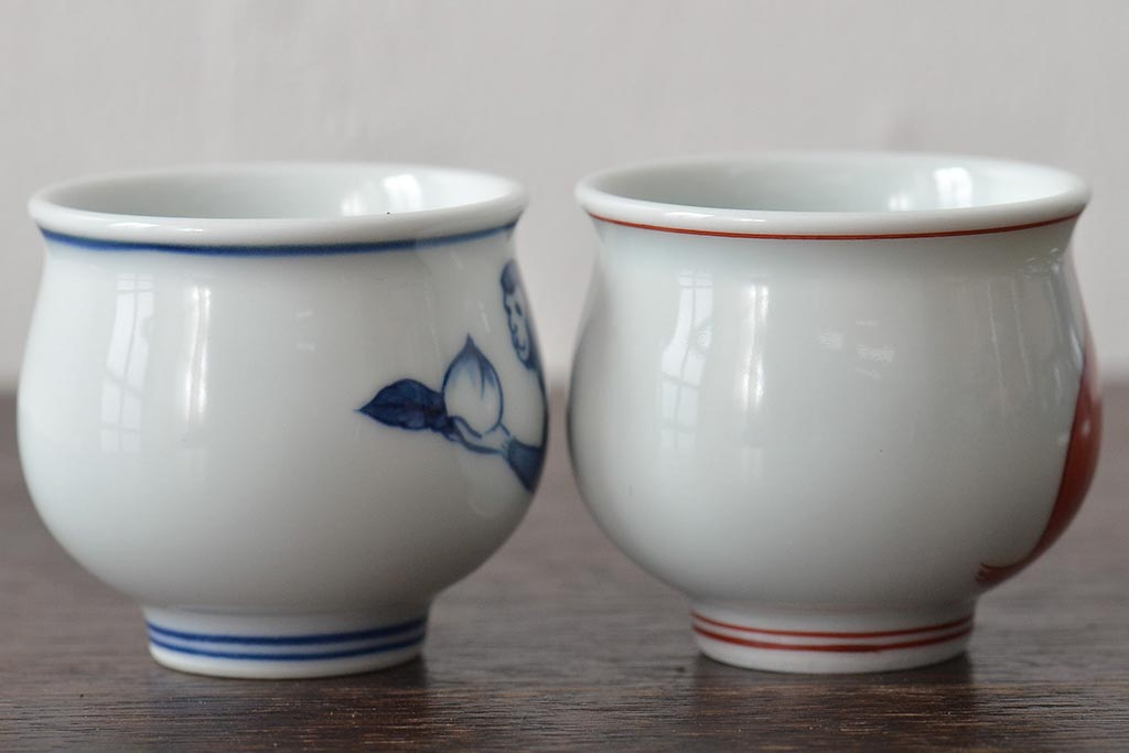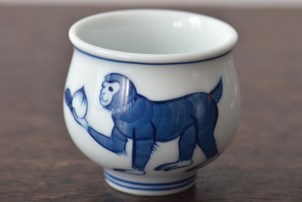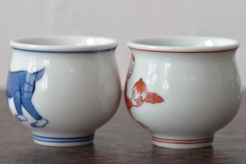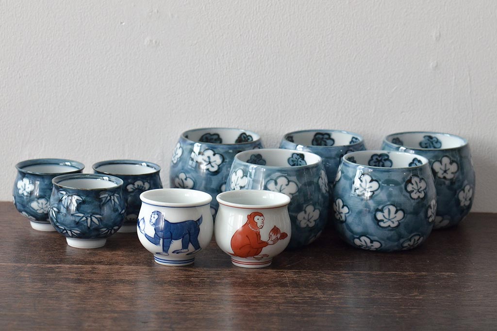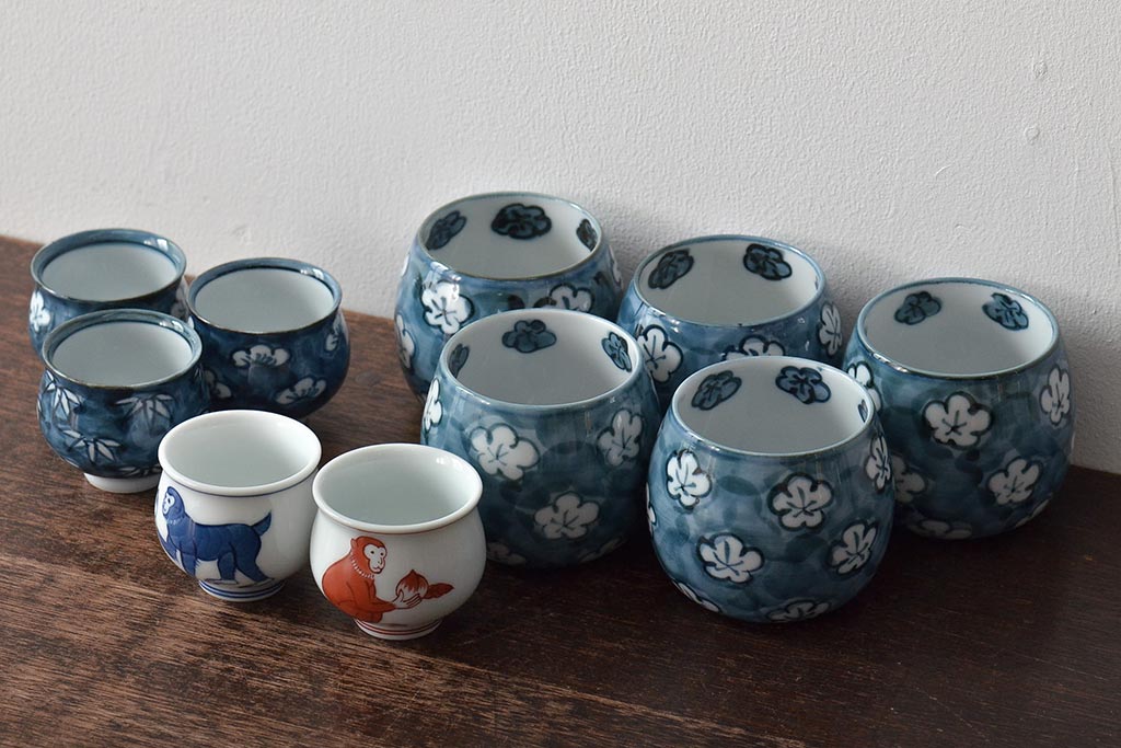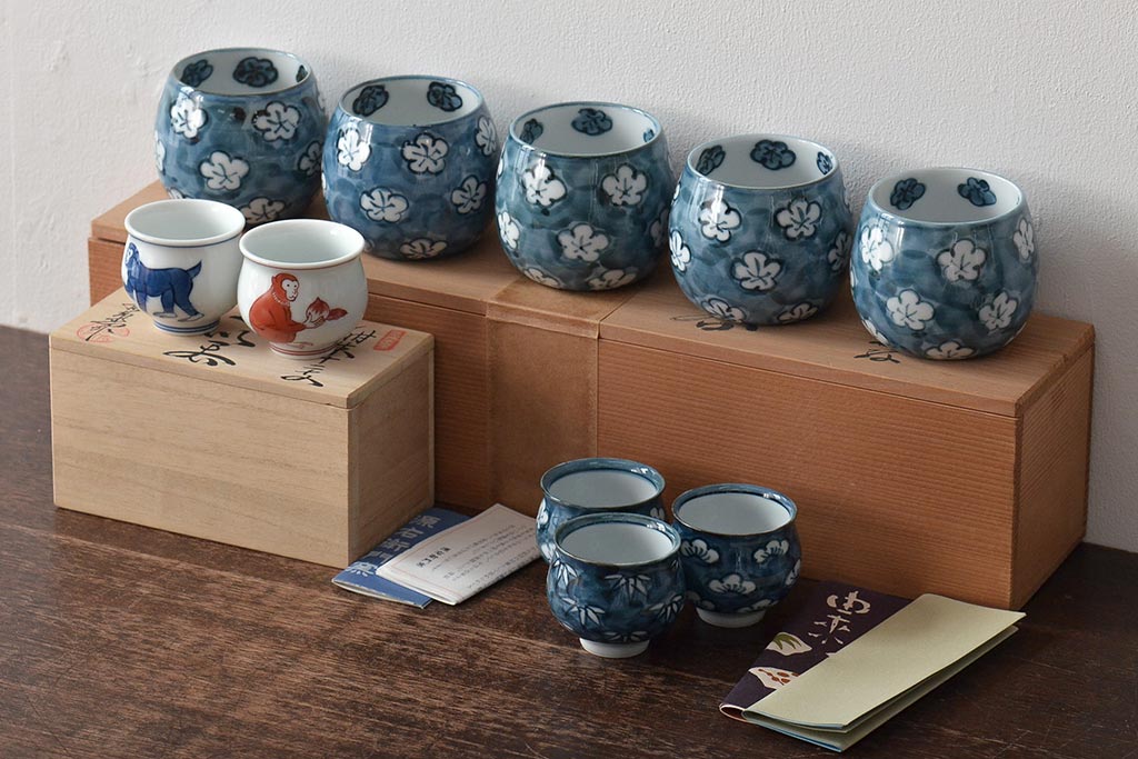 ラフジュ工房> 和食器・茶道具> 蕎麦猪口 > 館林源右衛門 湯呑み5客 ぐい呑み5客セット(染付色絵、共箱、お猪口、紺朱十二支、有田焼)(R-046744)