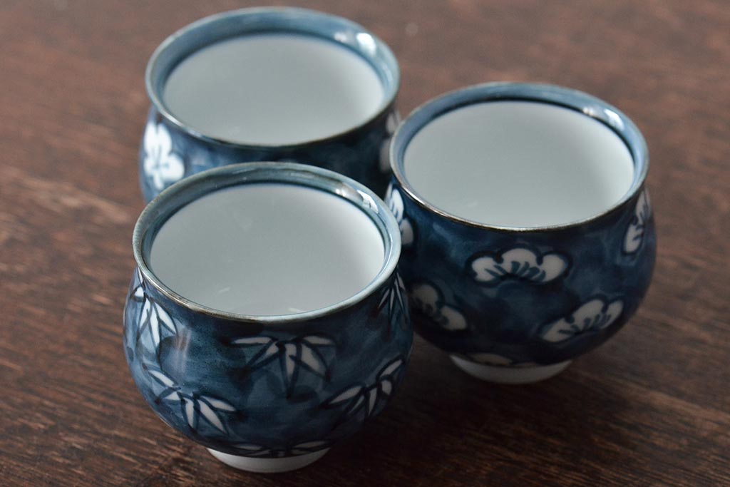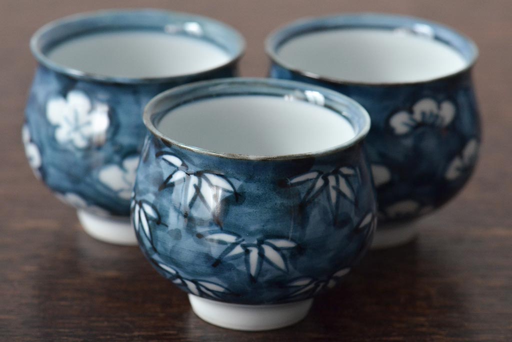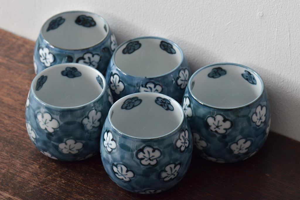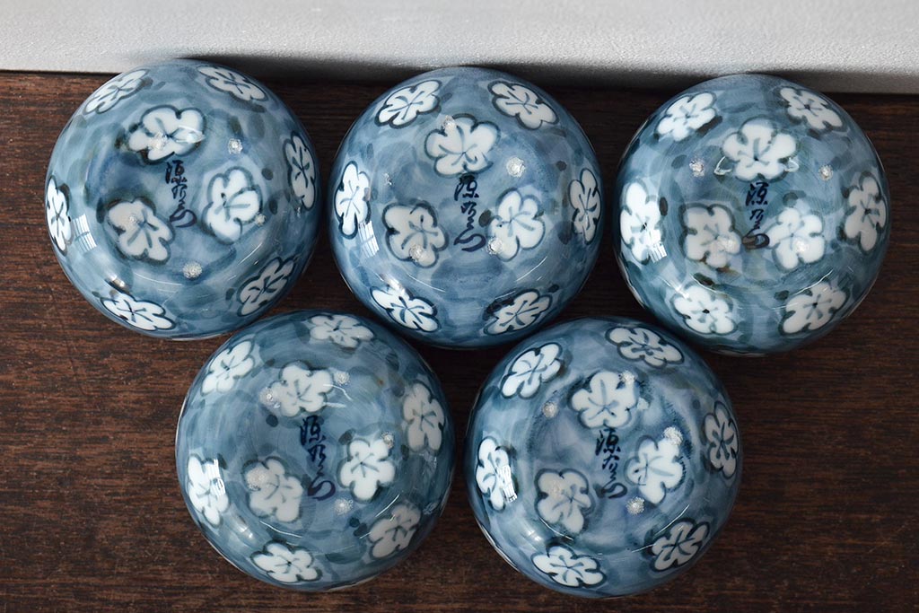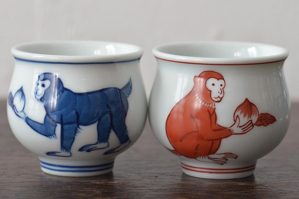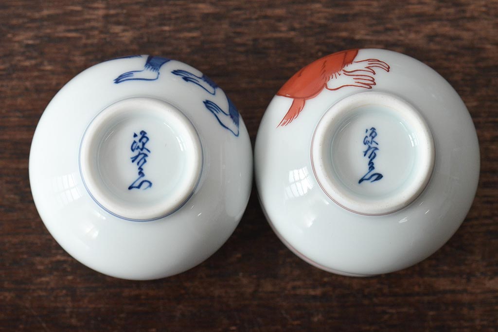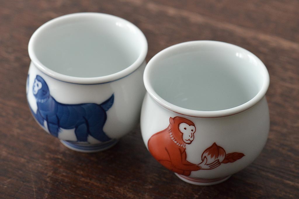 ラフジュ工房> 和食器・茶道具> 蕎麦猪口 > 館林源右衛門 湯呑み5客 ぐい呑み5客セット(染付色絵、共箱、お猪口、紺朱十二支、有田焼)(R-046744)
