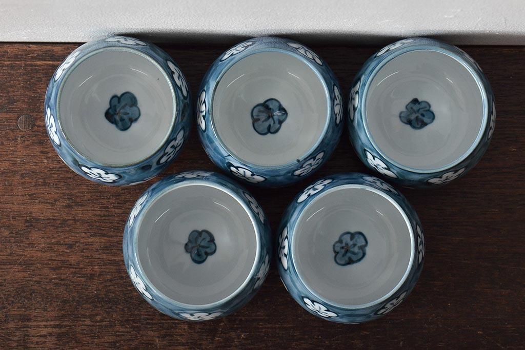 館林源右衛門 湯呑み5客 ぐい呑み5客セット(染付色絵、共箱、お猪口、紺朱十二支、有田焼)(R-046744)